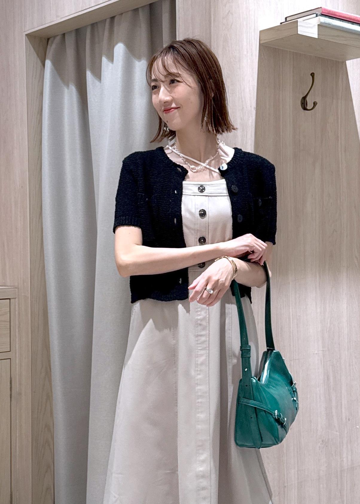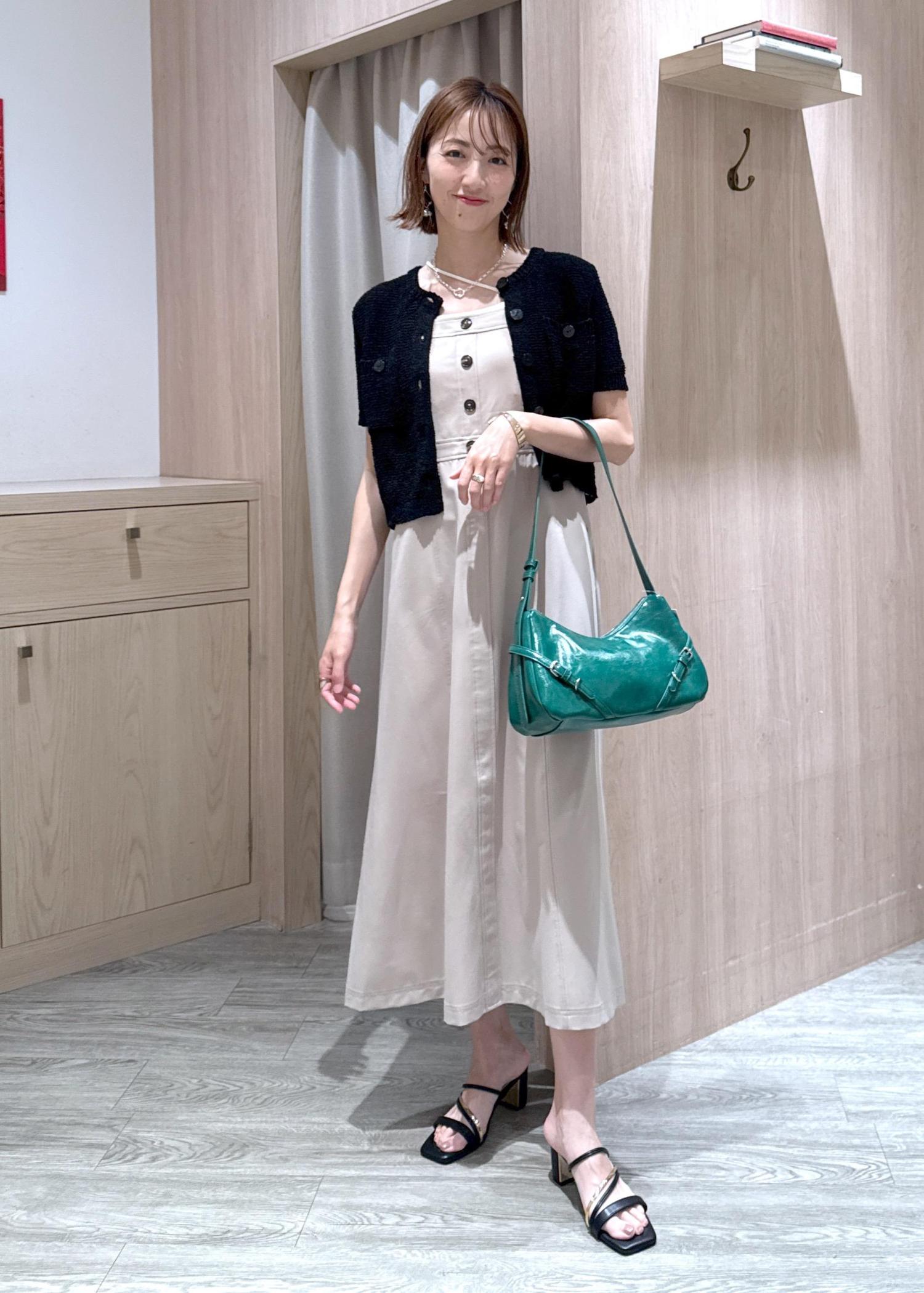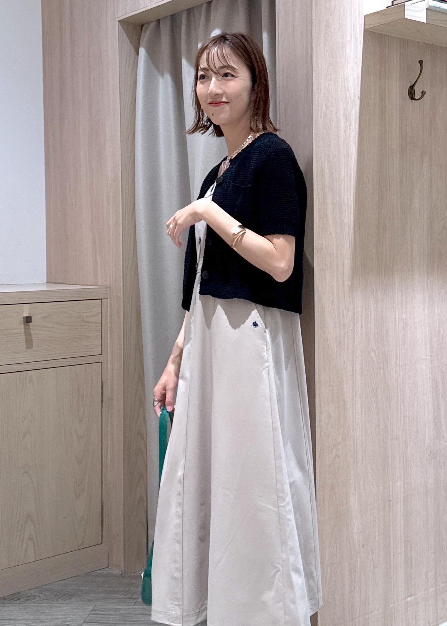 POLO別注のキャミワンピースに半袖カーディガンを羽織ったワンピーススタイルです!