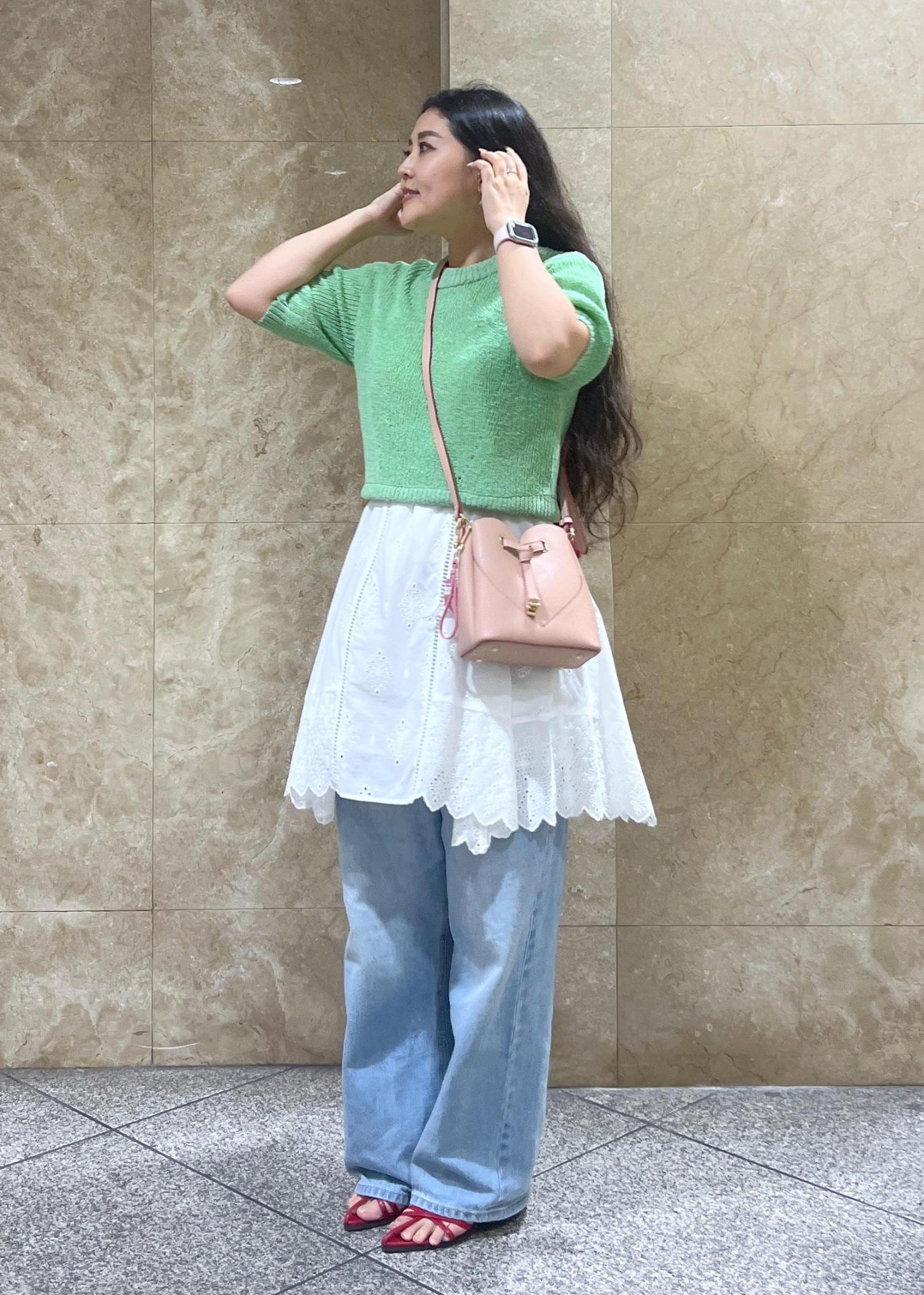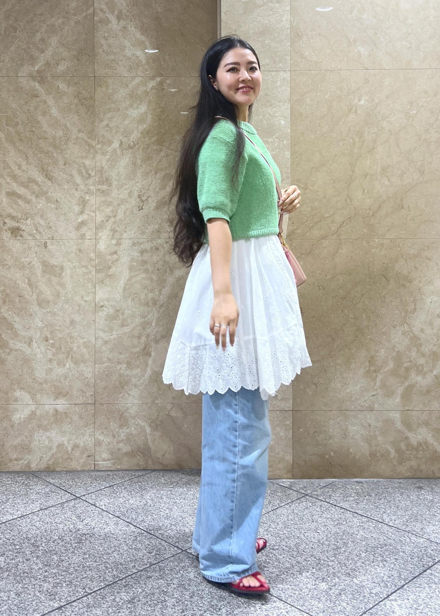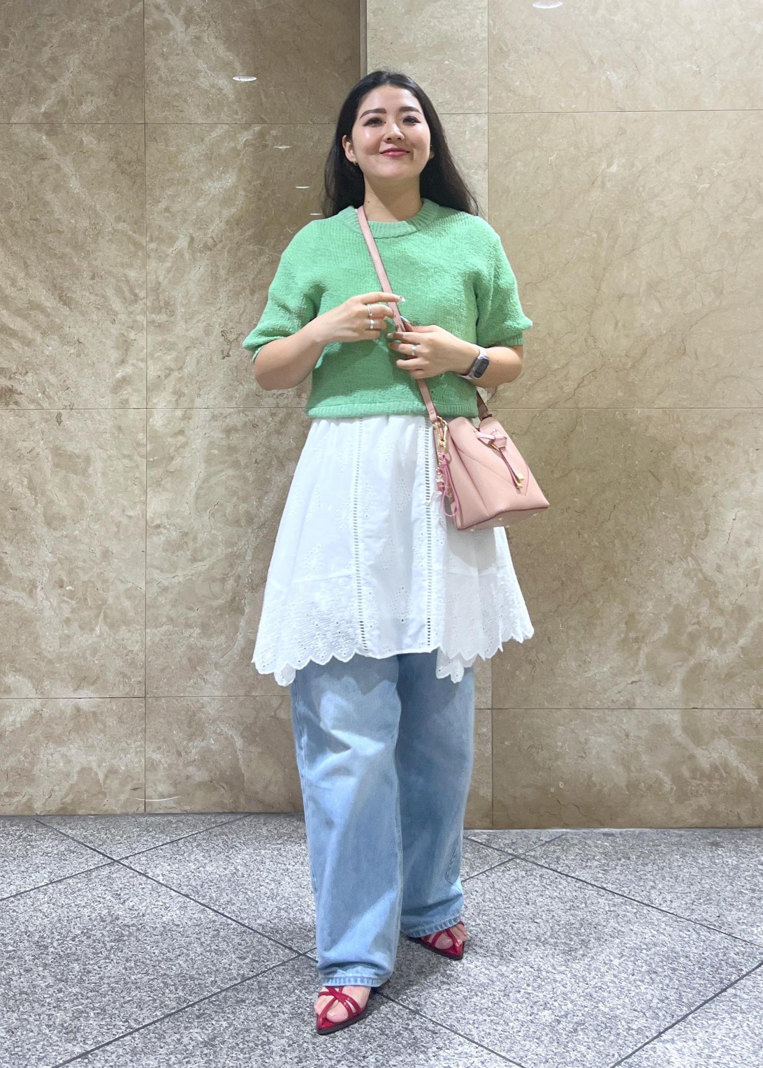 私は骨格ストレートなので、クロップドシャツと合わせるのが好きですが、スカート合わせで下からデニムを見せるのもとても可愛かったです(*´`) -