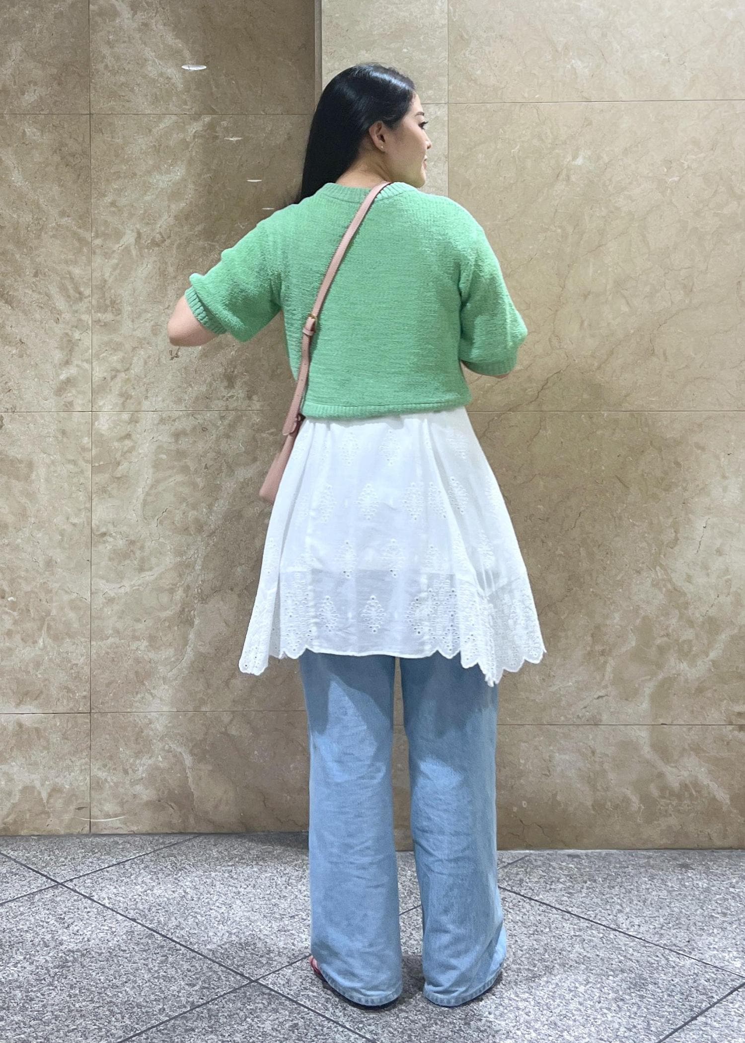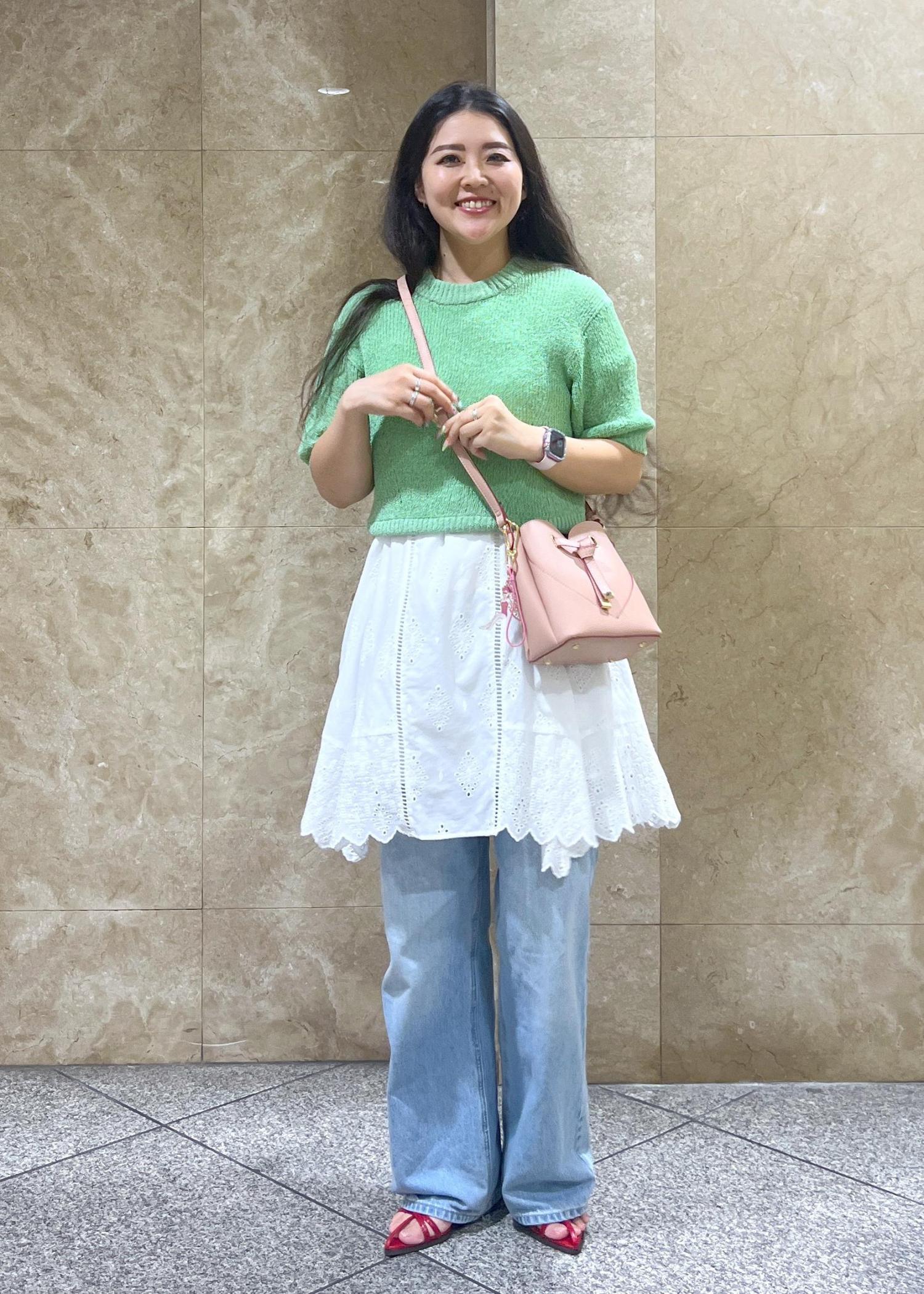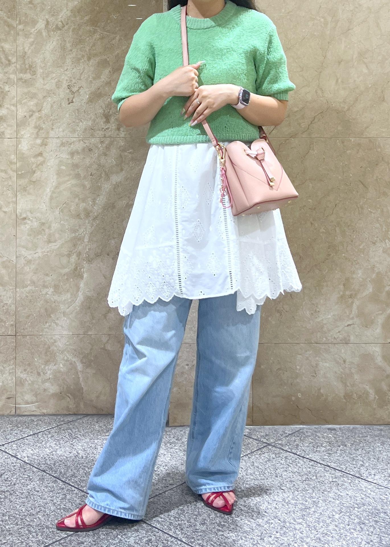 私は骨格ストレートなので、クロップドシャツと合わせるのが好きですが、スカート合わせで下からデニムを見せるのもとても可愛かったです(*´`) -
