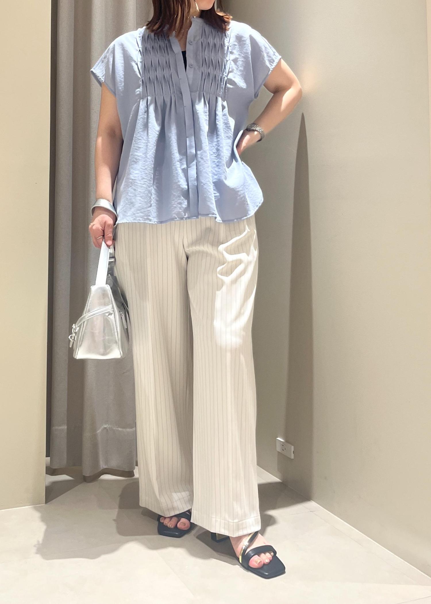 アウトレットVIS【接触冷感/UVケア】ピンストライプリラックスワイドパンツキナリ / S¥2,636レビュー下半身太めですが全体的にゆったりしたシルエットで、ウエストも余裕がありました。