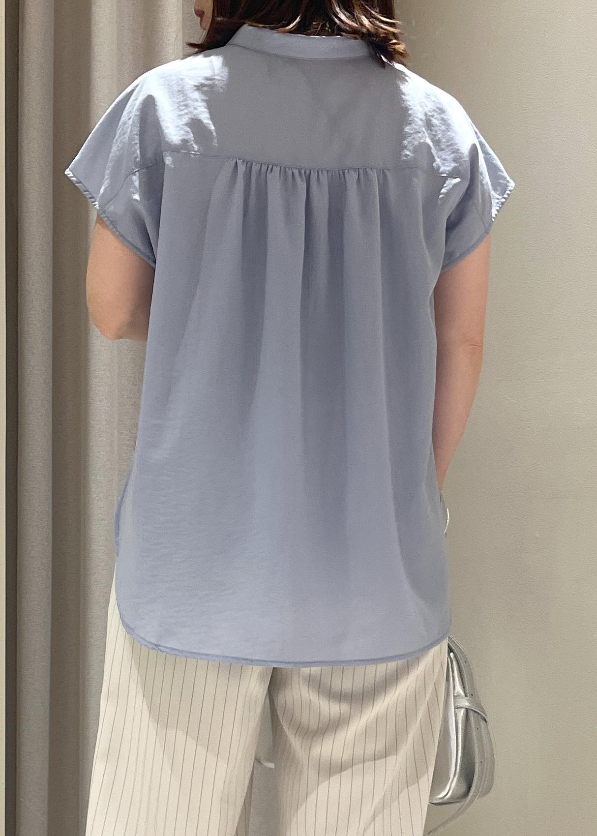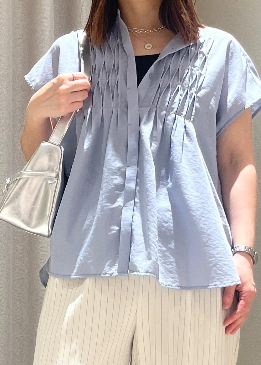 アウトレットVIS【接触冷感/洗える】気流染めスモッキングブラウスサックス / F¥3,457レビューサラッと薄手で軽く、涼しく着れるブラウスです!