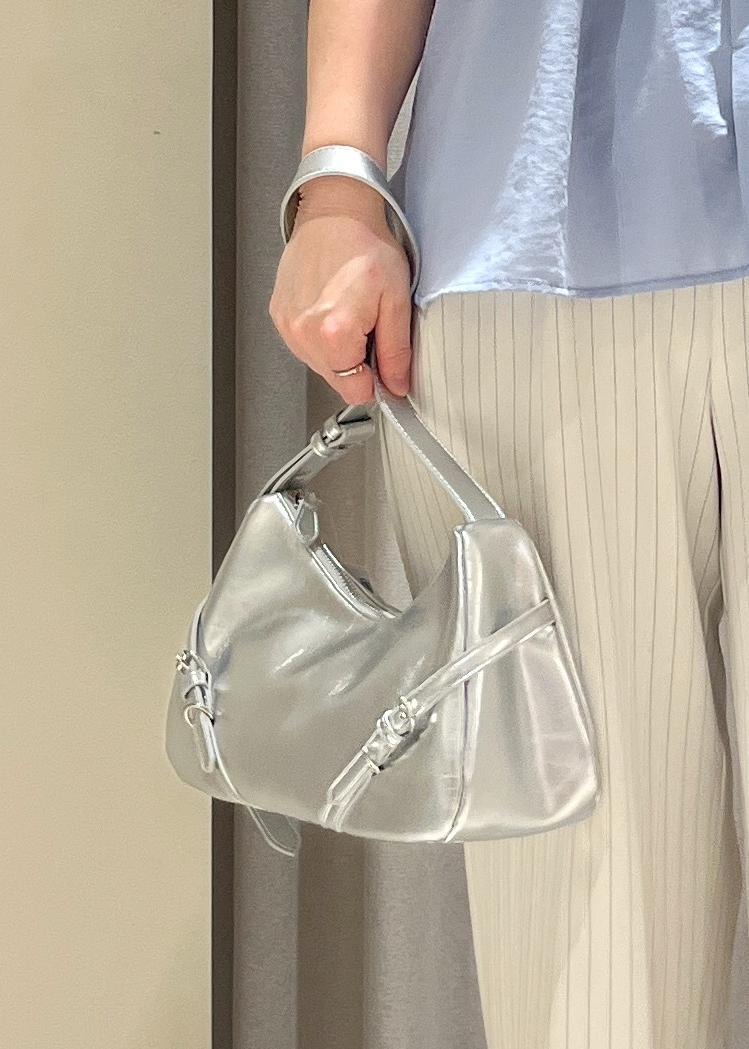 アウトレットVISフロントベルトショルダーバッグシルバー / F¥2,768レビュー一見マチが薄そうですが、500ミリのペットボトルと長財布が収納できる容量です!