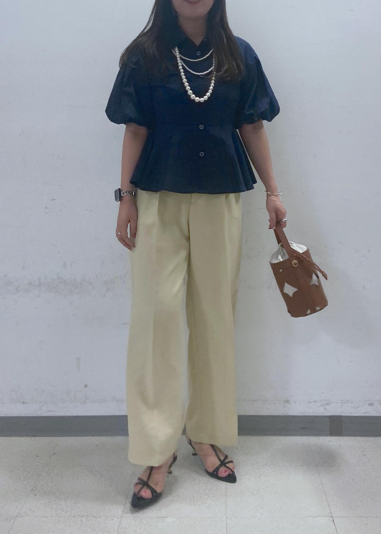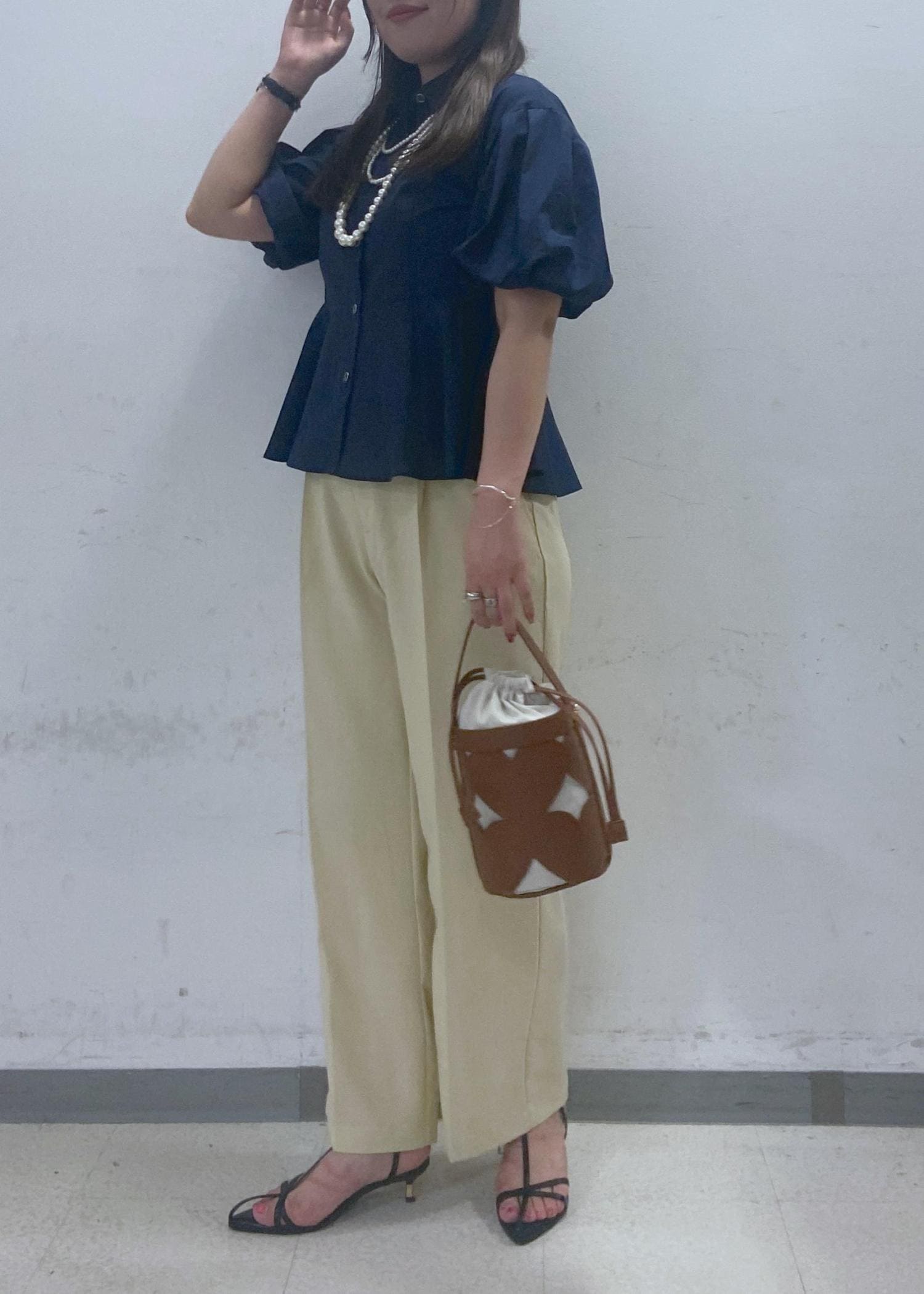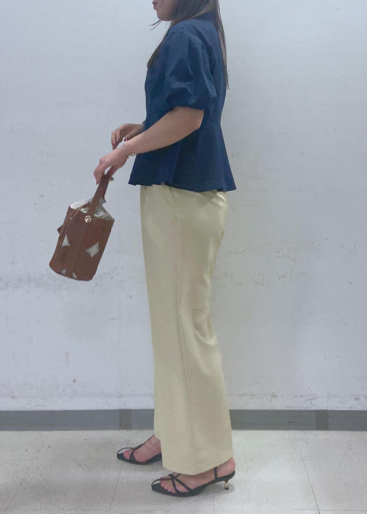 骨格ストレートなのでボリュームのあるスリーブは苦手でしたが、身ごろはスッキリめなペプラムシルエットで身体が大きく見えにくかったです。