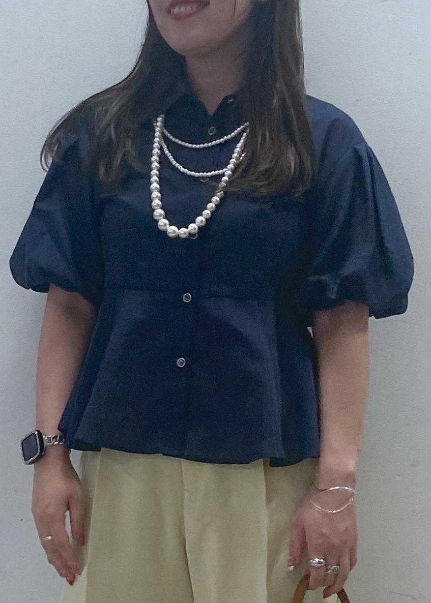 アウトレットVISバルーンスリーブペプラムシャツ/通勤対応ネイビー / F¥3,457レビューやや透け感のある薄手なシャツです。