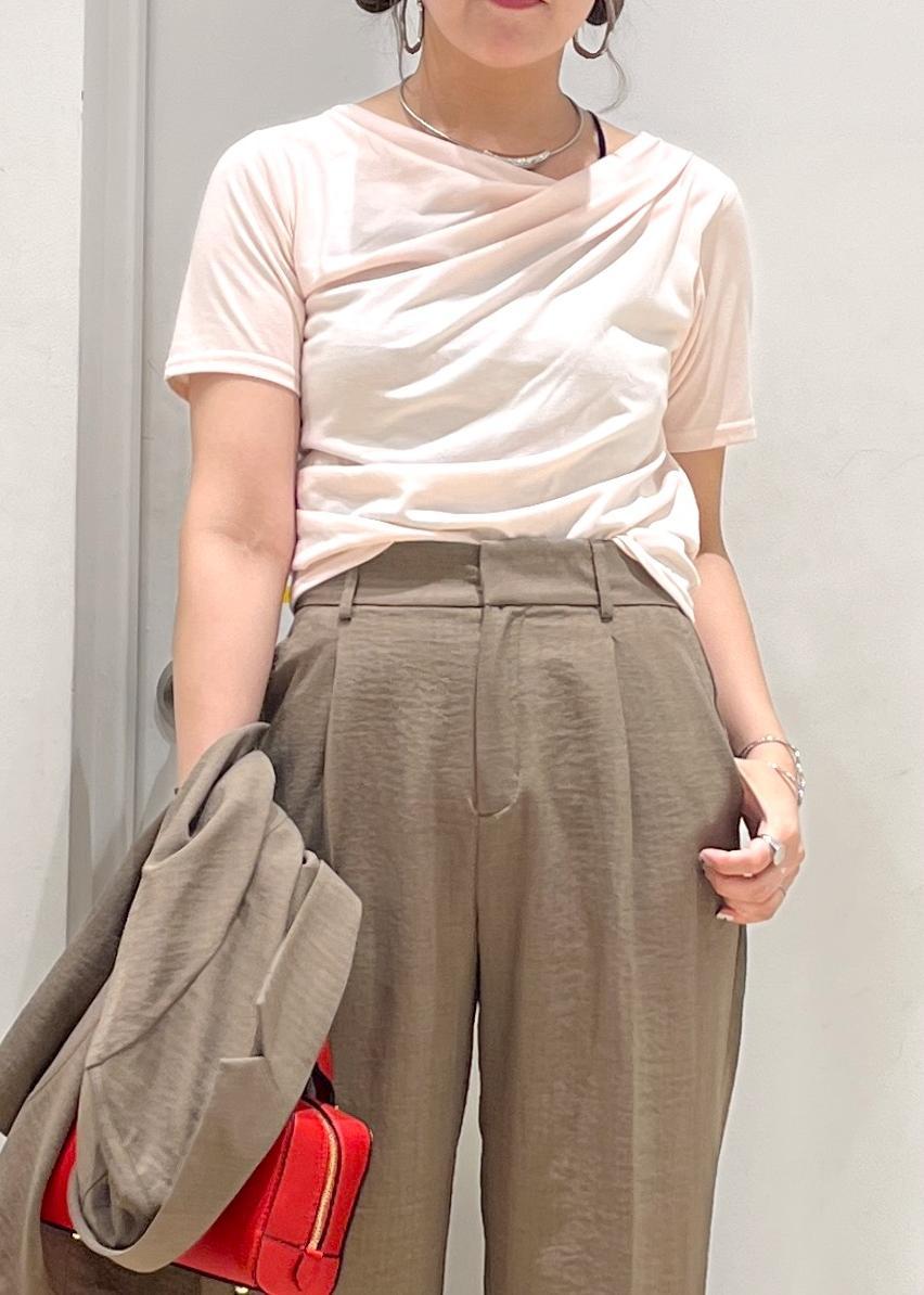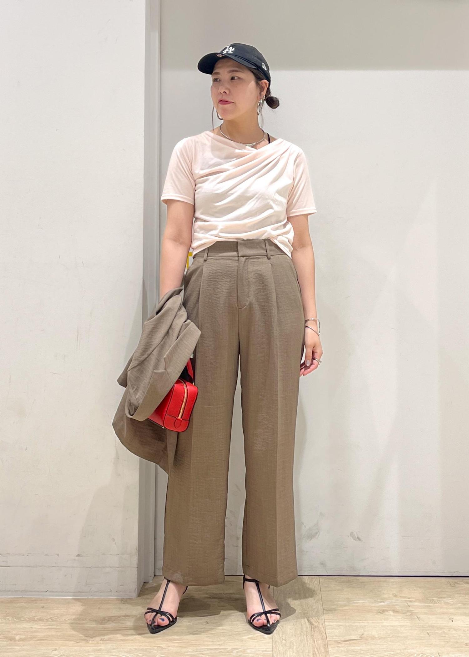 さらっとした着心地でシワにもなりにくくイージーケアの優れもの♪171cm/Lサイズ着用で足首がすこし見える丈感で、太もも周りなどはゆったり着れます。