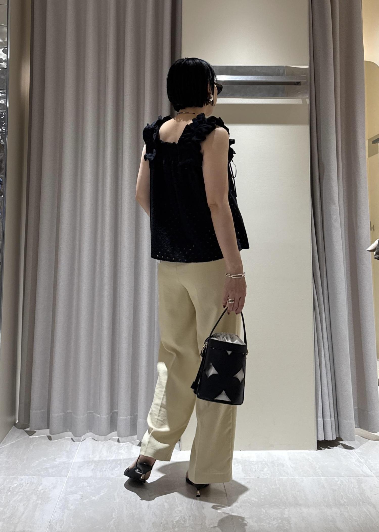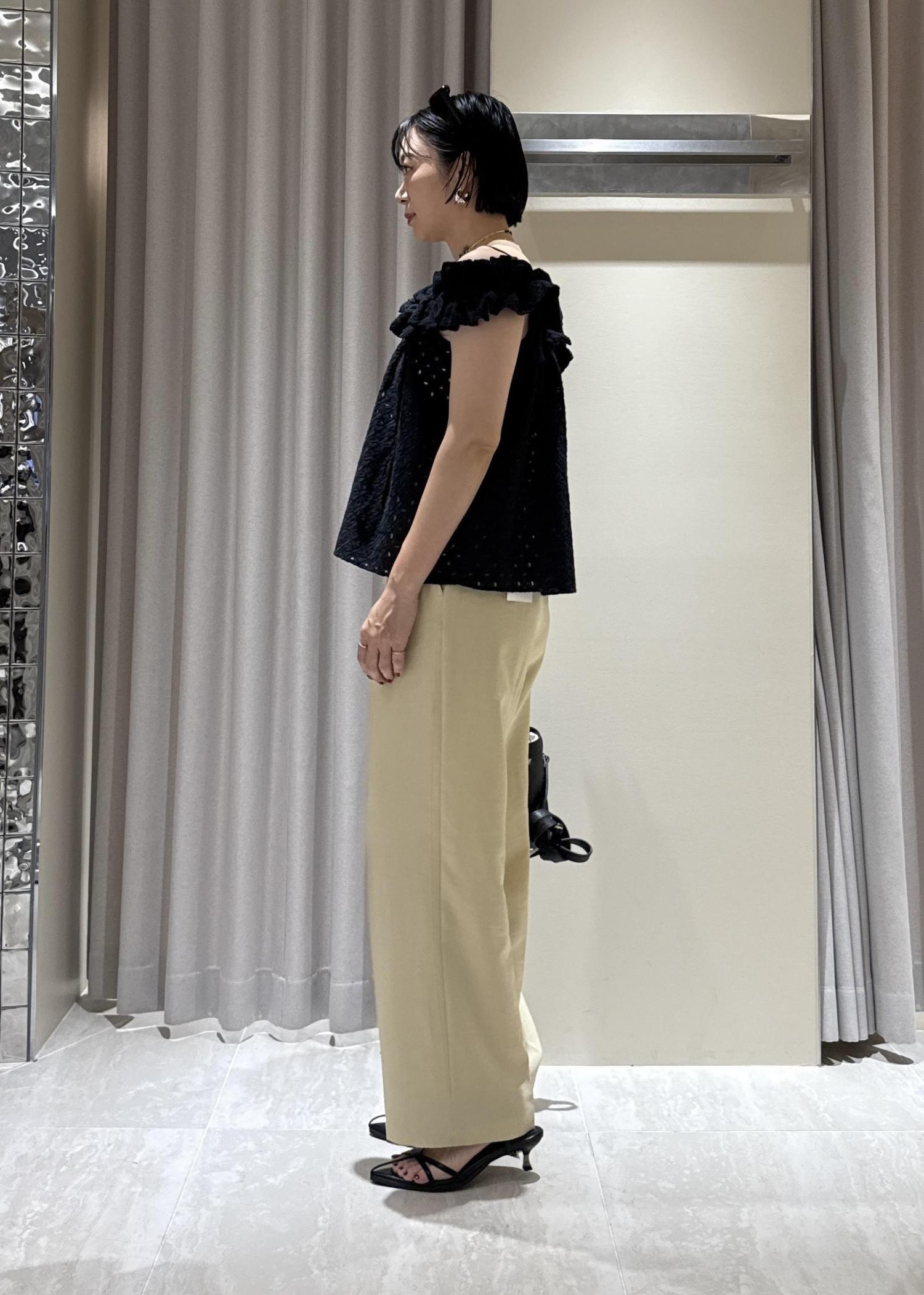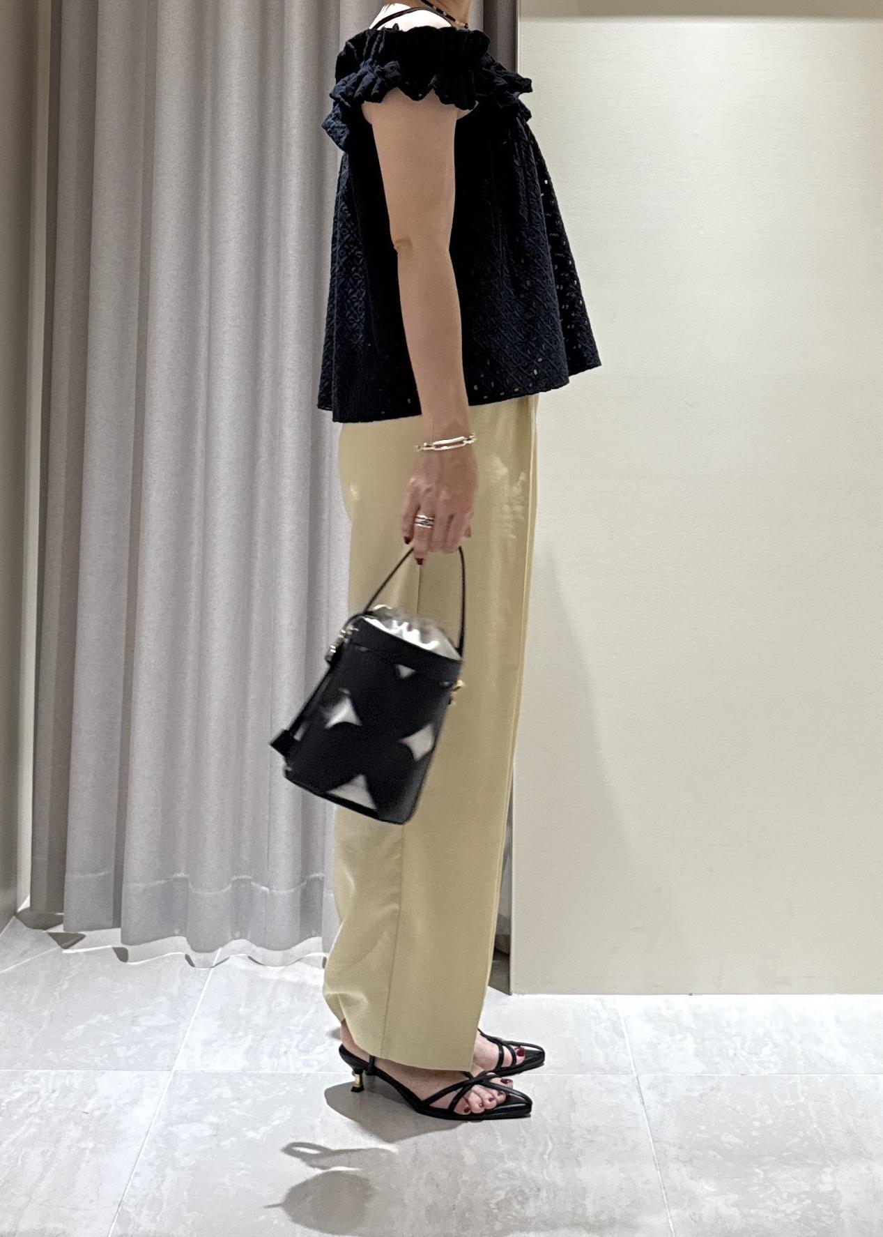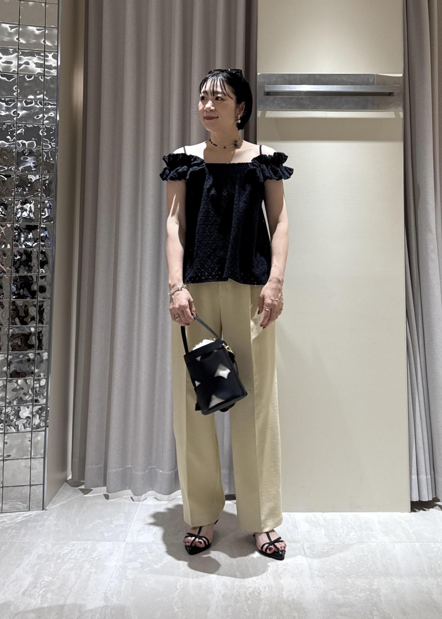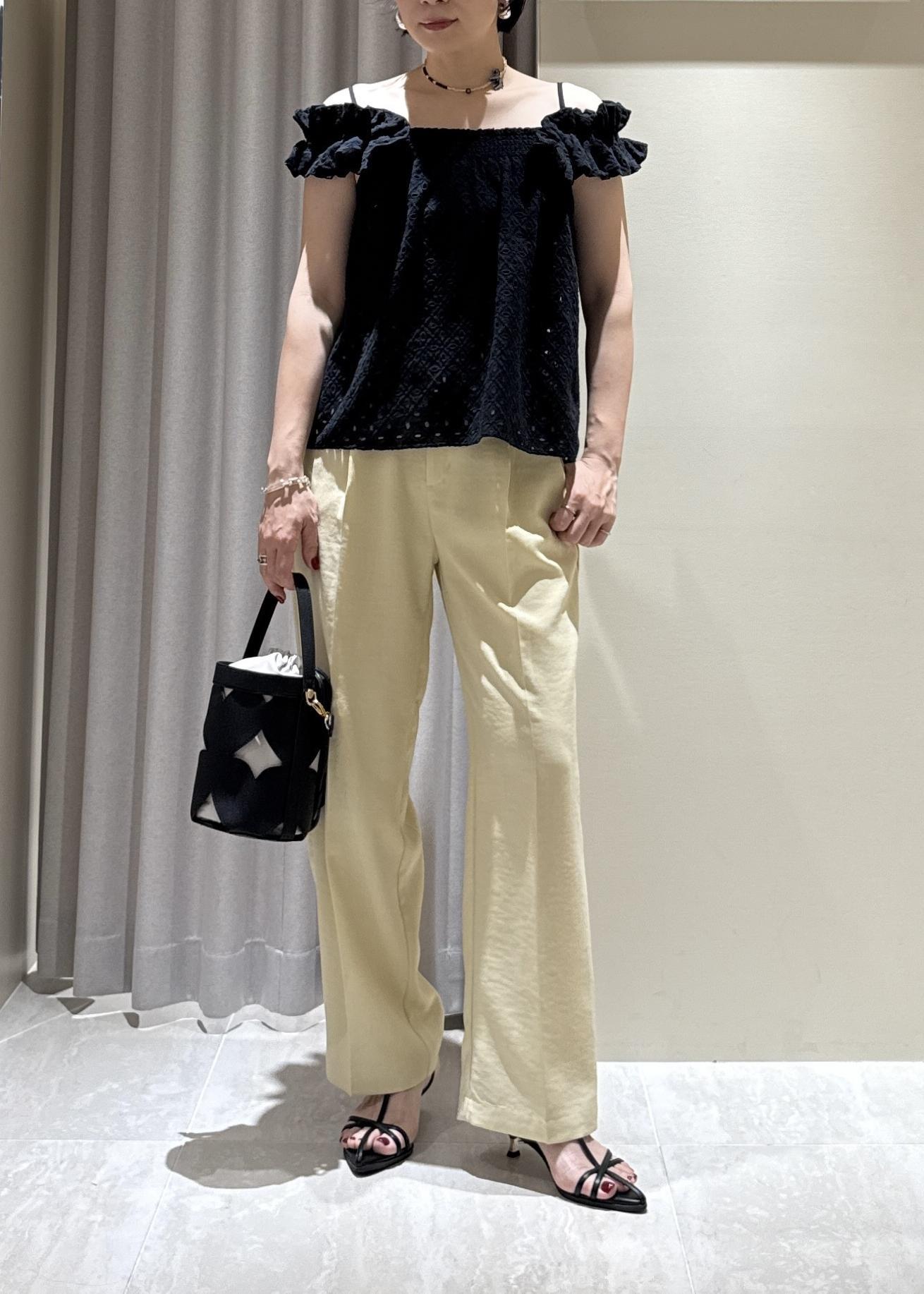 夏らしくブラック×イエローが華やかで、レース編みトップスの甘さとサングラスで甘辛ミックスにしています!