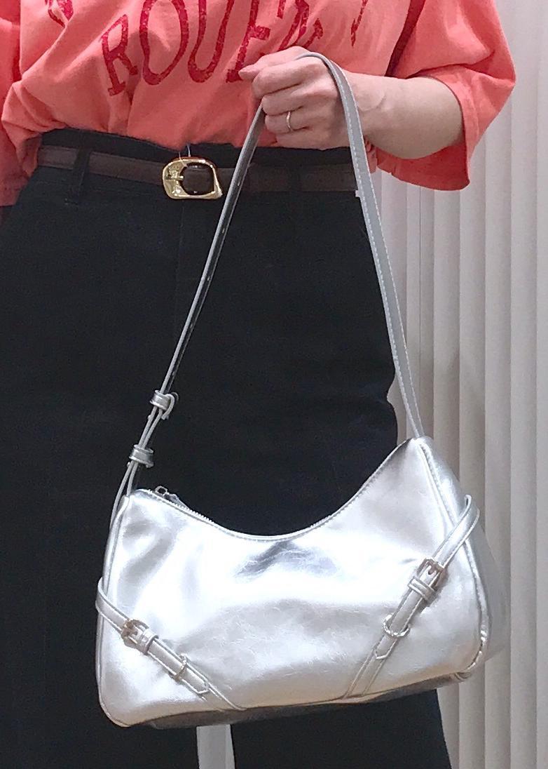 アウトレットVISフロントベルトショルダーバッグシルバー / F¥2,768レビューマチが広めで、500mlペットボトルや長財布、メイクポーチをゆとりを持って入れられます。