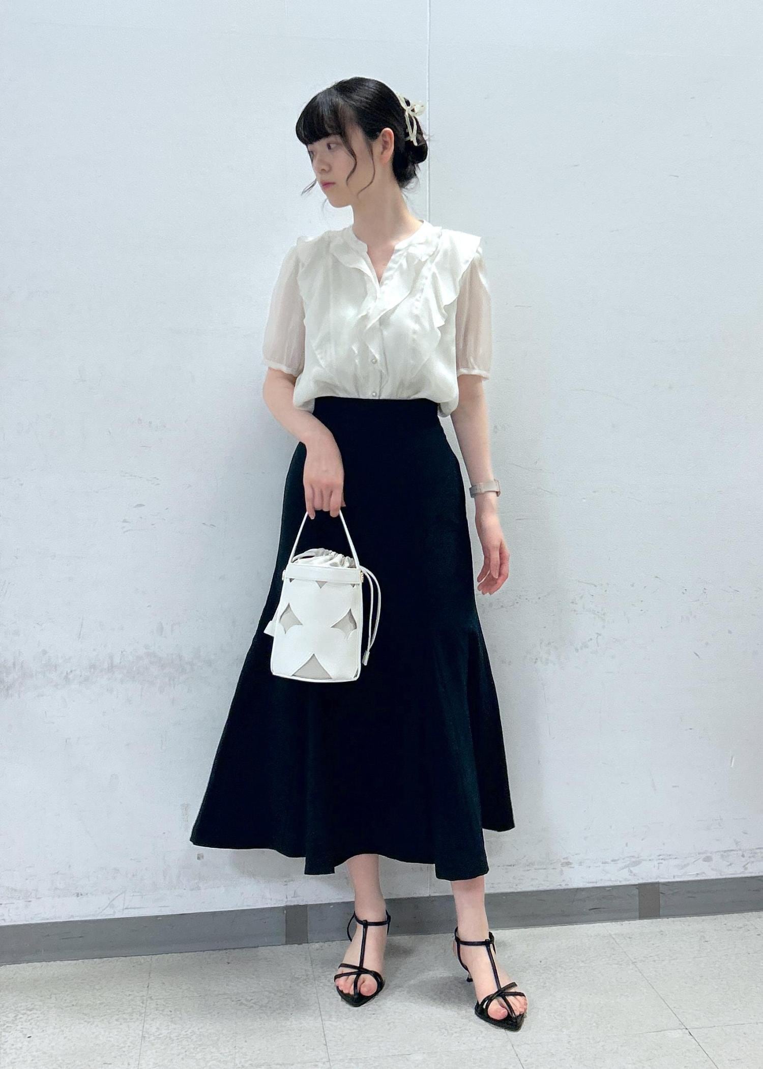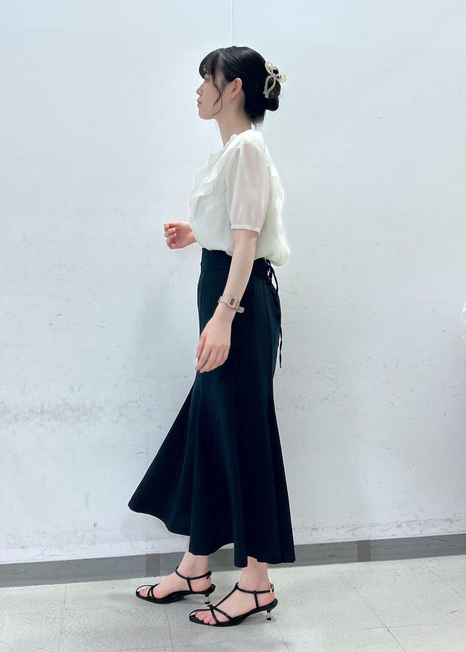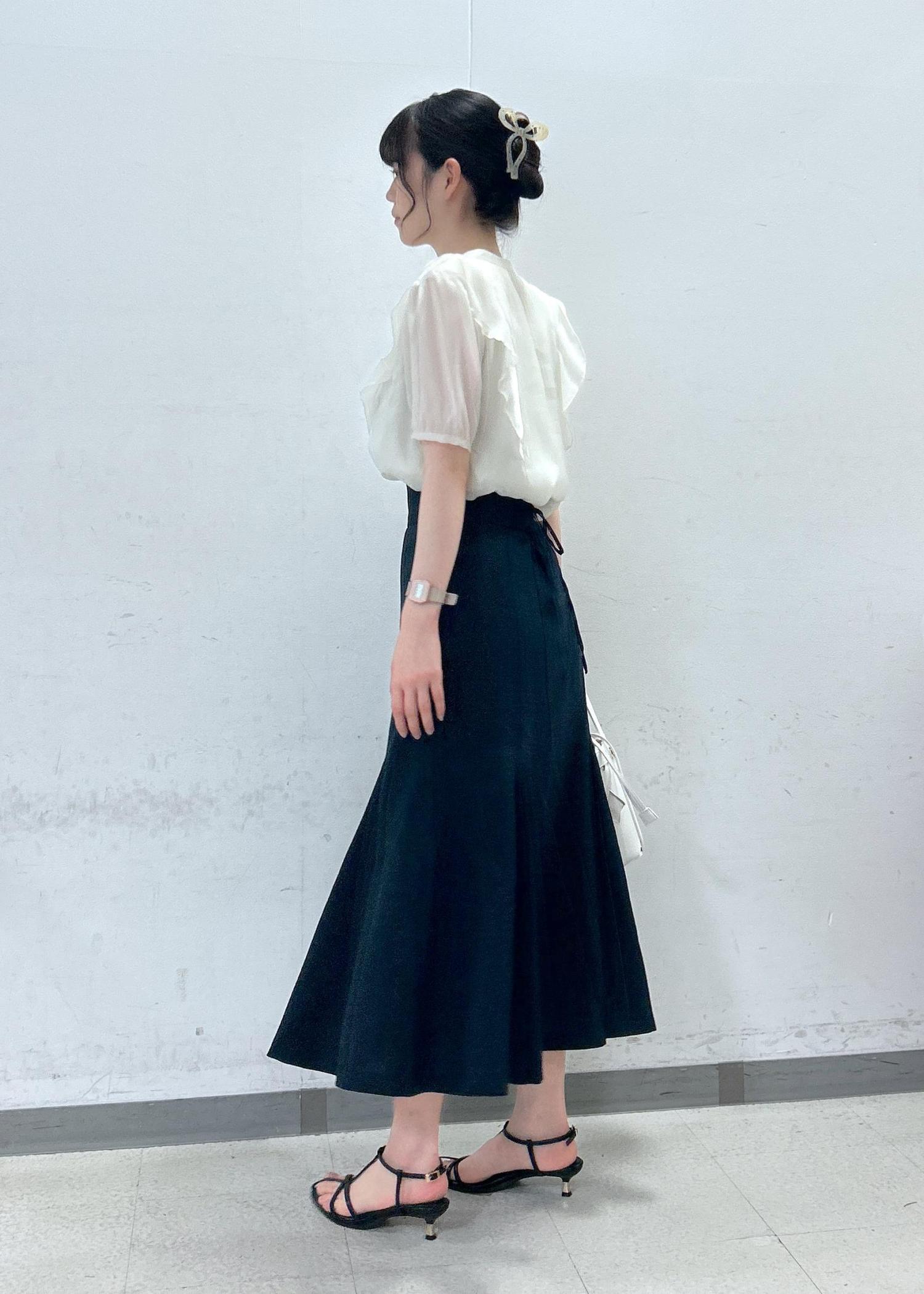 裾にマチがあるので広がりが綺麗で編み上げデザインと相まってフェミニンな印象になります -