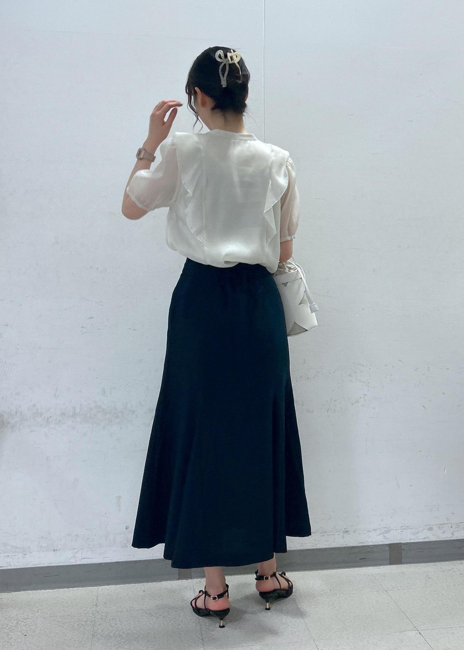 アウトレットVIS【洗える】シアーラッフルフリル半袖ブラウスキナリ / F¥4,391レビューキラキラした素材とフリルで顔周りを程よく華やかにしてくれます。