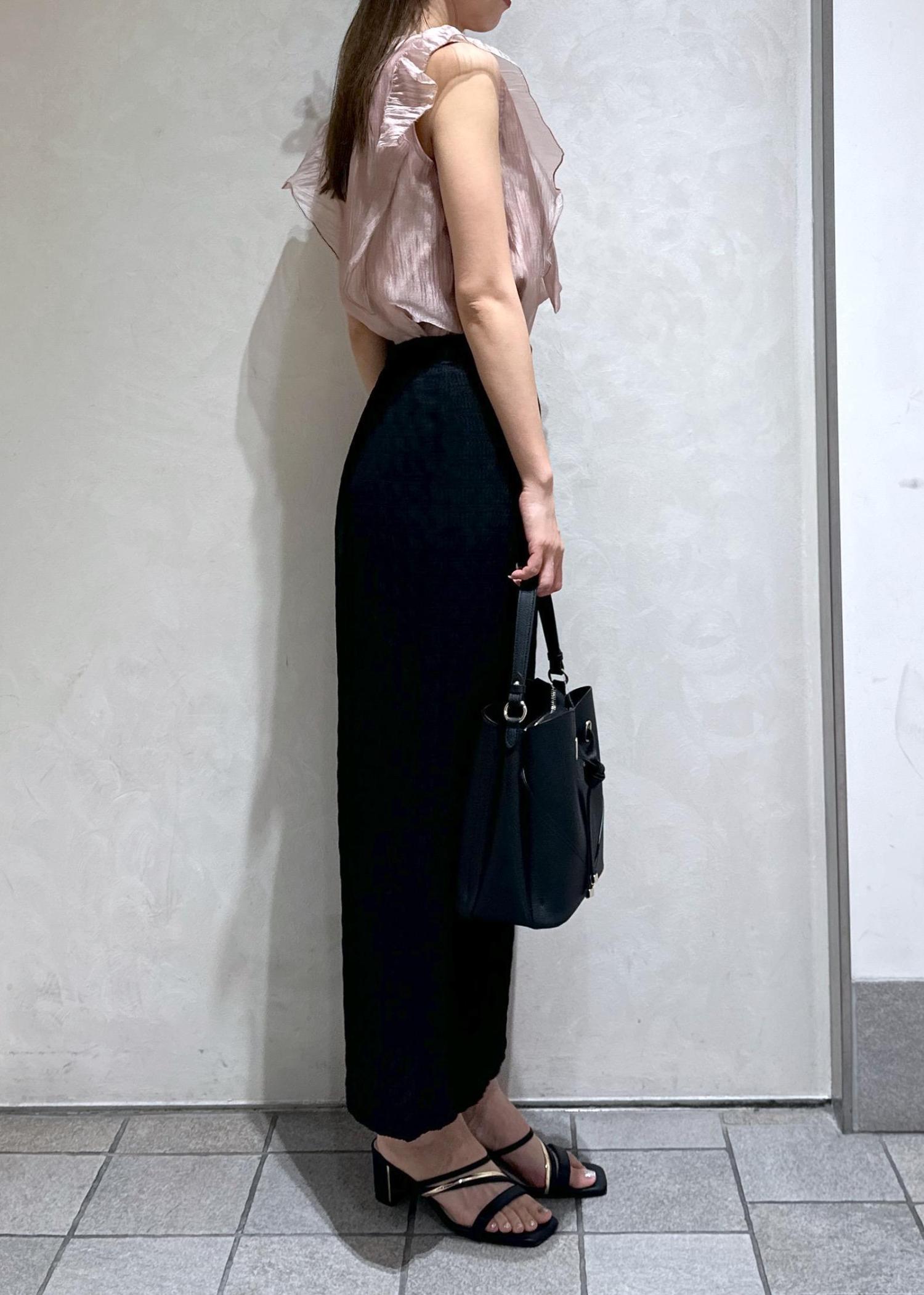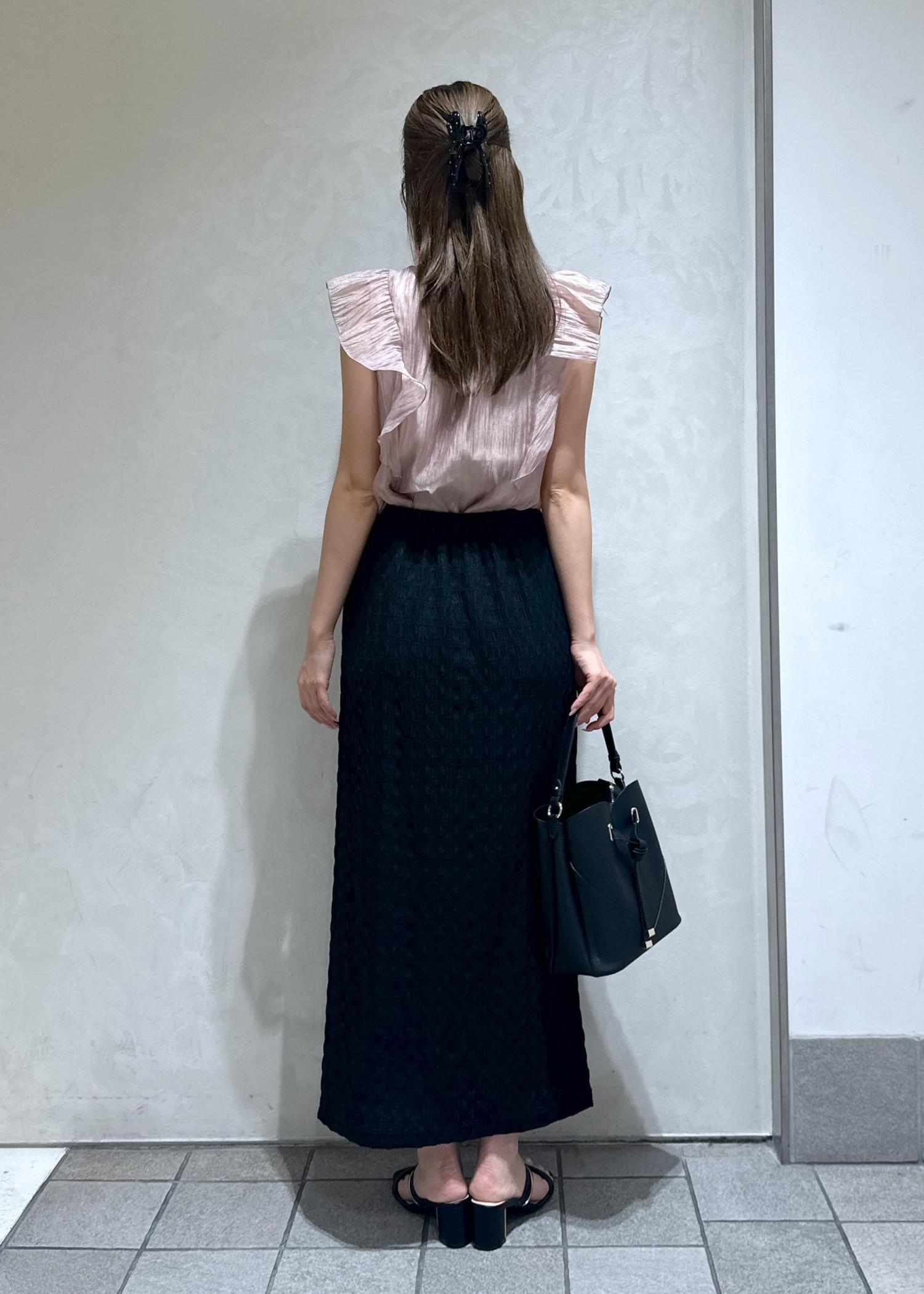 アウトレットVIS【新色追加】【接触冷感】膨れジャガードナロースカートブラック / F¥3,293レビューIラインのスカートでスリットが入っていませんが、生地が伸びるのですごく歩きやすいです!165cmの私が着用して足首がしっかり見える丈間です!