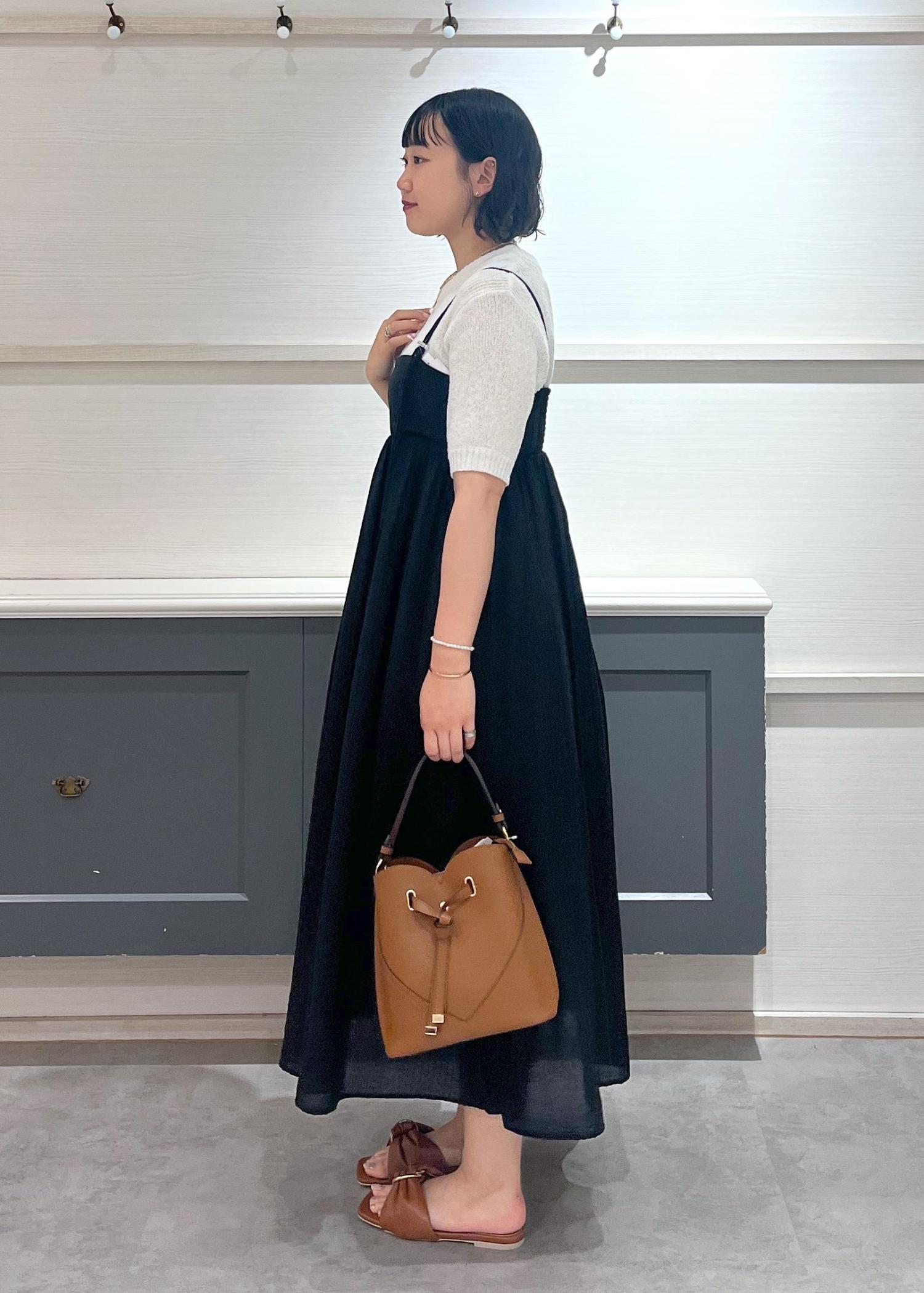 そこにキャメル色の小物を足すことで雰囲気もパッと