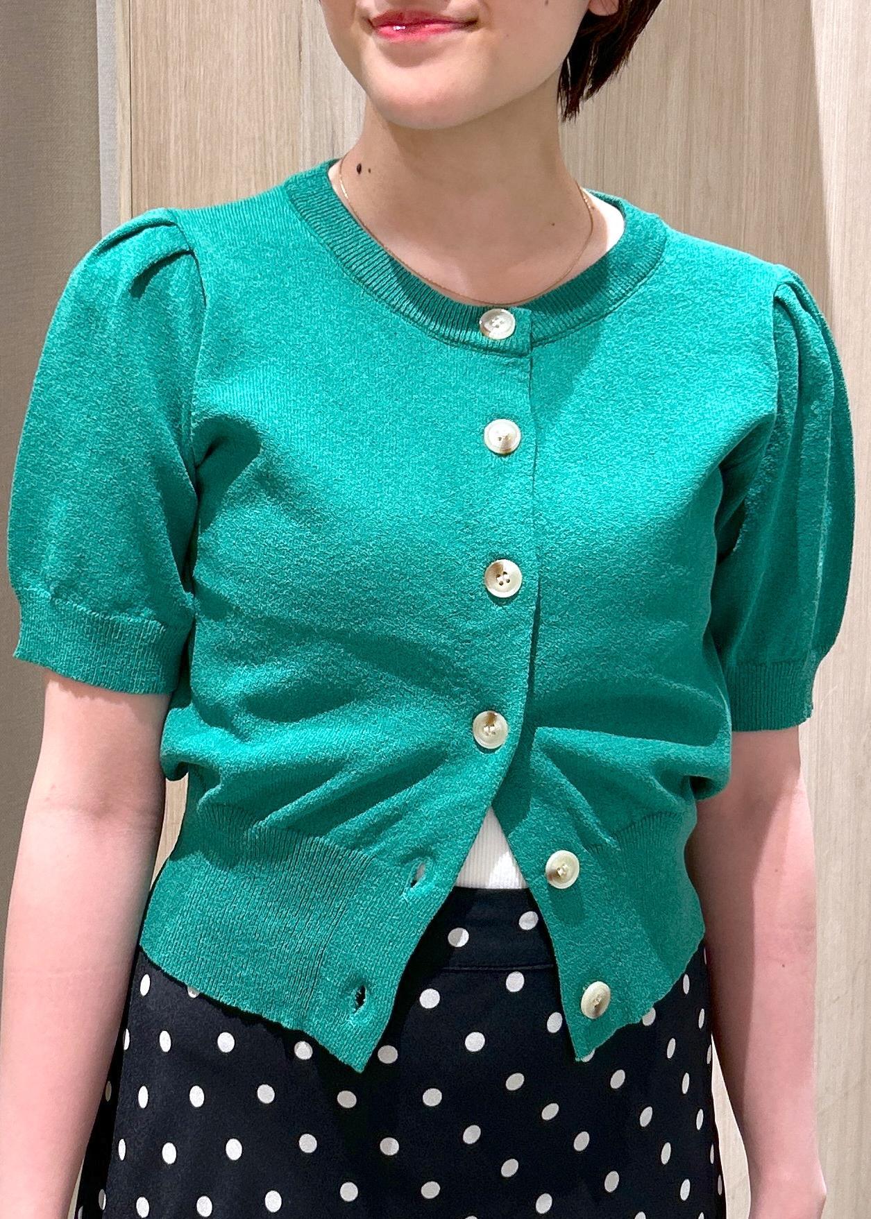 アウトレットVIS【UVケア/洗える】ハーフスリーブニットトップスカーディガングリーン / F¥4,391レビュー袖に少しボリューム感のあるカーディガンです。