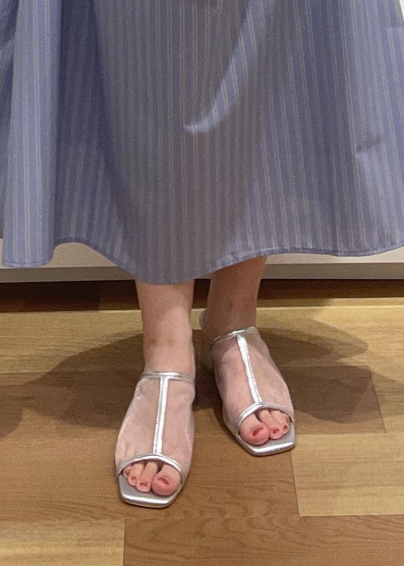 アウトレットROPÉ PICNIC PASSAGEスクエアトゥチュールミュールシルバー / M¥3,842レビューヒールは高めですが太めのヒールなので安定感があります!シンプルではありますがチュール素材で透け感があるので涼しげな足元になります♪