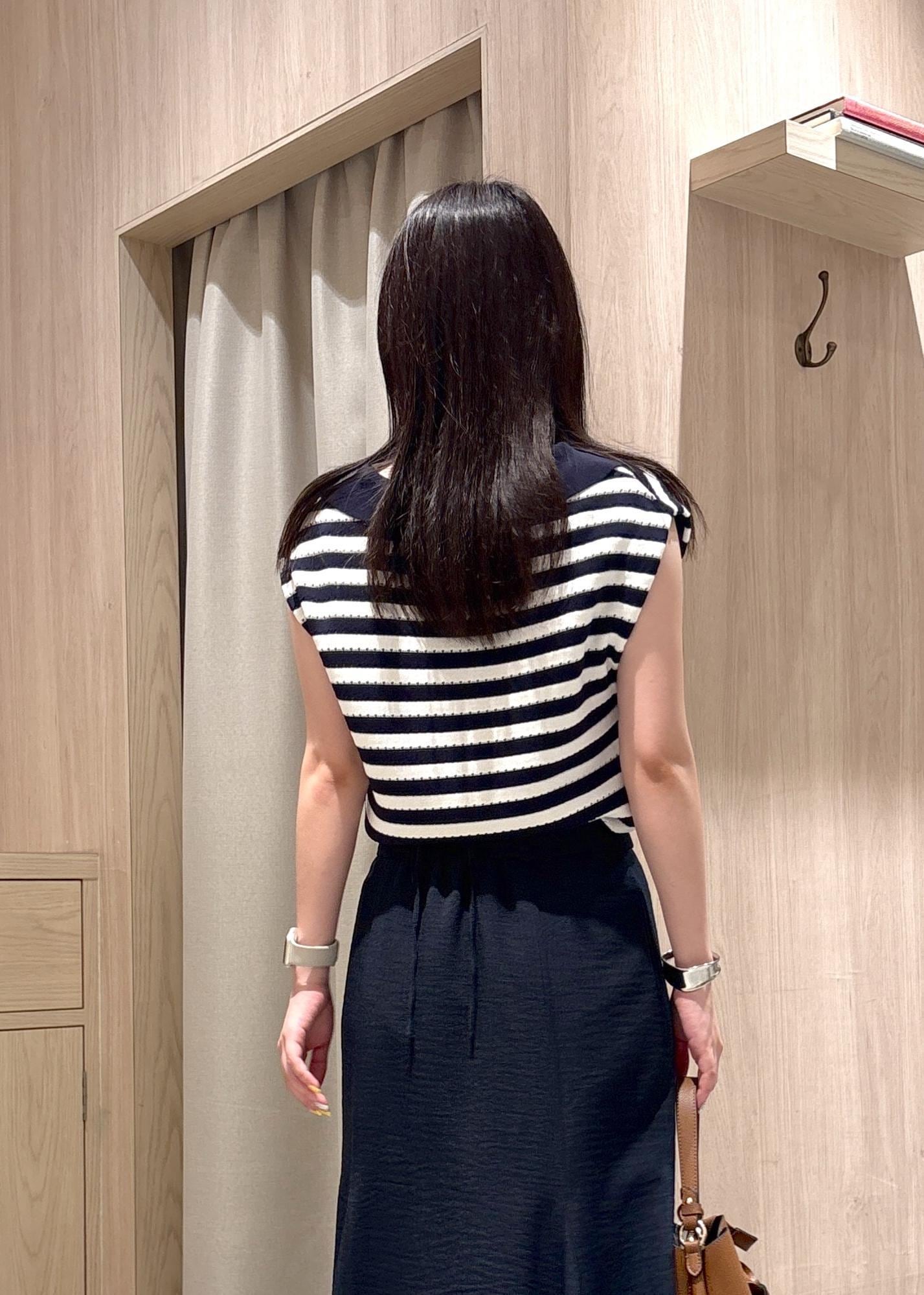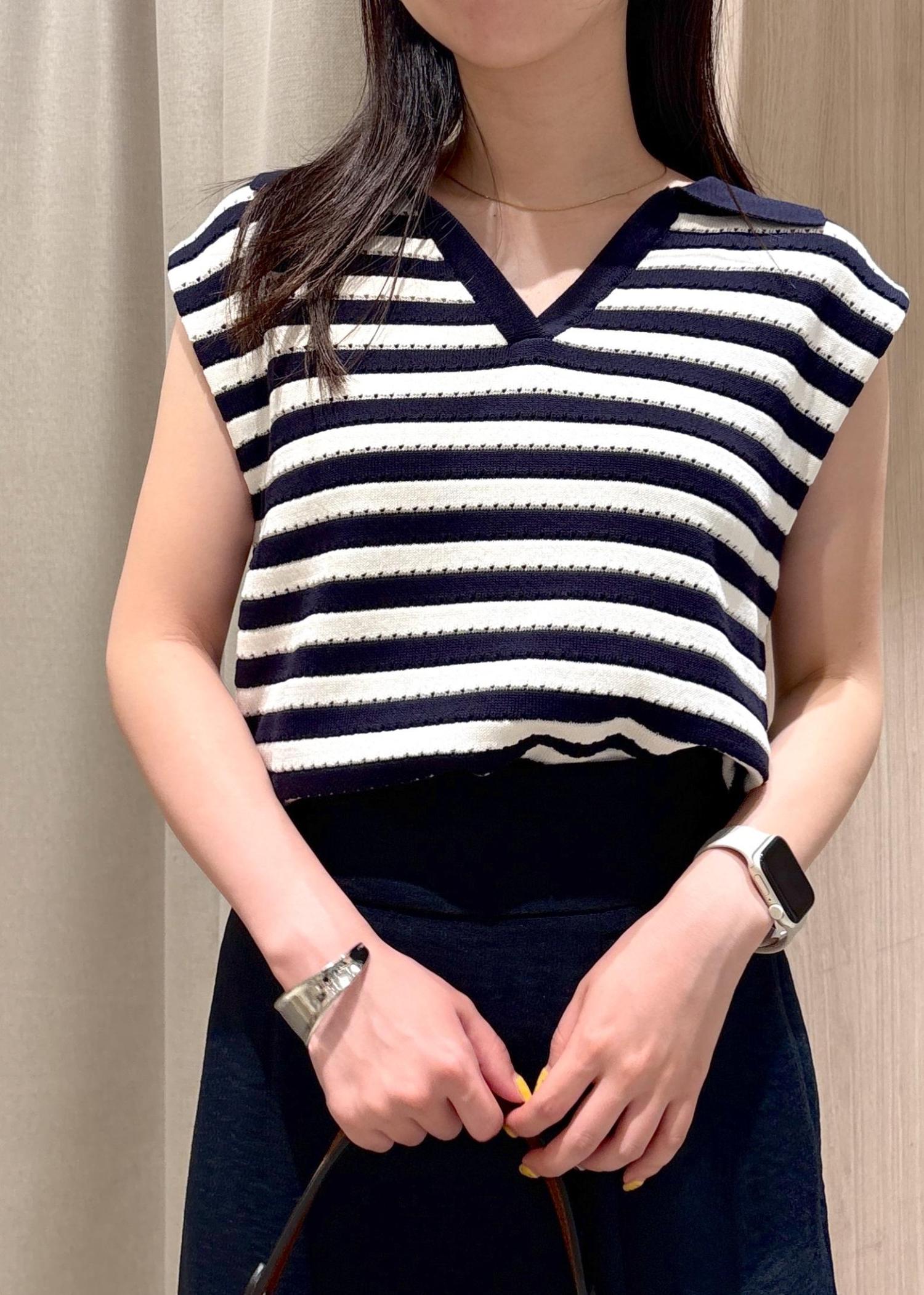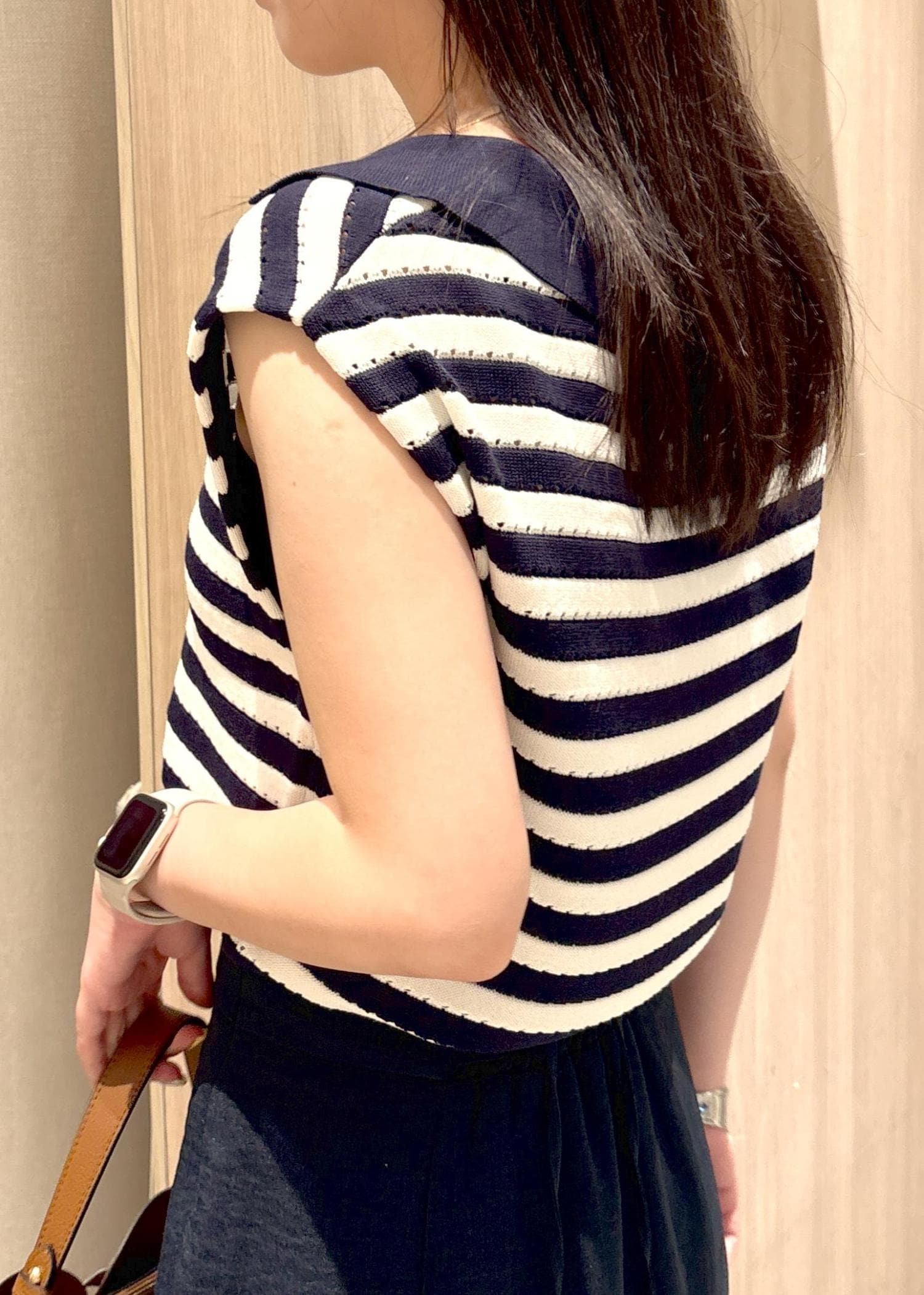 アウトレットVISスキッパーフレンチスリーブアイレットニットネイビー系 / F¥3,842レビュー首もとがスキッパーデザインなので、骨格ストレートの方でも上半身スッキリ見えします◎