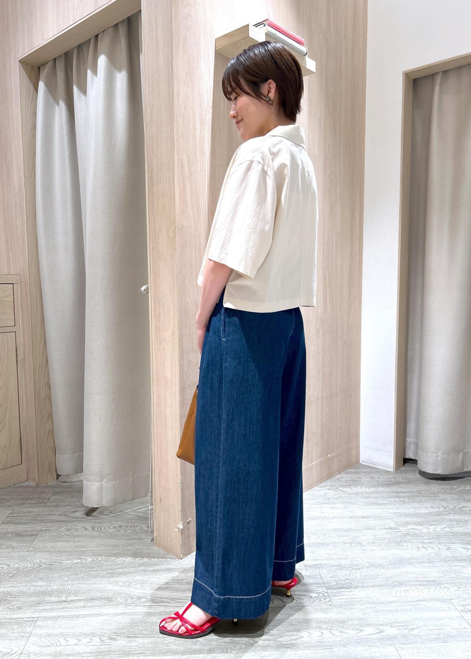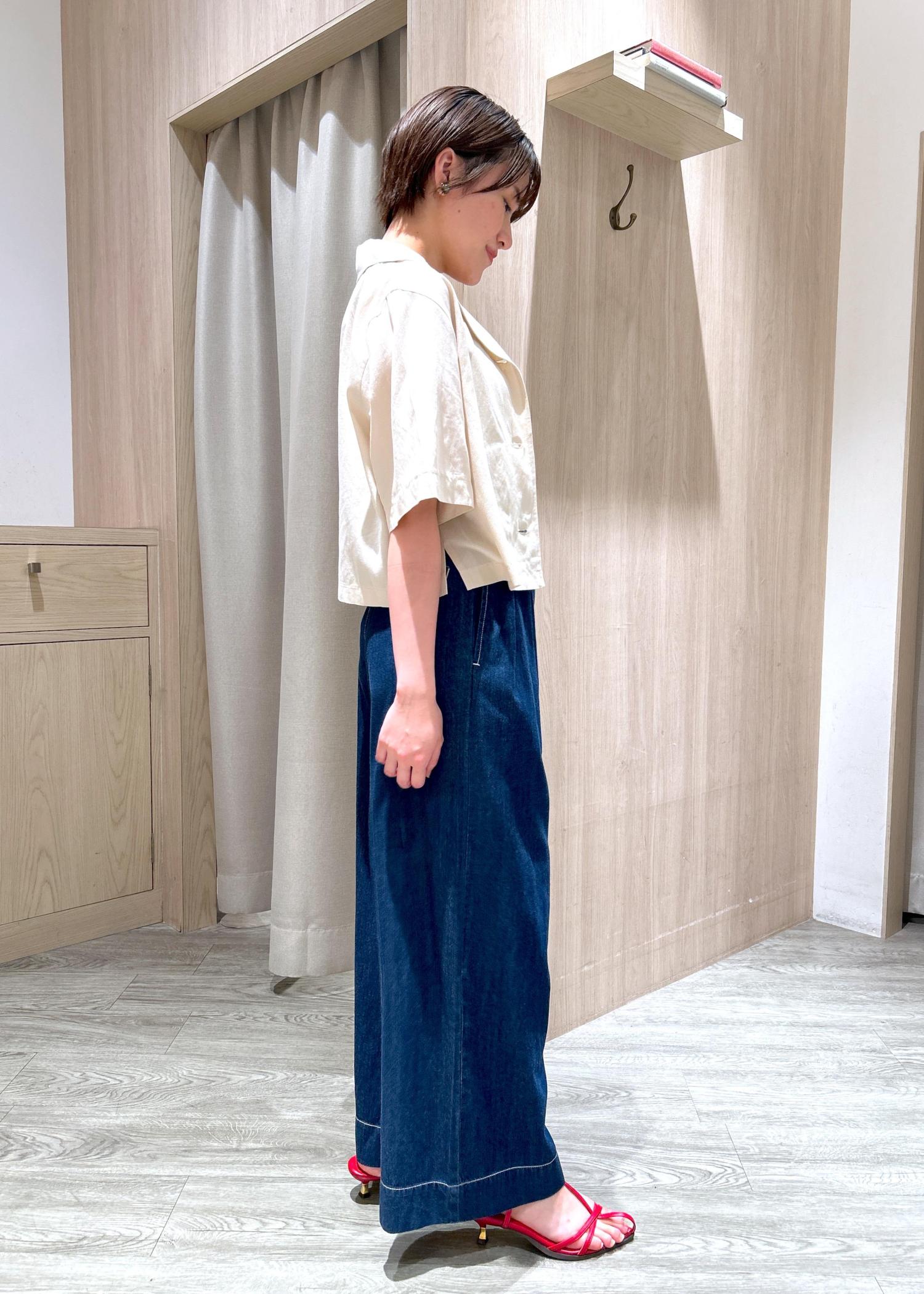 柔らかいデニム素材で、骨格ウェーブの私も腰の張りなど気にならずにスッキリ着れました。