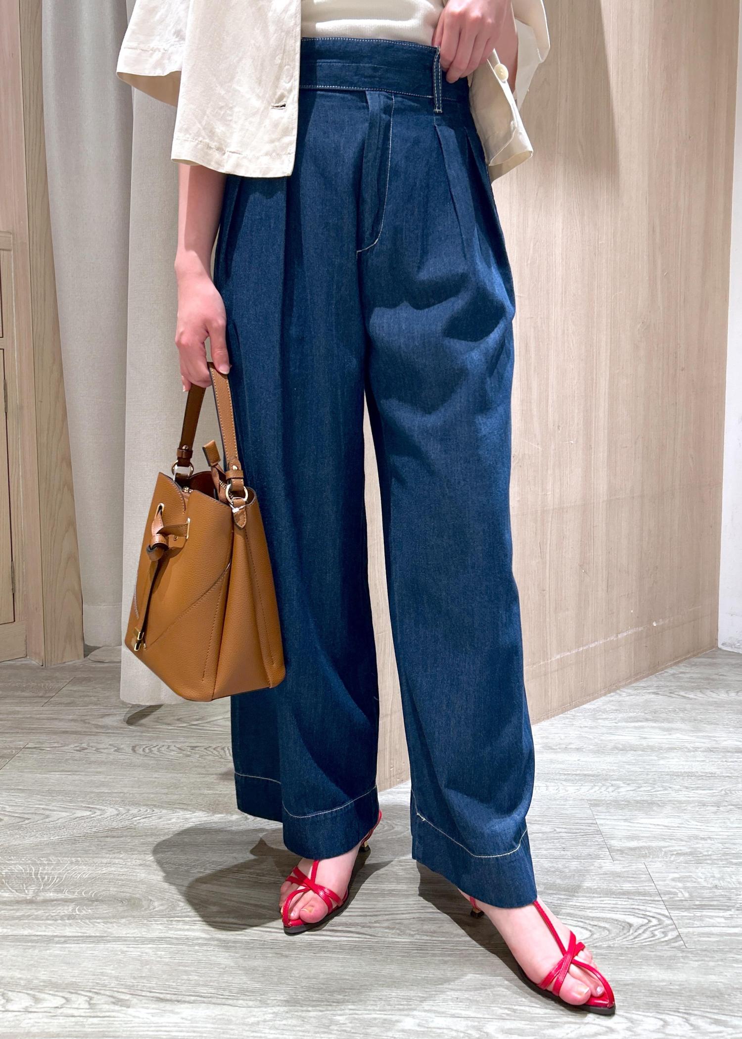 アウトレットVISタックデザインリラックスデニムパンツブルー / S¥3,460レビュー身長155cm、Sサイズ着用で踵が少し隠れる長さです。