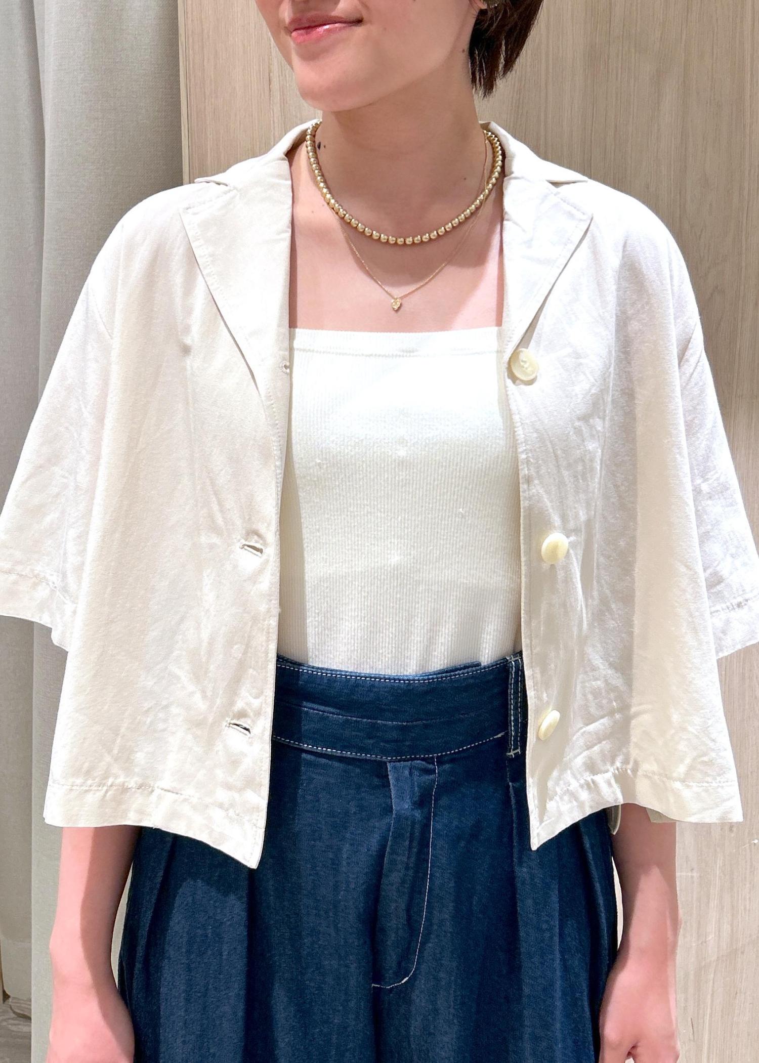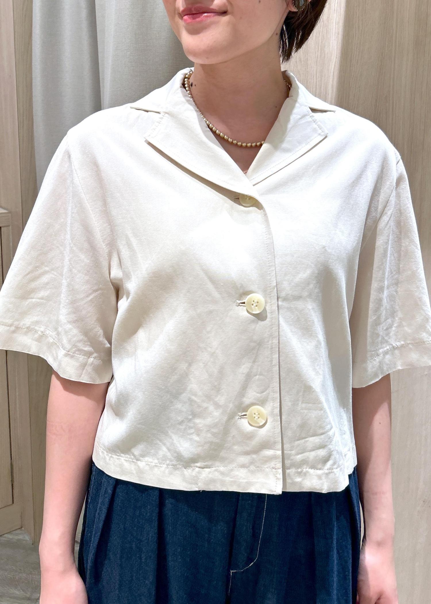 アウトレットVIS開襟リネンライクシャツキナリ / F¥3,511レビューお腹が隠れる丈感です。