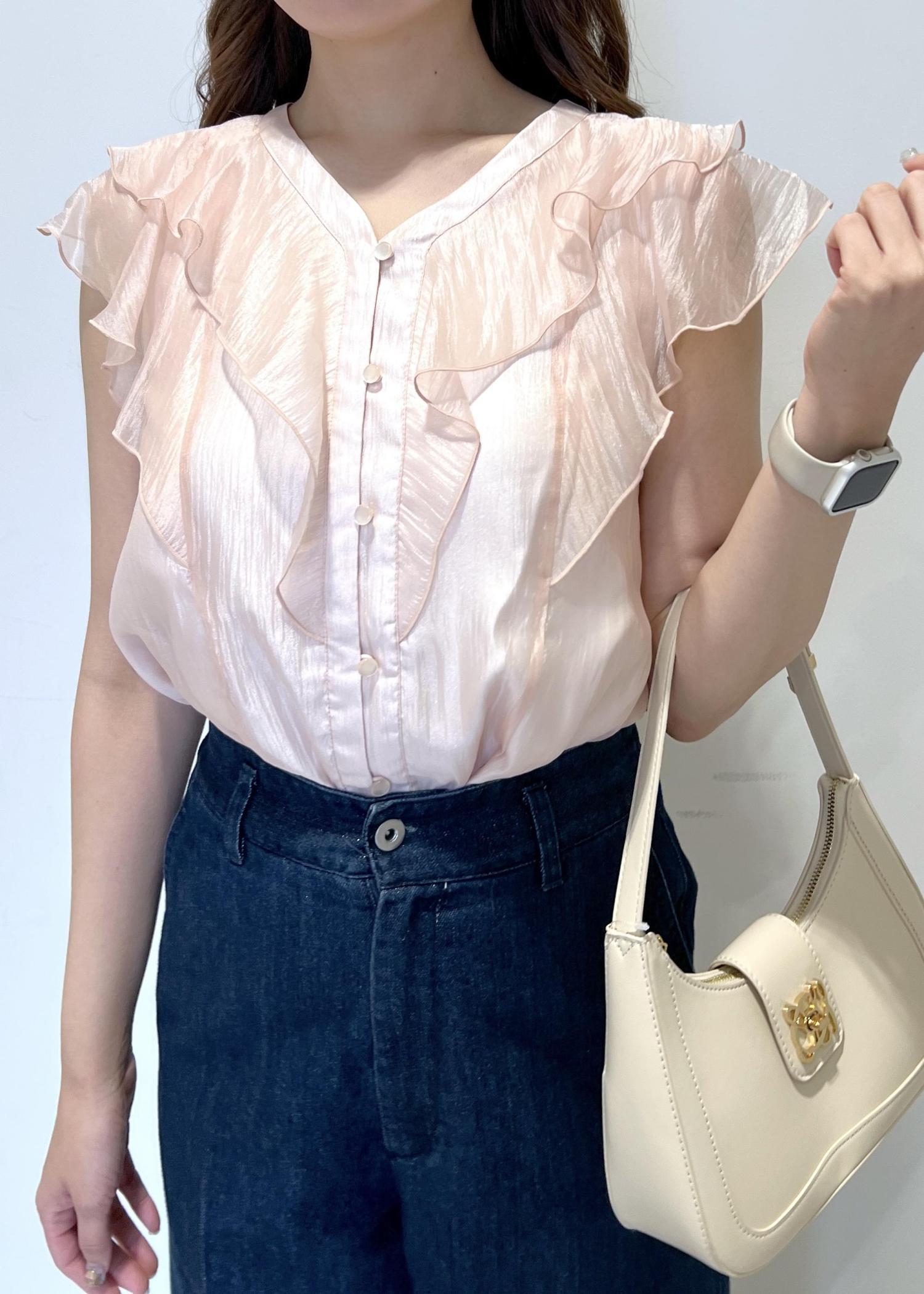 アウトレットVISシアーラッフルフリルブラウス/通勤対応ピンク / F¥3,842レビューフリルでシアー感あるデザインが涼しげでお洒落です!着丈は腰にかかるくらいです◎