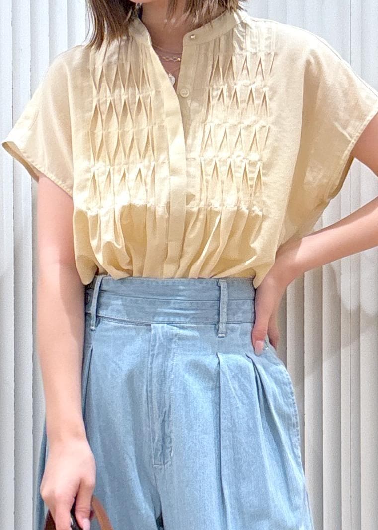 アウトレットVIS【接触冷感/洗える】気流染めスモッキングブラウスイエロー / F¥3,457レビュー毎年人気のブラウスです!