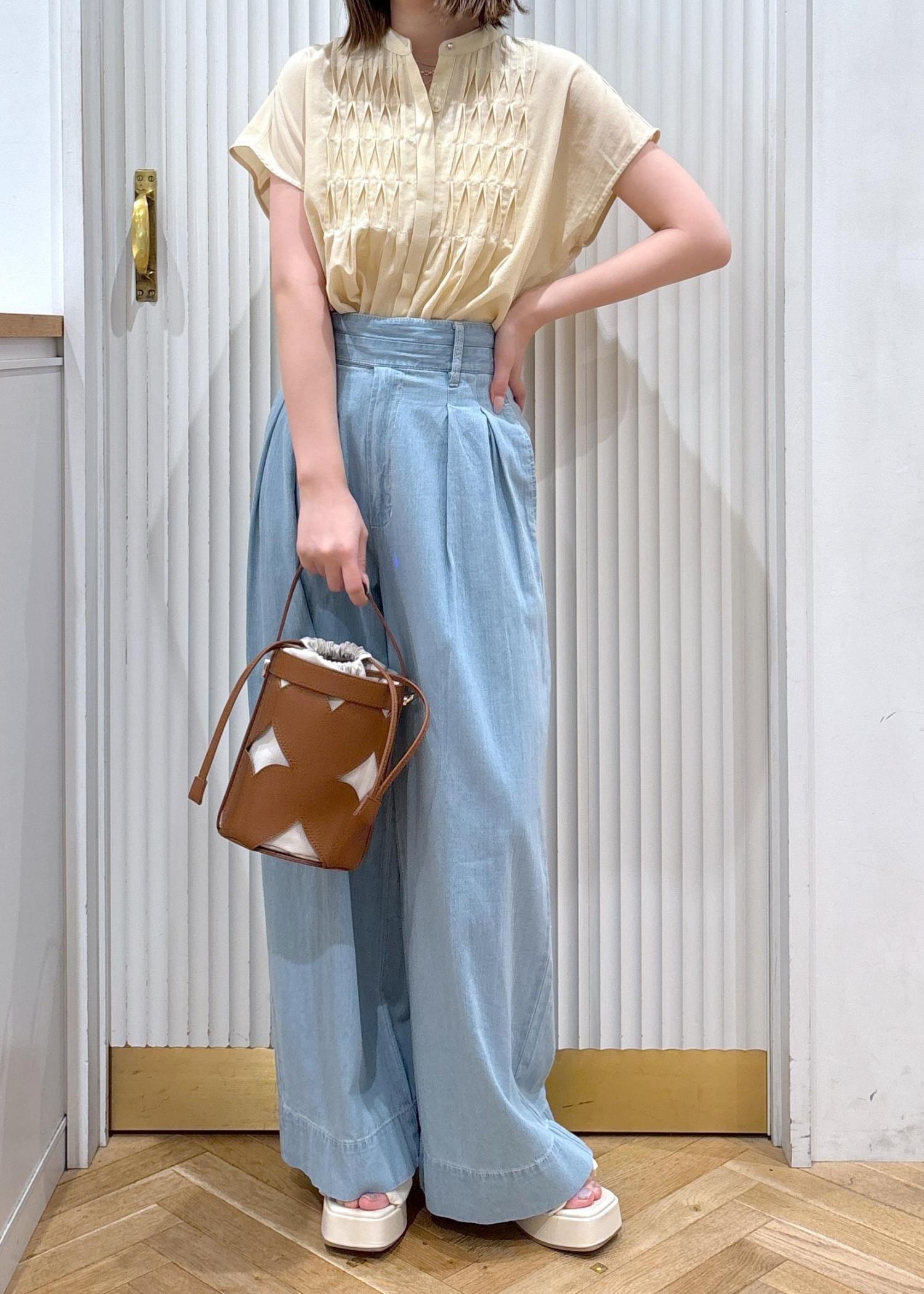 このブラウスなら、ノースリーブですが、二の腕カバーにもなる最高のアイテムなので、夏に大活躍します!