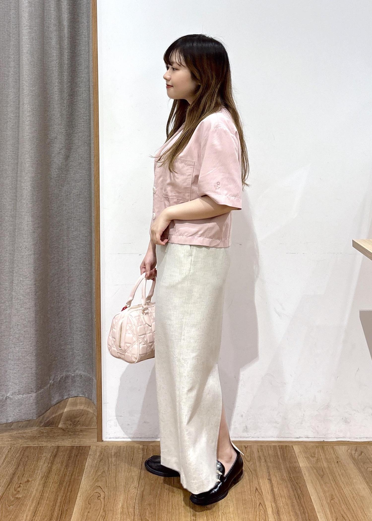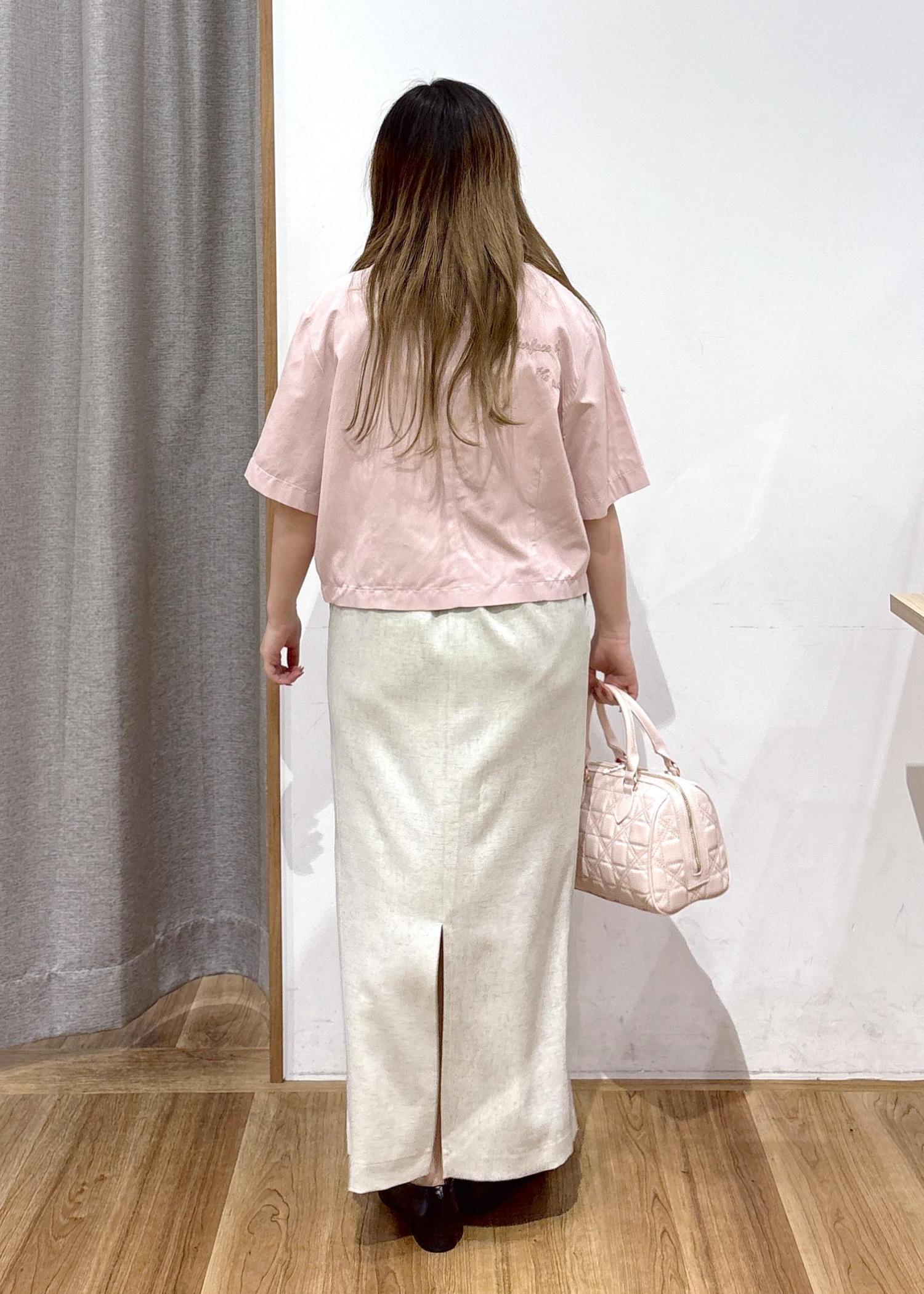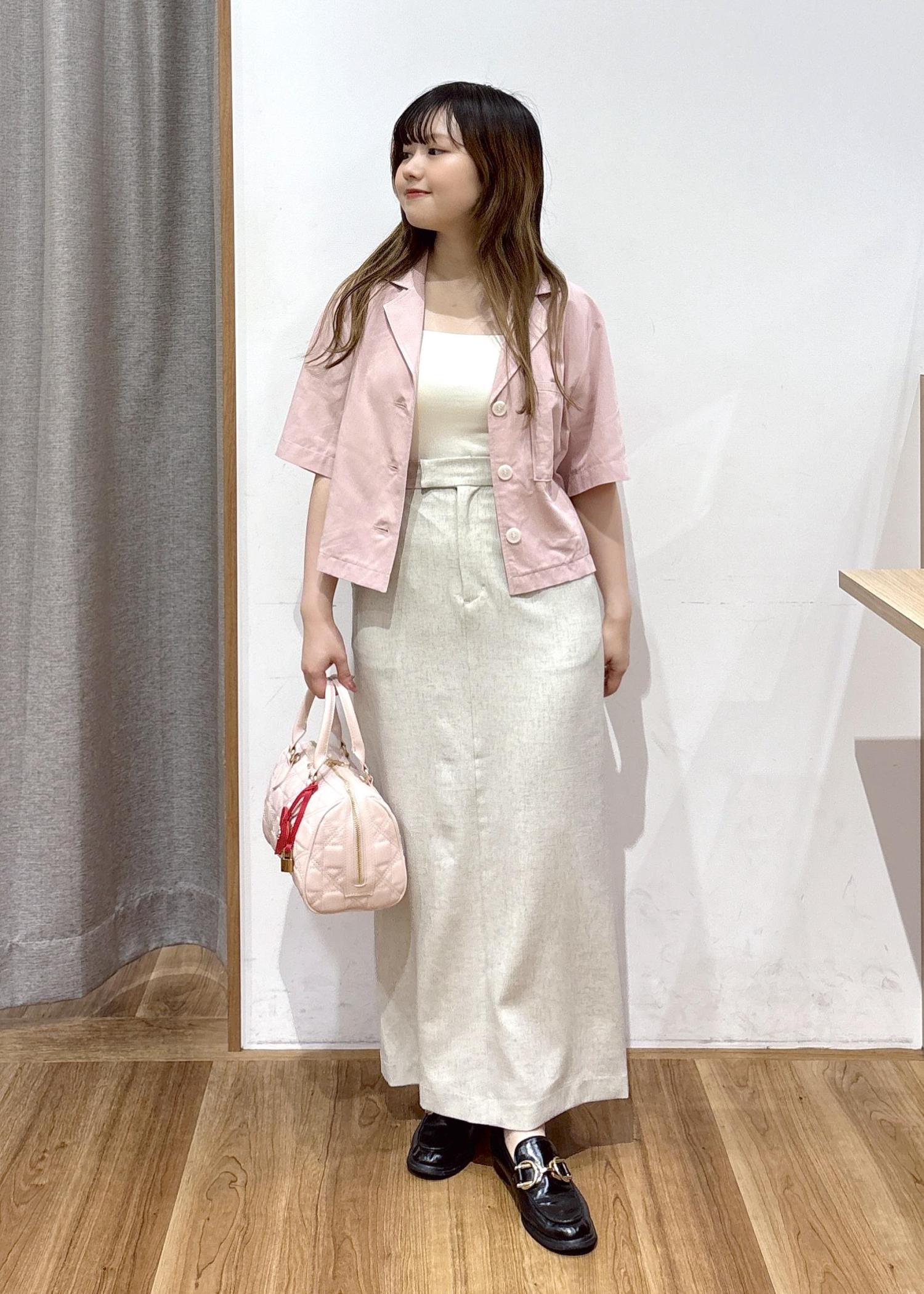 甘くなりすぎないよう、シンプルなスカートを合わせてみたり、色味をまとめたのがこだわりです。