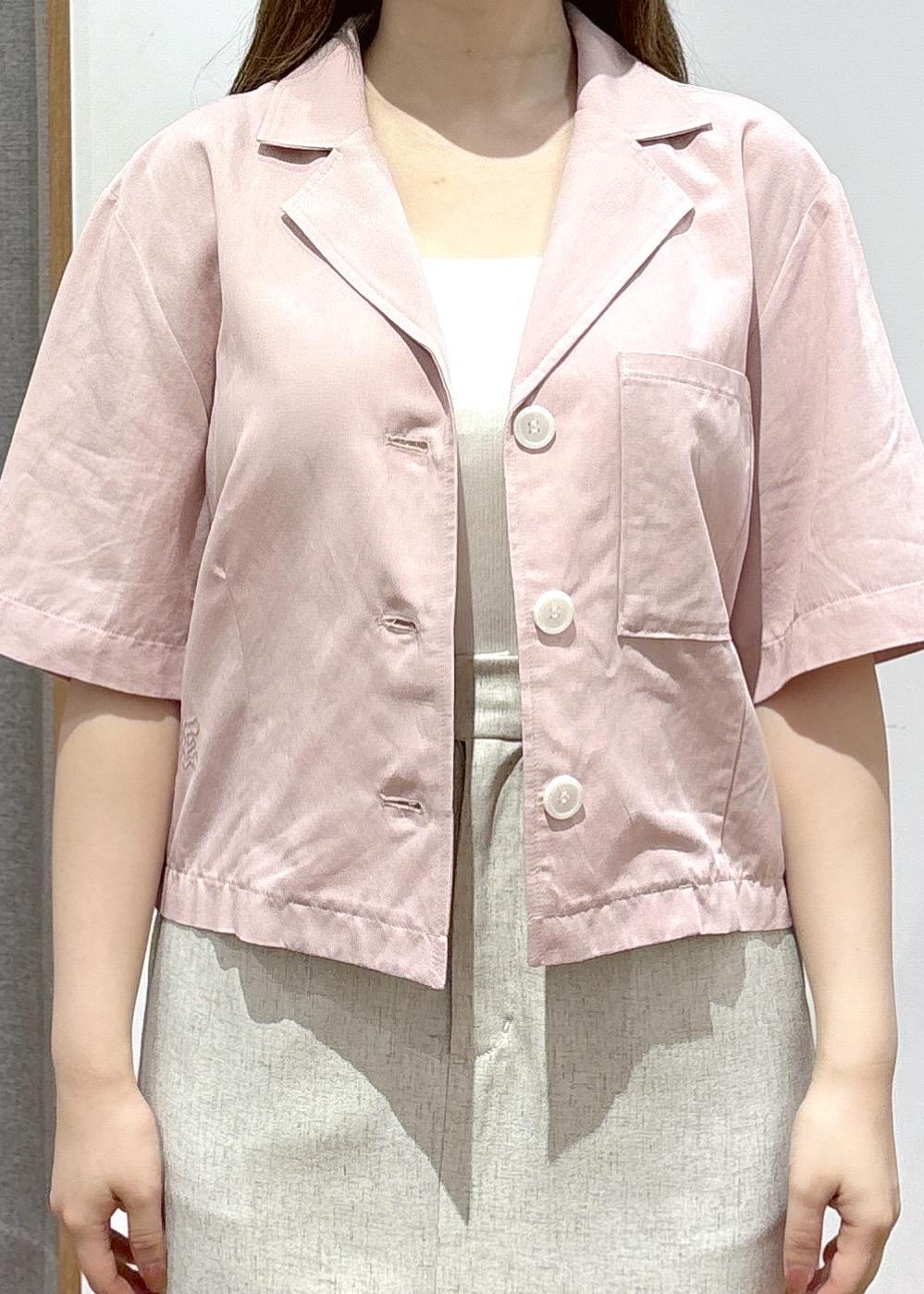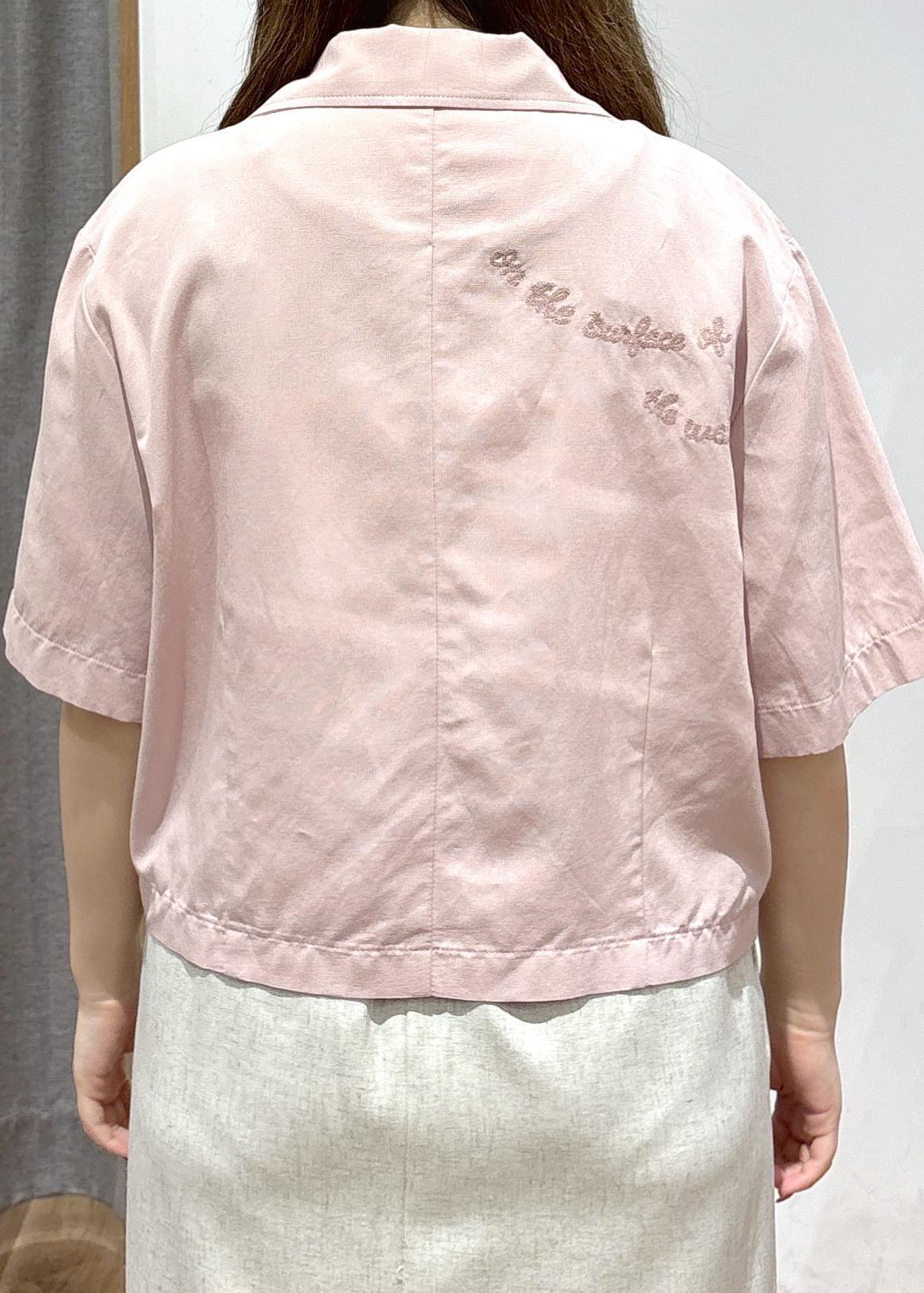 アウトレットVIS【Chocomoo】VIS別注バック刺繍クロップドハーフスリーブシャツピンク / F¥3,953レビュー【着用感】