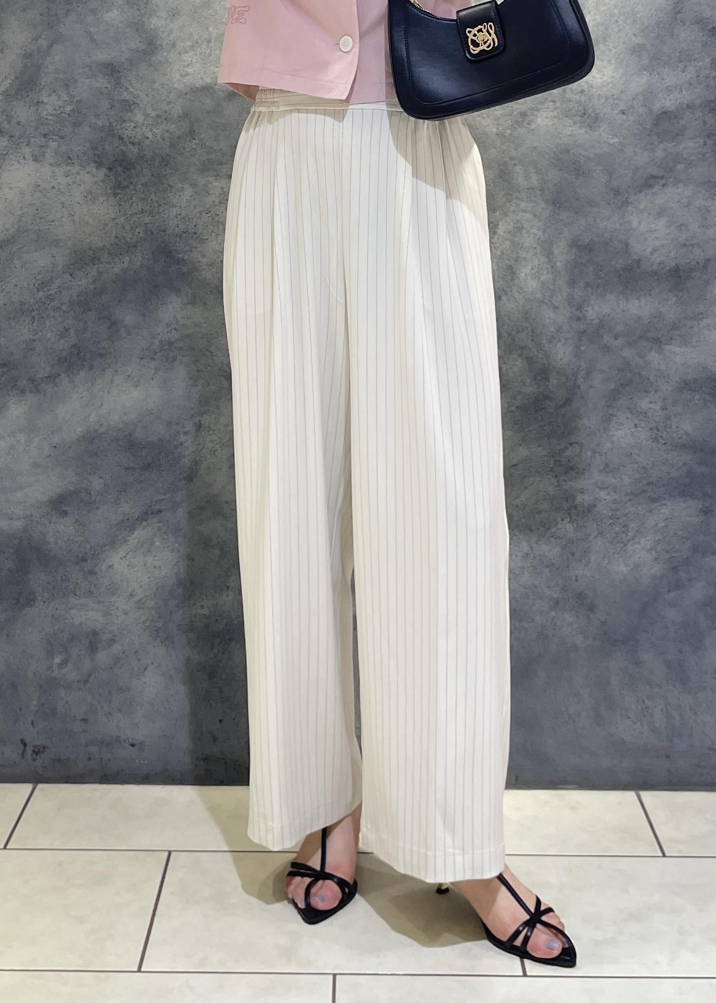 アウトレットVIS【接触冷感/UVケア】ピンストライプリラックスワイドパンツキナリ / M¥2,636レビューウエストが全てゴム使用で着やすいです!