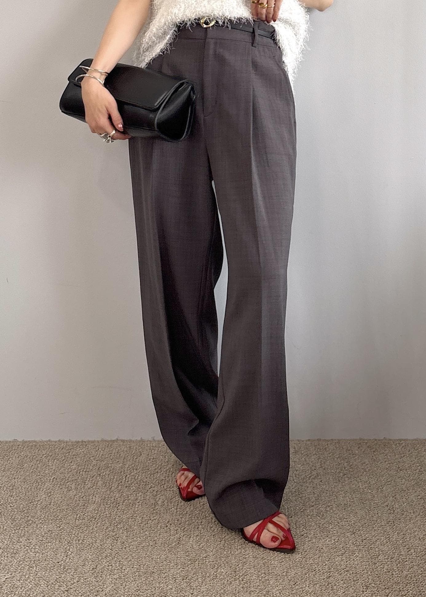 大人気の美easyシリーズ♪麻調素材でさらっとしていてとても着やすい。シワになりにくいのも嬉しいポイント◎今季は腰まわりがワンタックになり、センタープレスがよりスタイル良く見せてくれます。サンプルの為154cmでMサイズを着用、かなりゆるっとしたシルエットで長めだったので、普段はSSサイズかSサイズだと引きずらないので選びます。