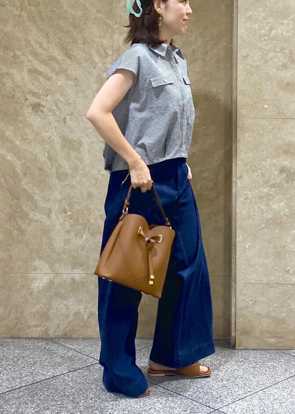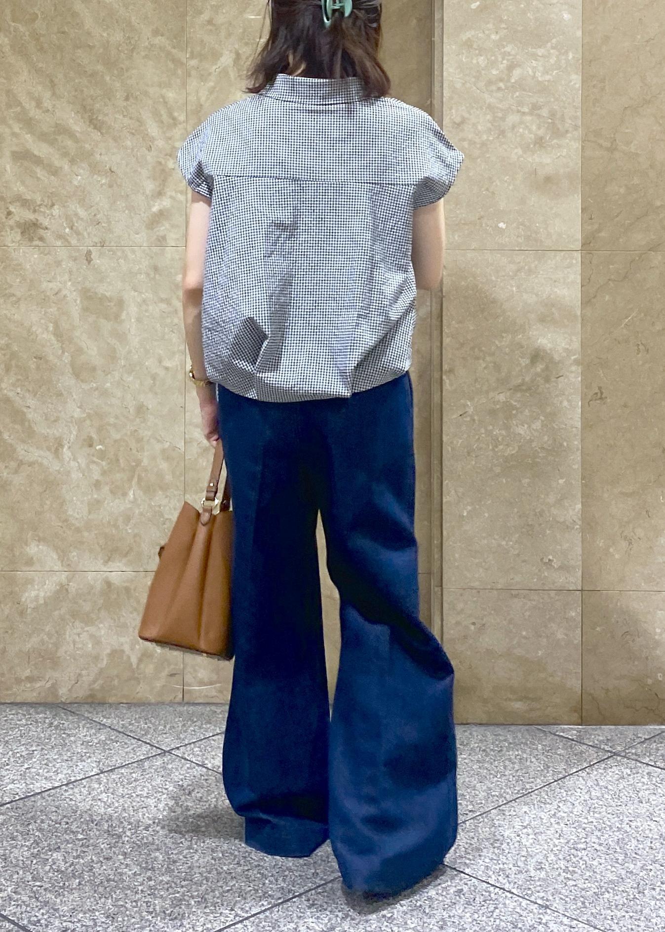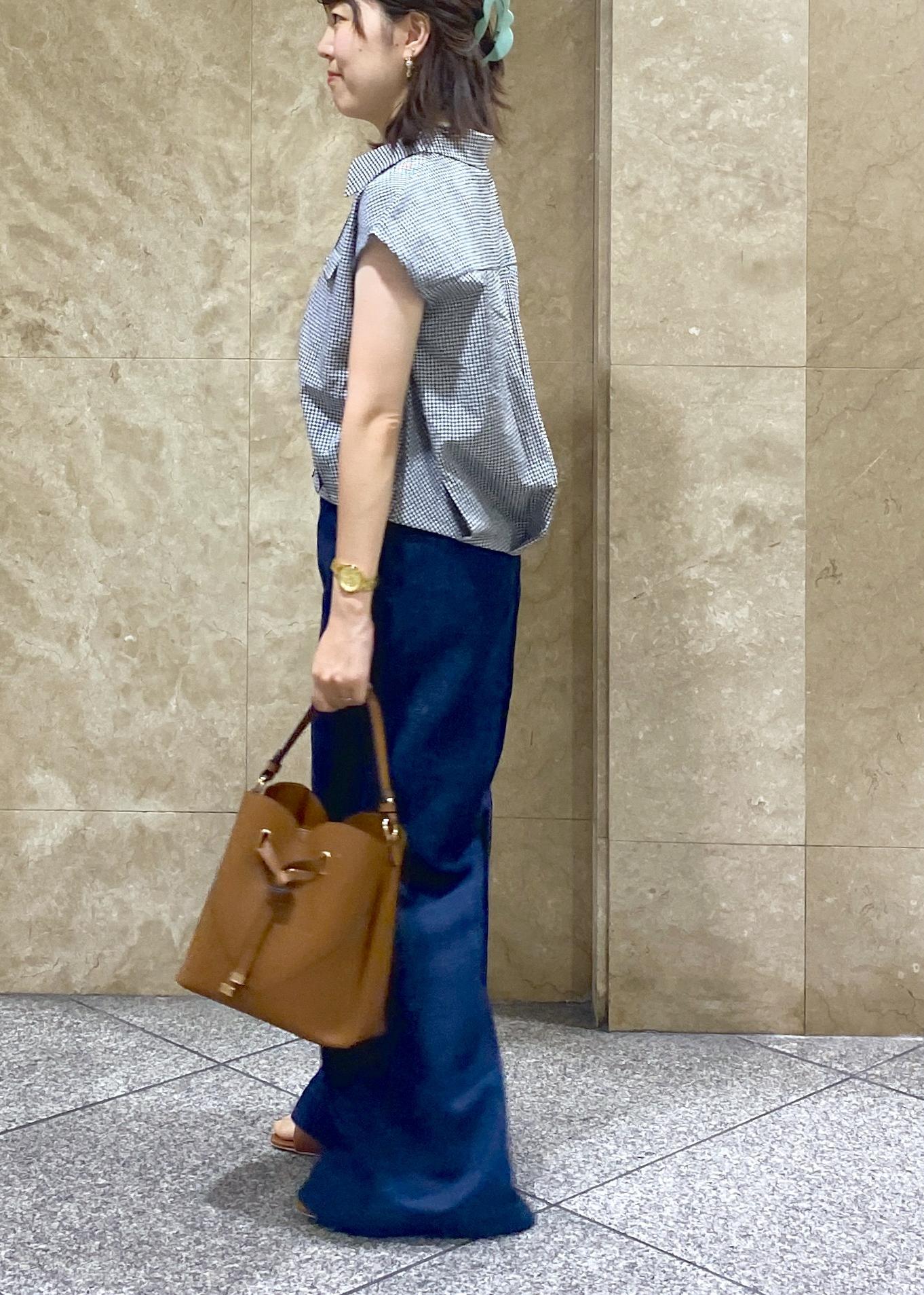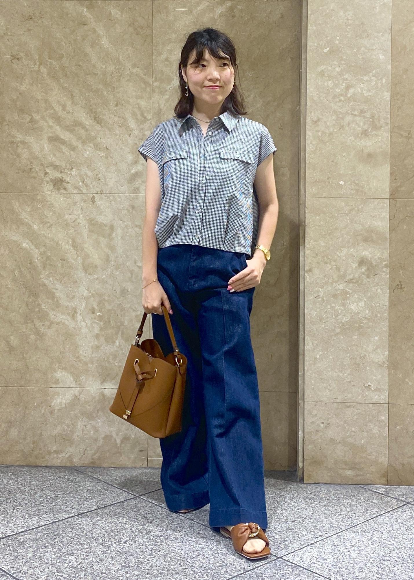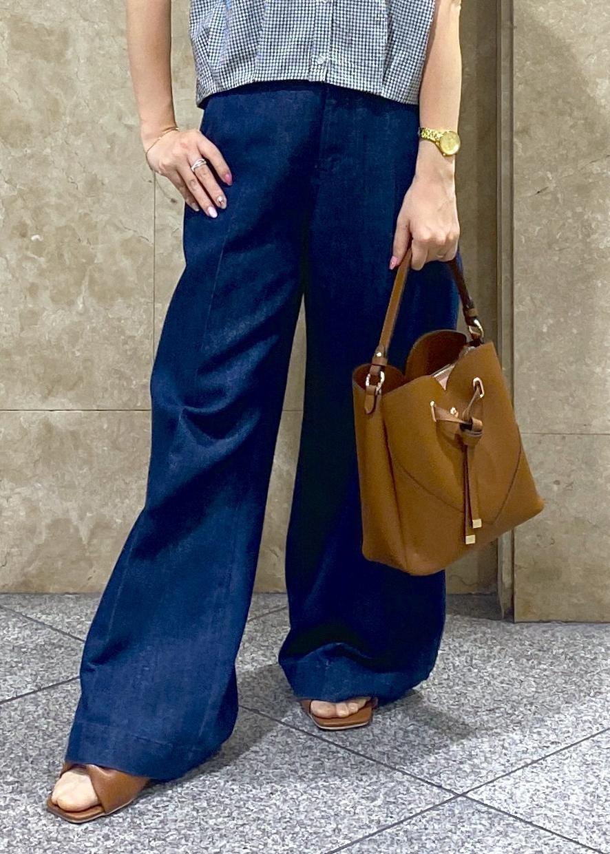 ぺたんこのサンダルを履いているので低身長さんだとヒールや厚底スニーカーを履くのがオススメです!柔らかい素材のデニムでとても履きやすかったです!裾が少し広がってるので脚長効果も◎