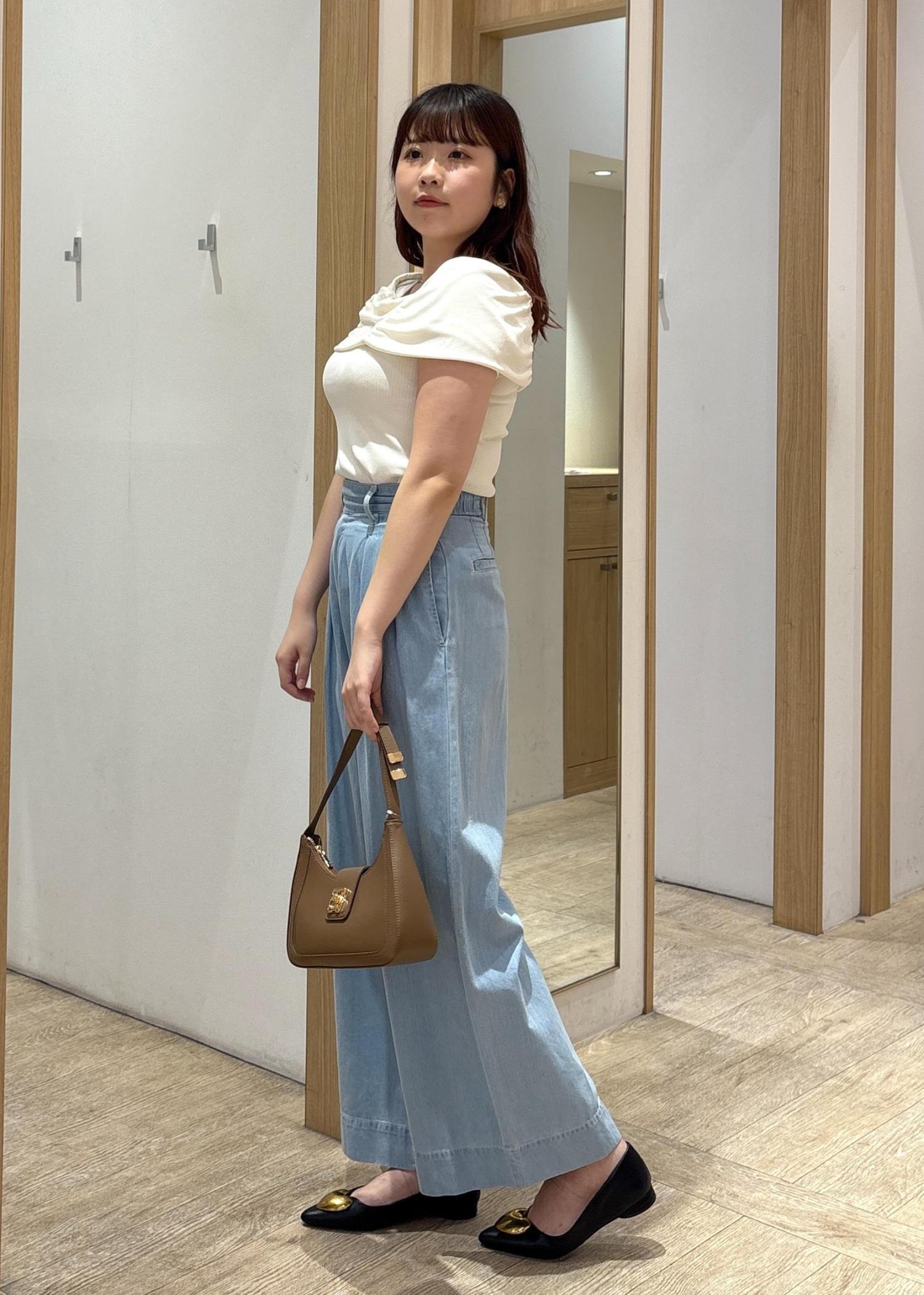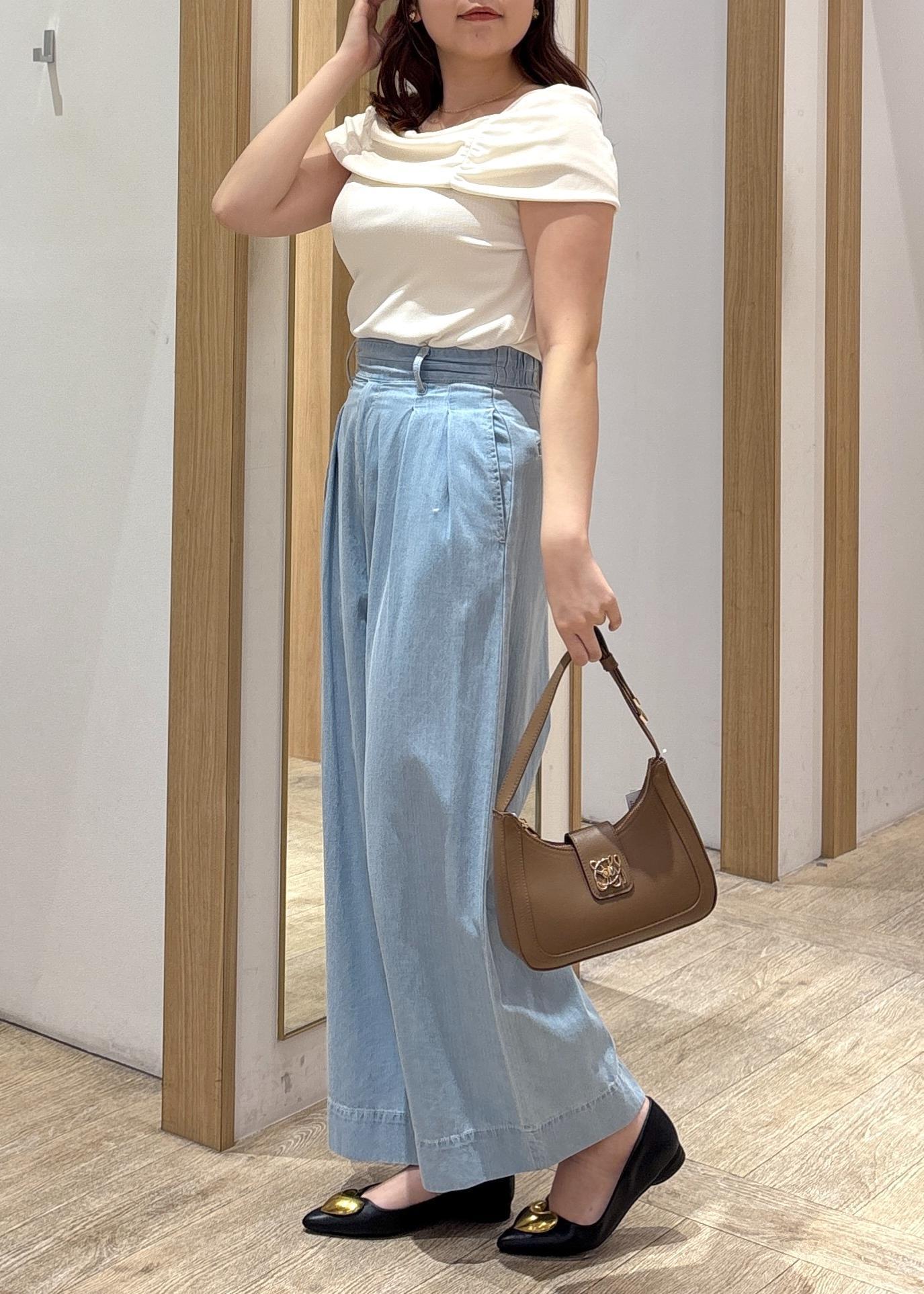 シンプルながらも計算されたバランスで、オンにもオフにも使える夏の好印象スタイルに仕上がっています♪