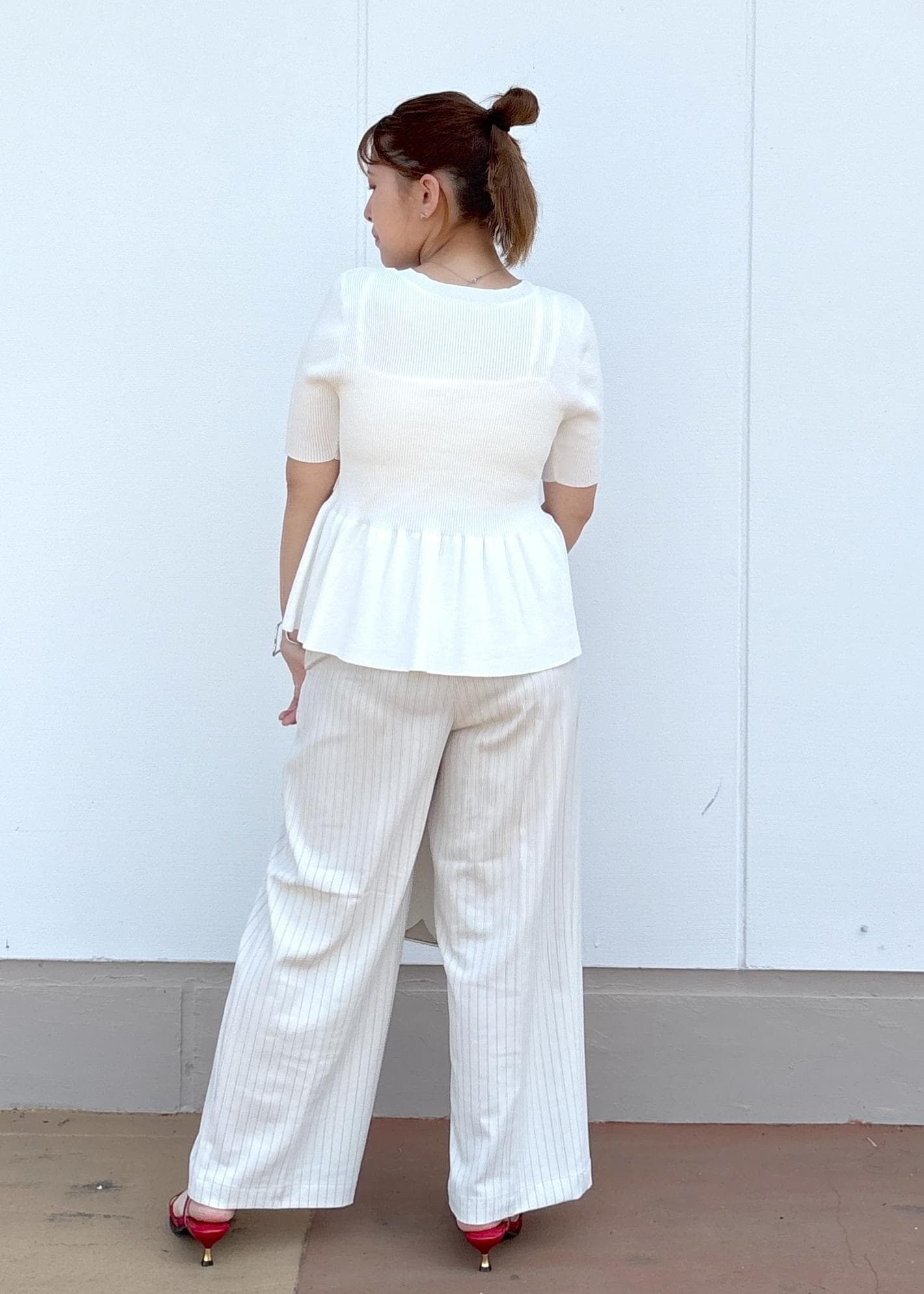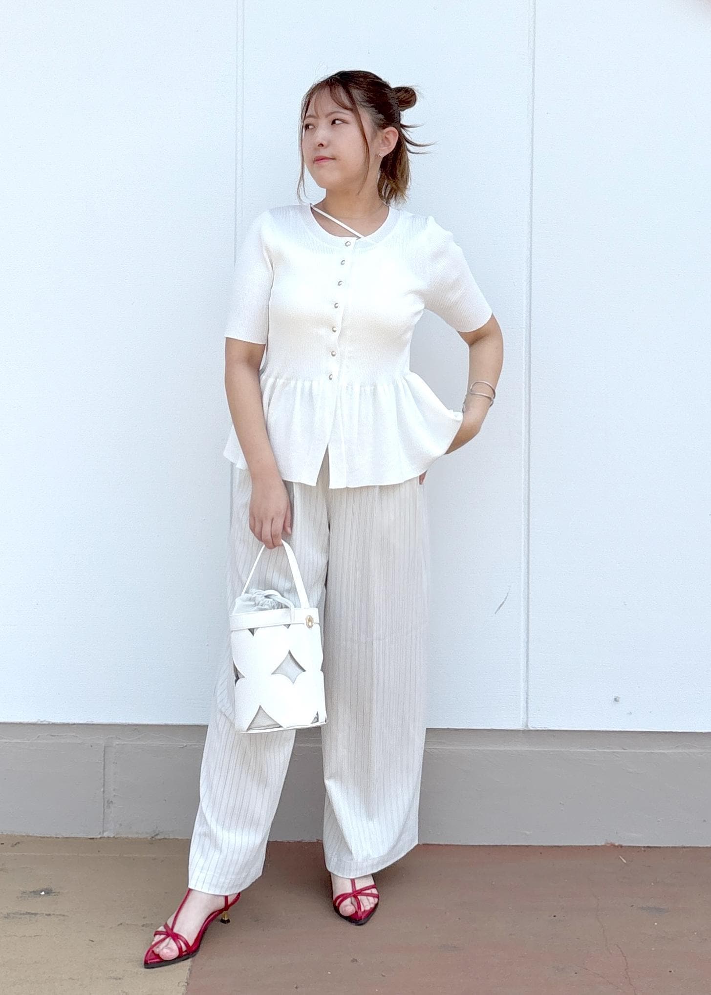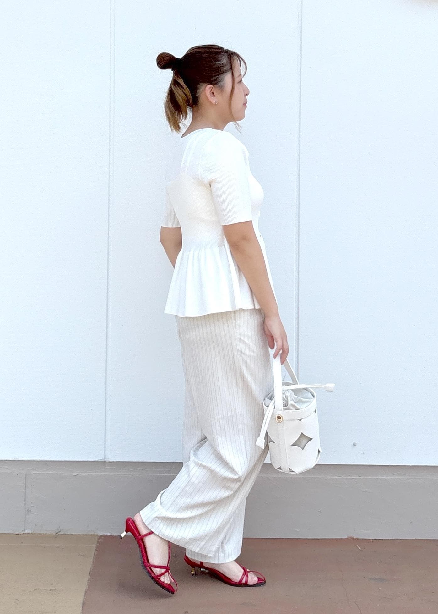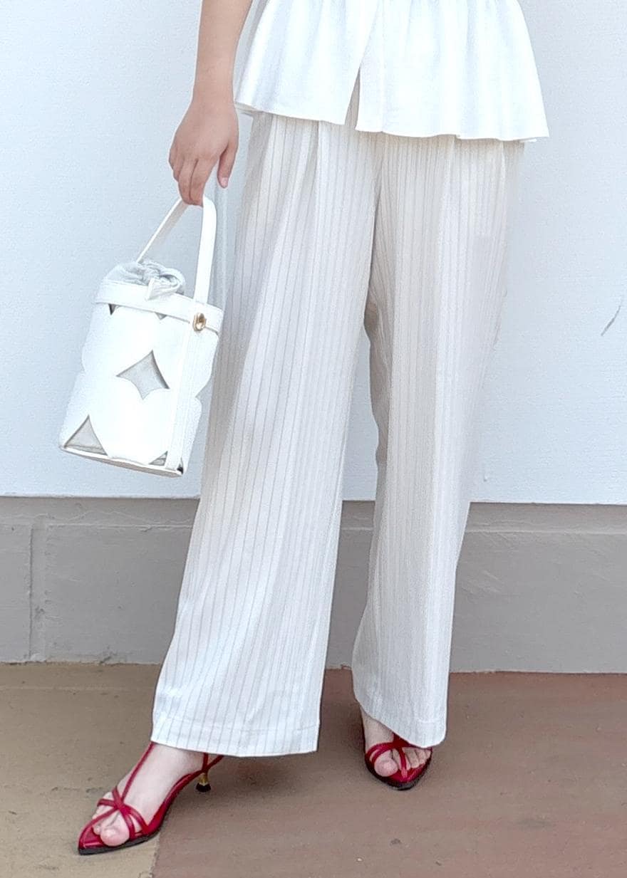 アウトレットVIS【接触冷感/UVケア】ピンストライプリラックスワイドパンツキナリ / S¥2,636レビュー153cmでSサイズ着用で足首が隠れるくらいの丈感です!