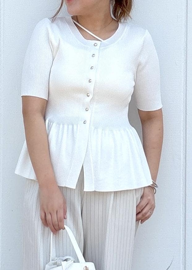アウトレットVIS【アンチピリング】ペプラムハーフスリーブニットカーディガンオフホワイト / F¥4,391レビューペプラムシルエットがきれいなカーディガン!