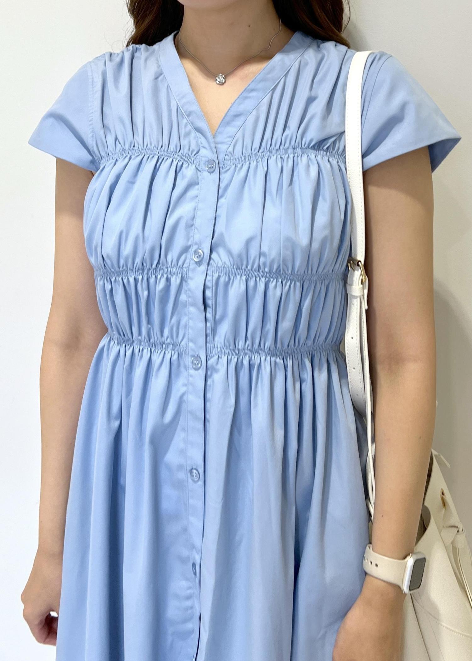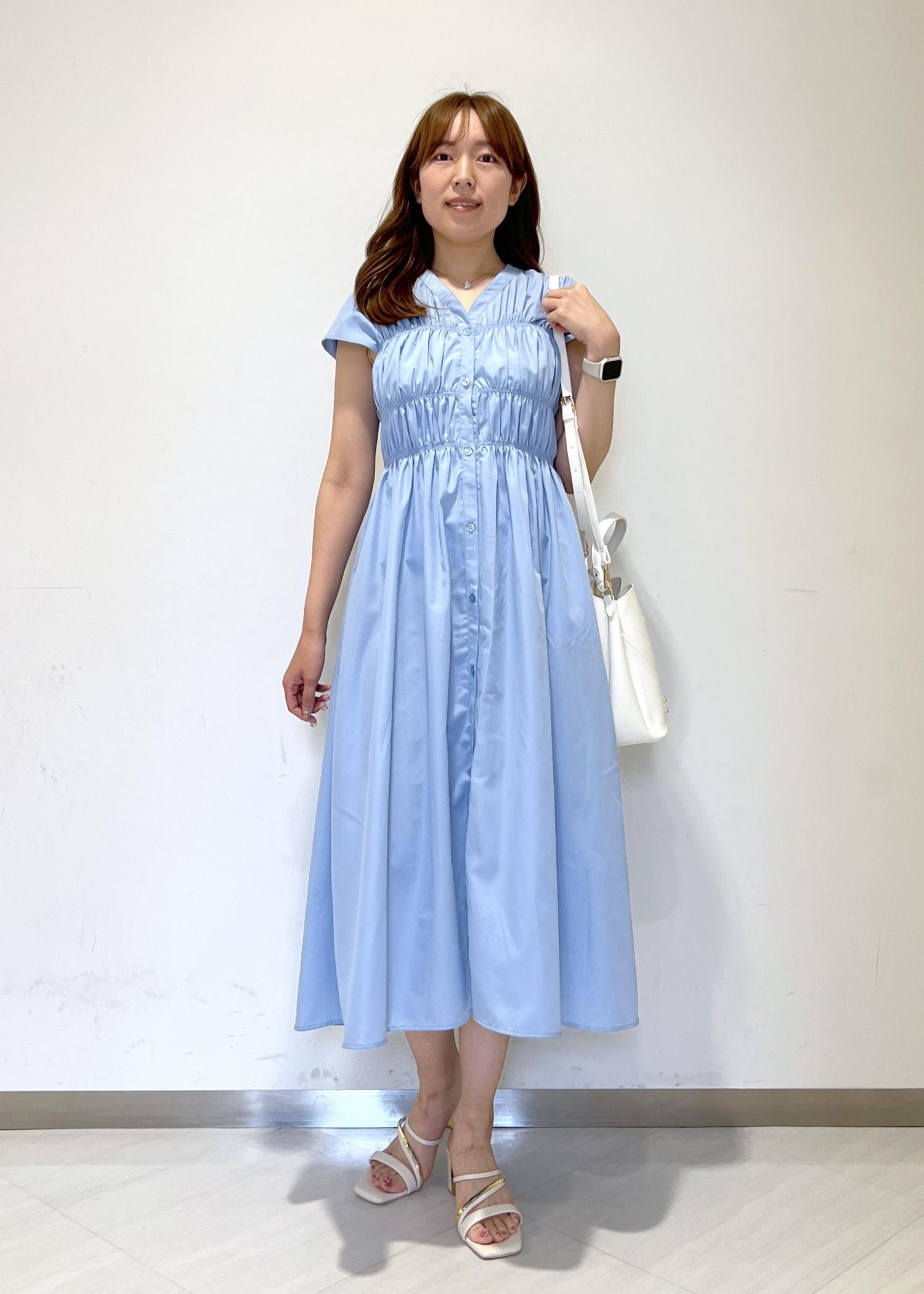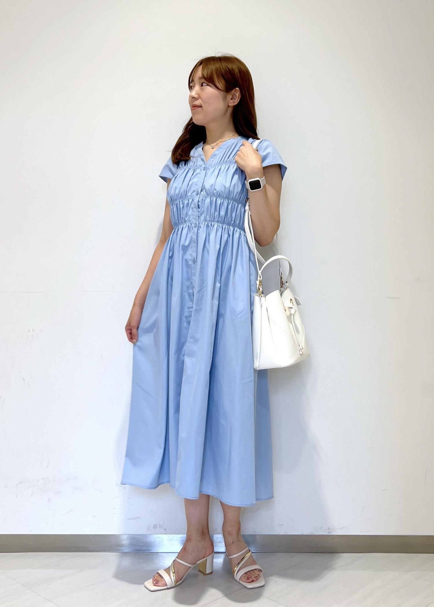 アウトレットVISシャーリングデザインワンピース【WEB限定サイズ】ブルー系 / F¥3,955レビューシャーリングデザインなので楽な着心地です!ボタンを外して羽織りとしても着回せます◎くるぶし上にくる丈感です。