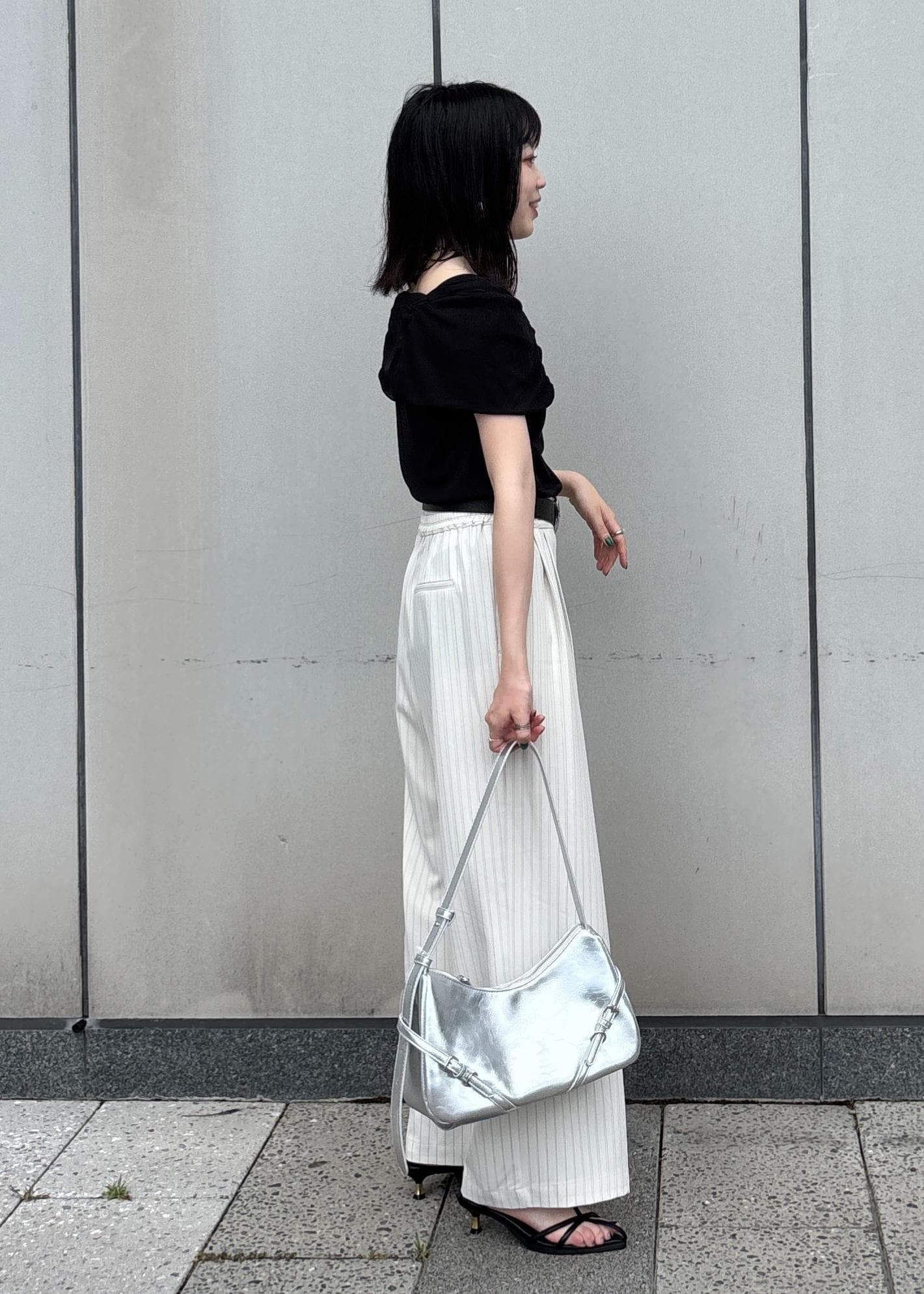 程よい肌見せと程よいぴったり感のあるトップスに、敢えてワイドパンツを合わせてカッコ良さもプラスしました◎