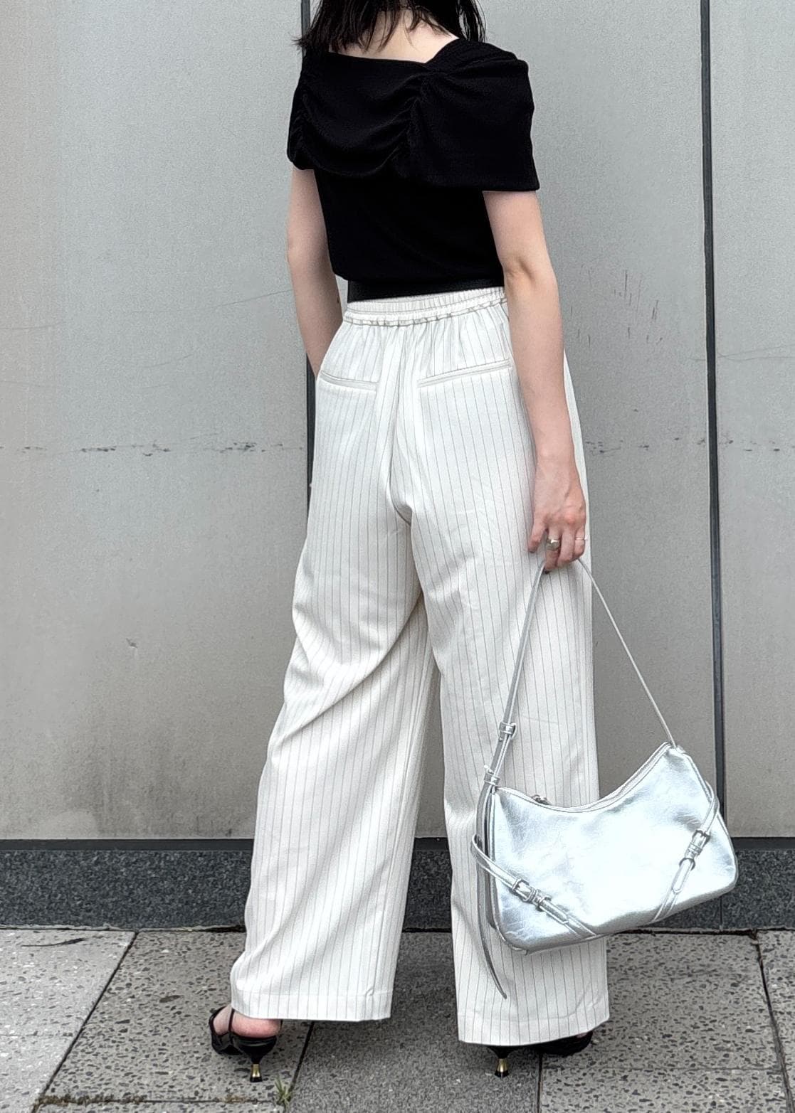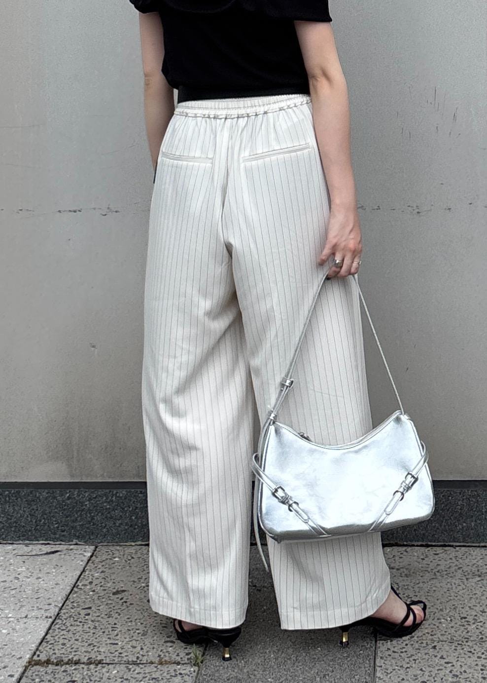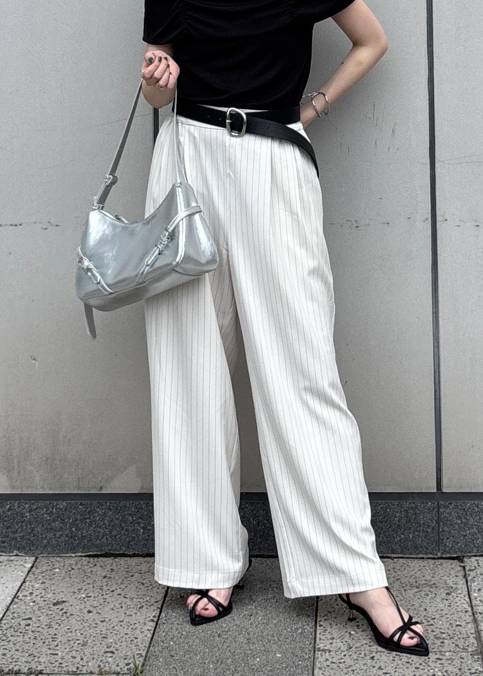 アウトレットVIS【接触冷感/UVケア】ピンストライプリラックスワイドパンツキナリ / S¥2,636レビューウエストはゴム×紐なので楽な履き心地◎