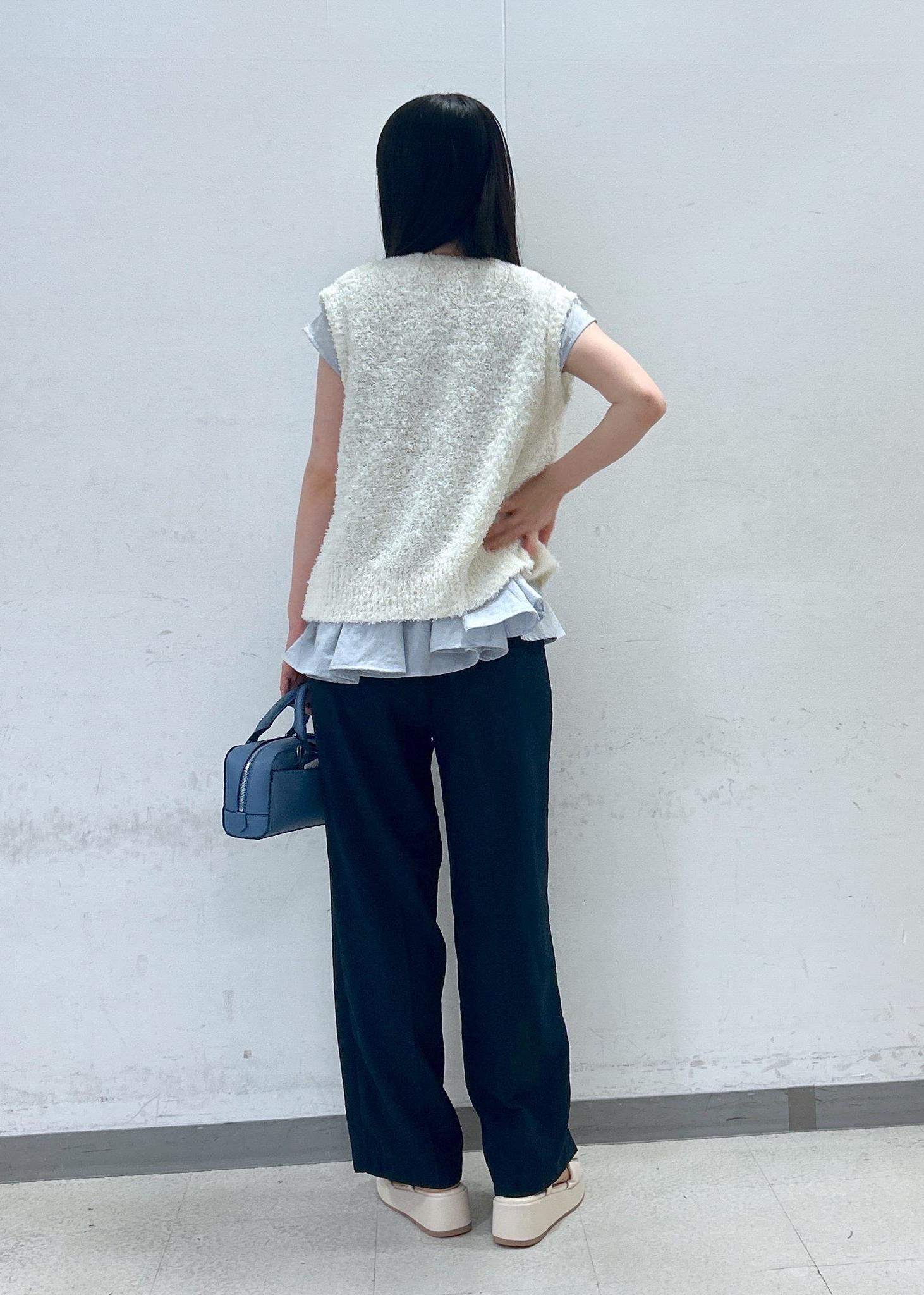 アウトレットVIS【洗える】テープヤーンニットベストオフホワイト / F¥4,391レビューふわふわした素材感ですが暑苦しくなく軽く着用していただけます。肩のラインが少しだけ落ちるデザインでカジュアルな着こなしができます。メタルのボタンがアクセントになって、全部閉じても全部開けても何個か開けてもオシャレです!