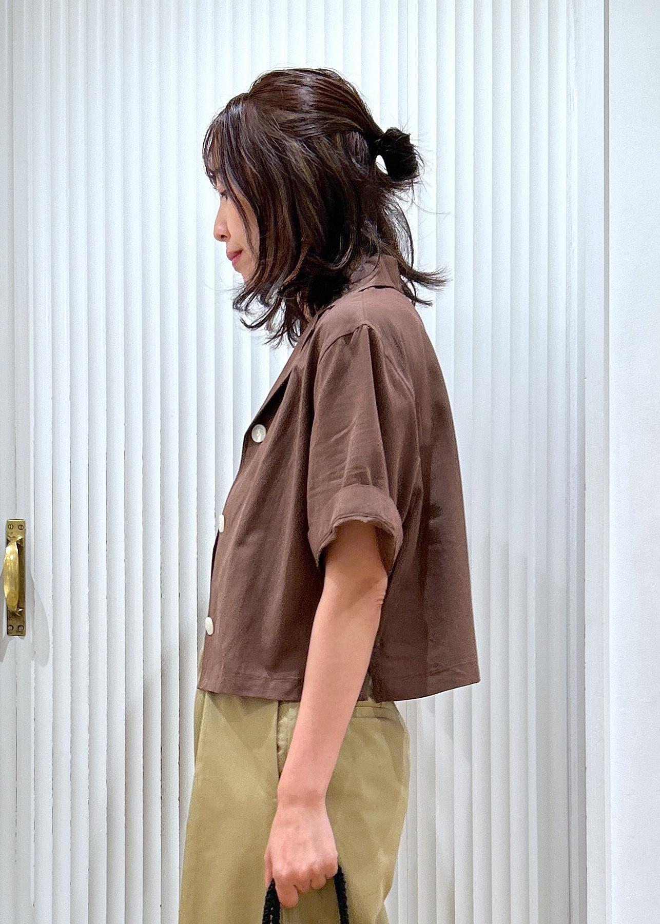 夏の羽織物としても、前を閉じてトップスとしてきても可愛いですよ。 -