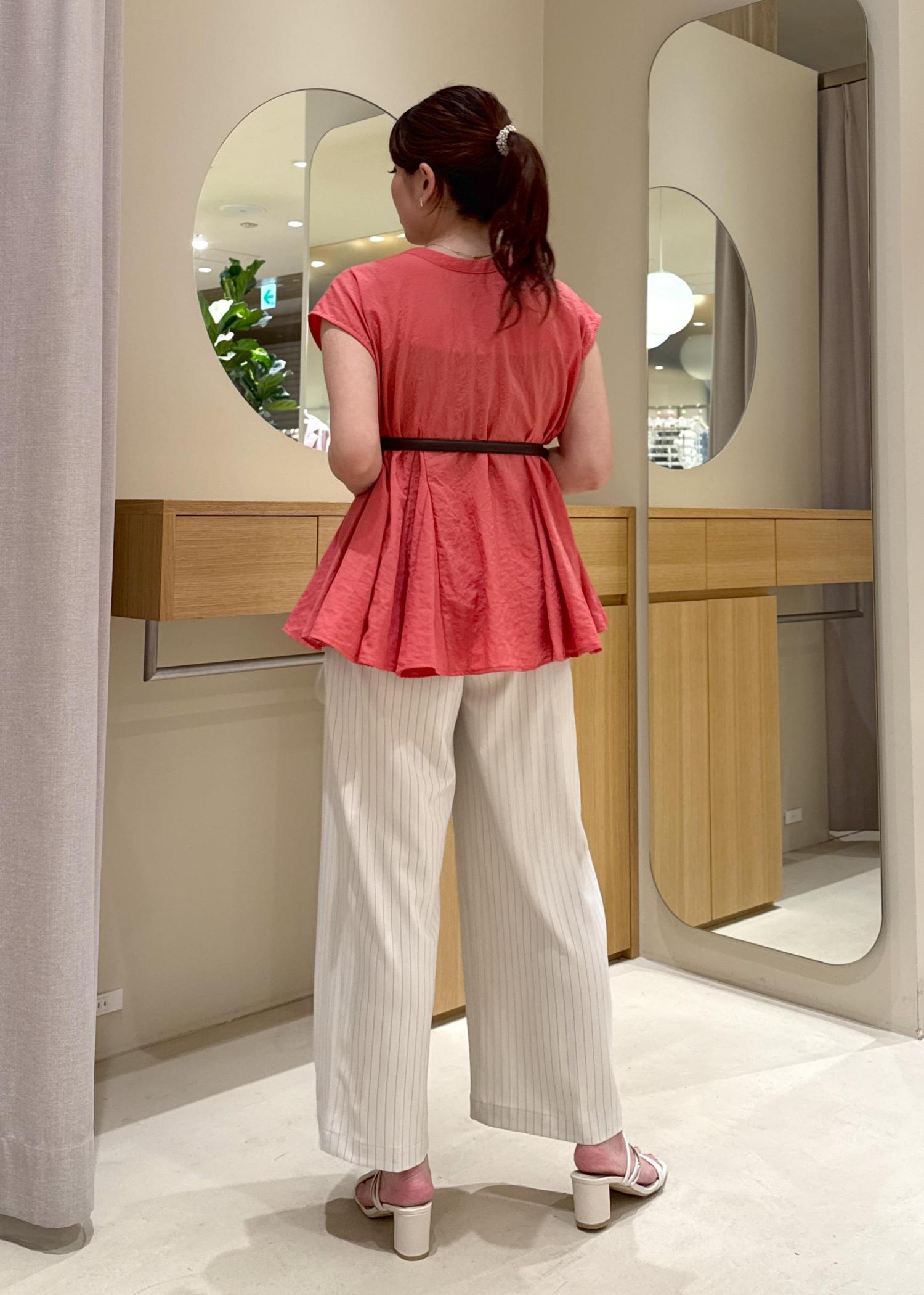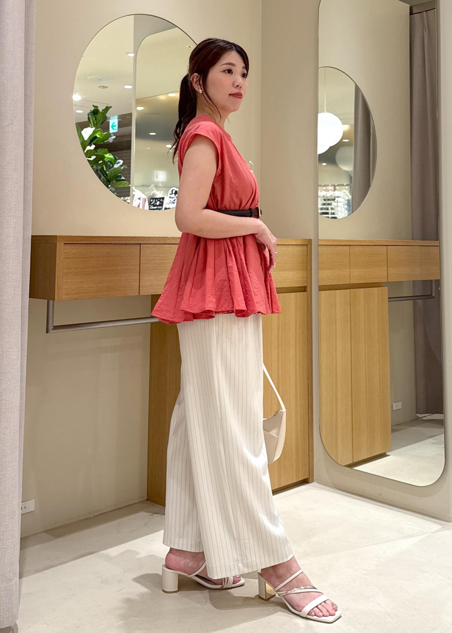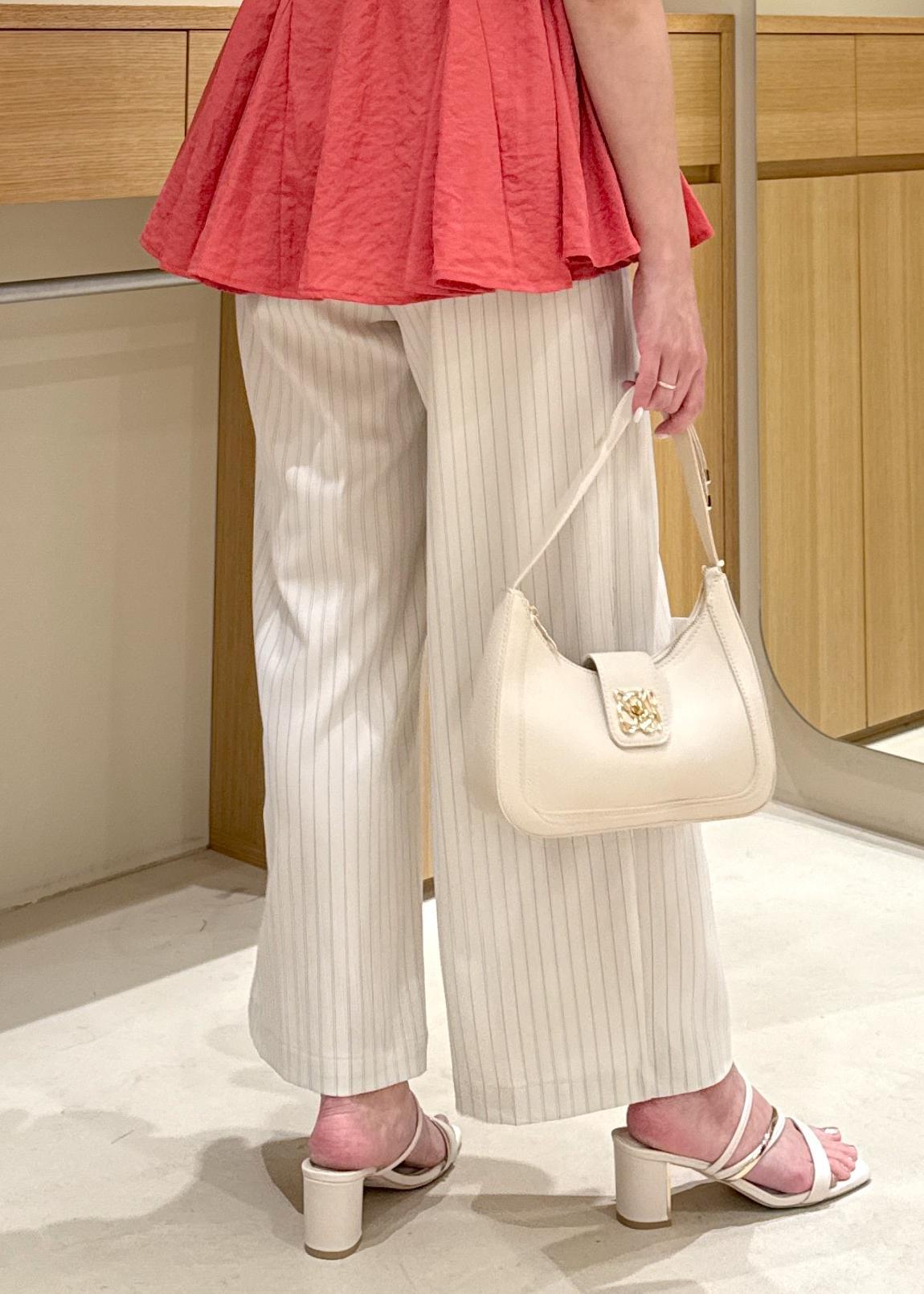 大人っぽさのあるストライプ柄のワイドパンツを合わせました◎