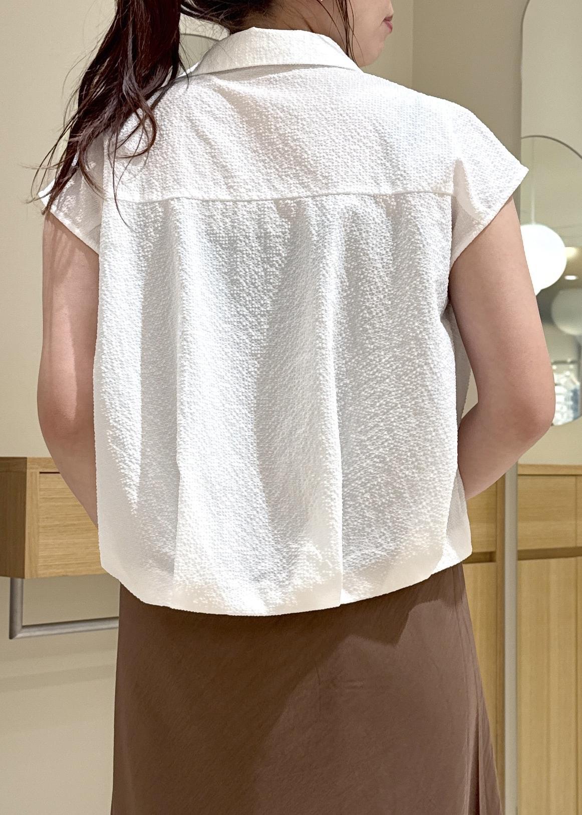 【UVケア/洗える】フレンチスリーブサッカーブラウス