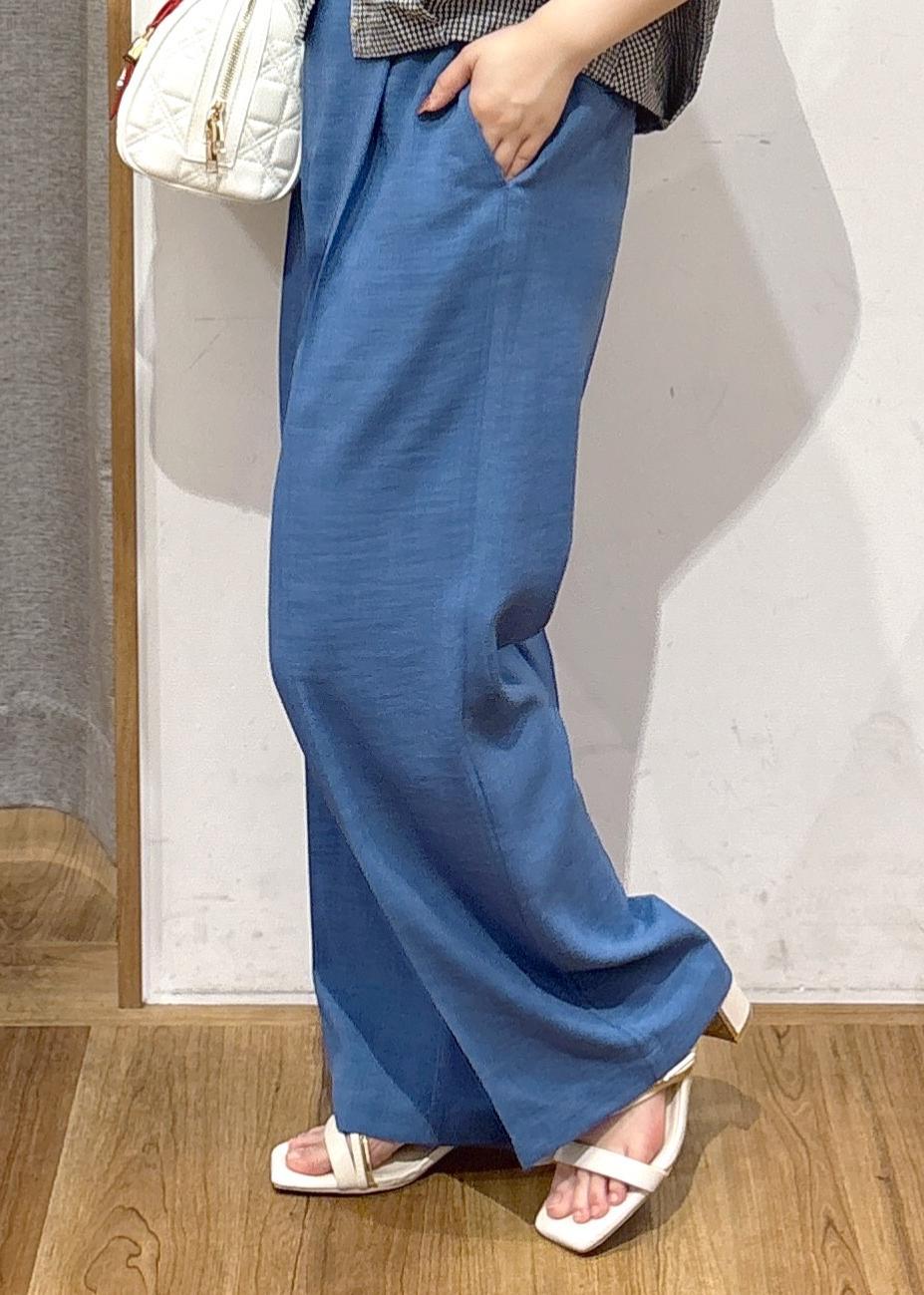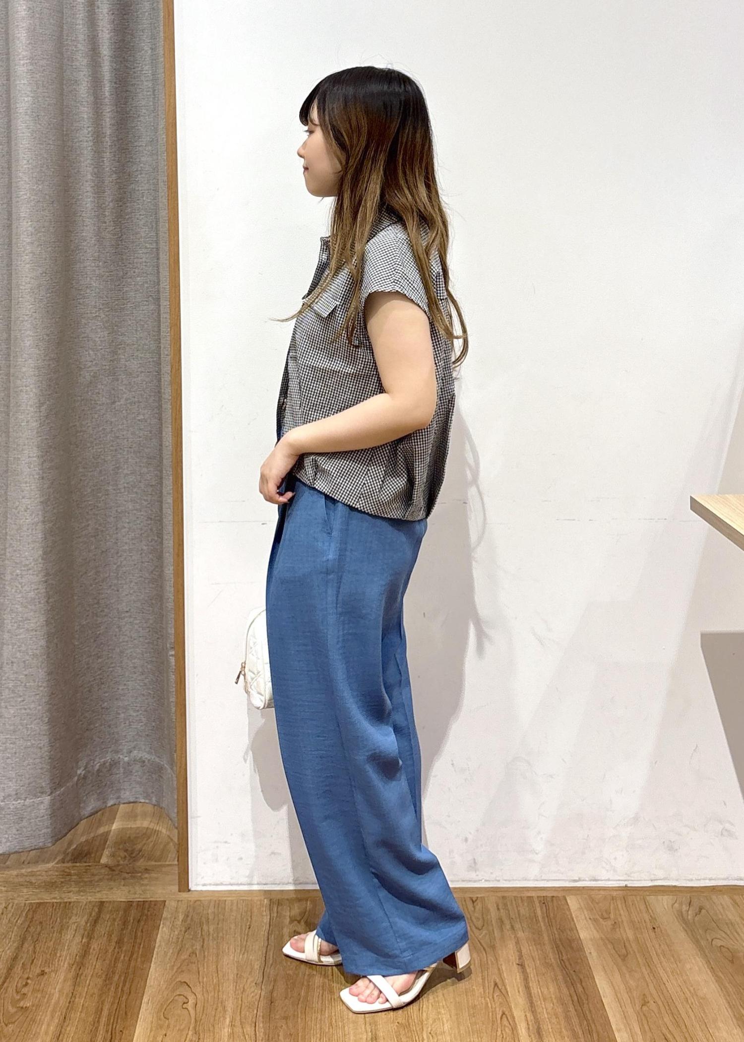 ずっと大人気の美easyワイドパンツと、今年らしいチェックがかわいい、サラサラ素材のブラウスを組み合わせてみました!
