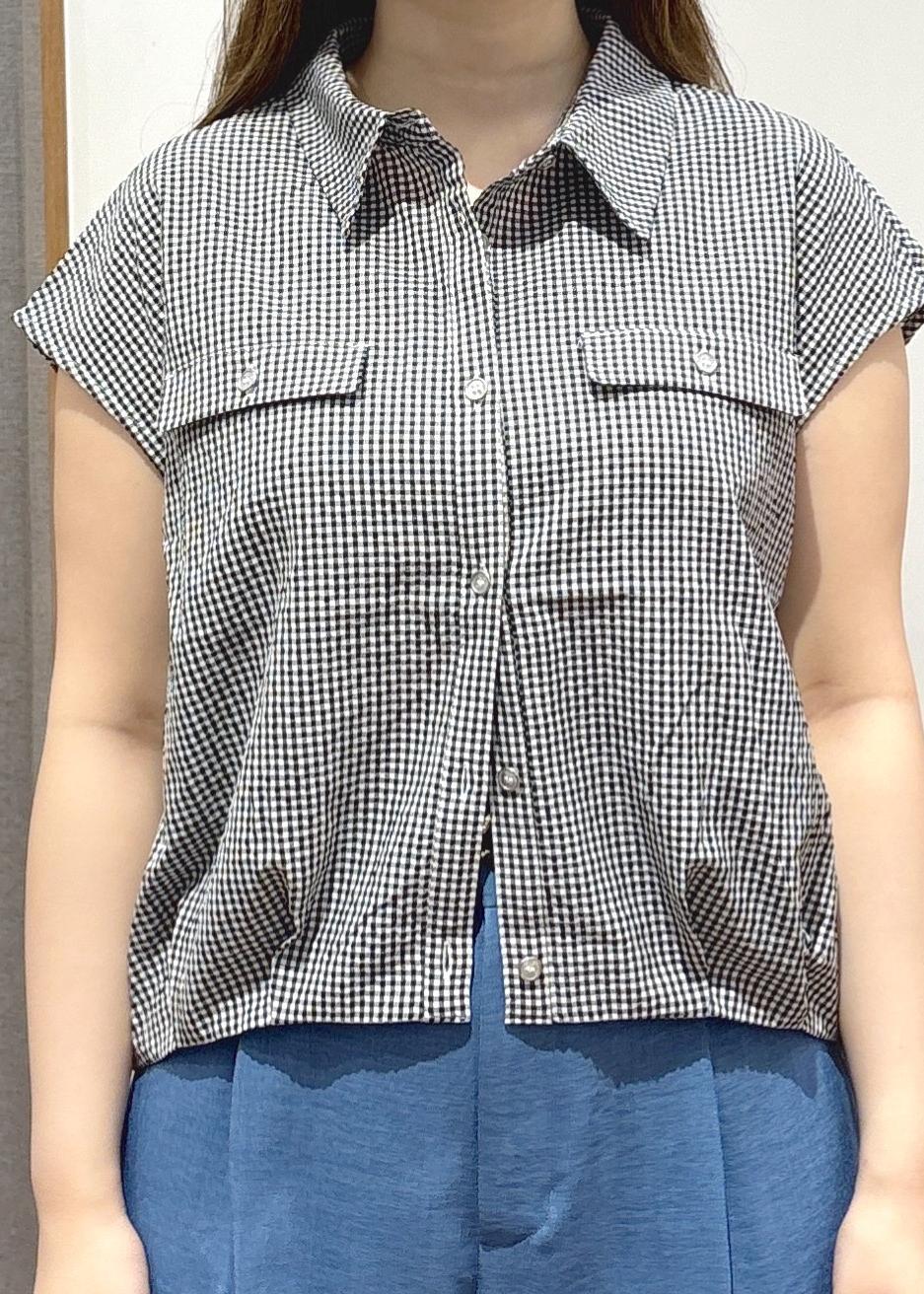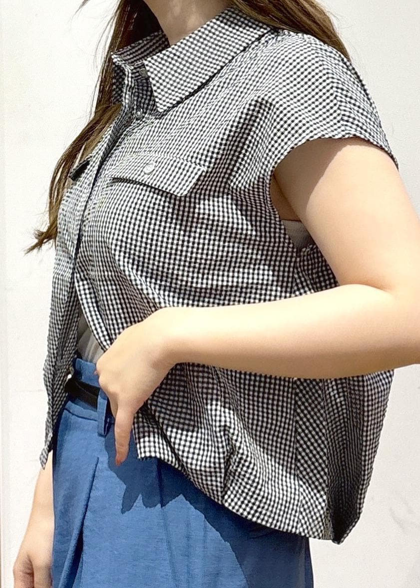 VIS【UVケア/洗える】フレンチスリーブサッカーブラウスブラック系 / F¥4,389レビュー【着用感】