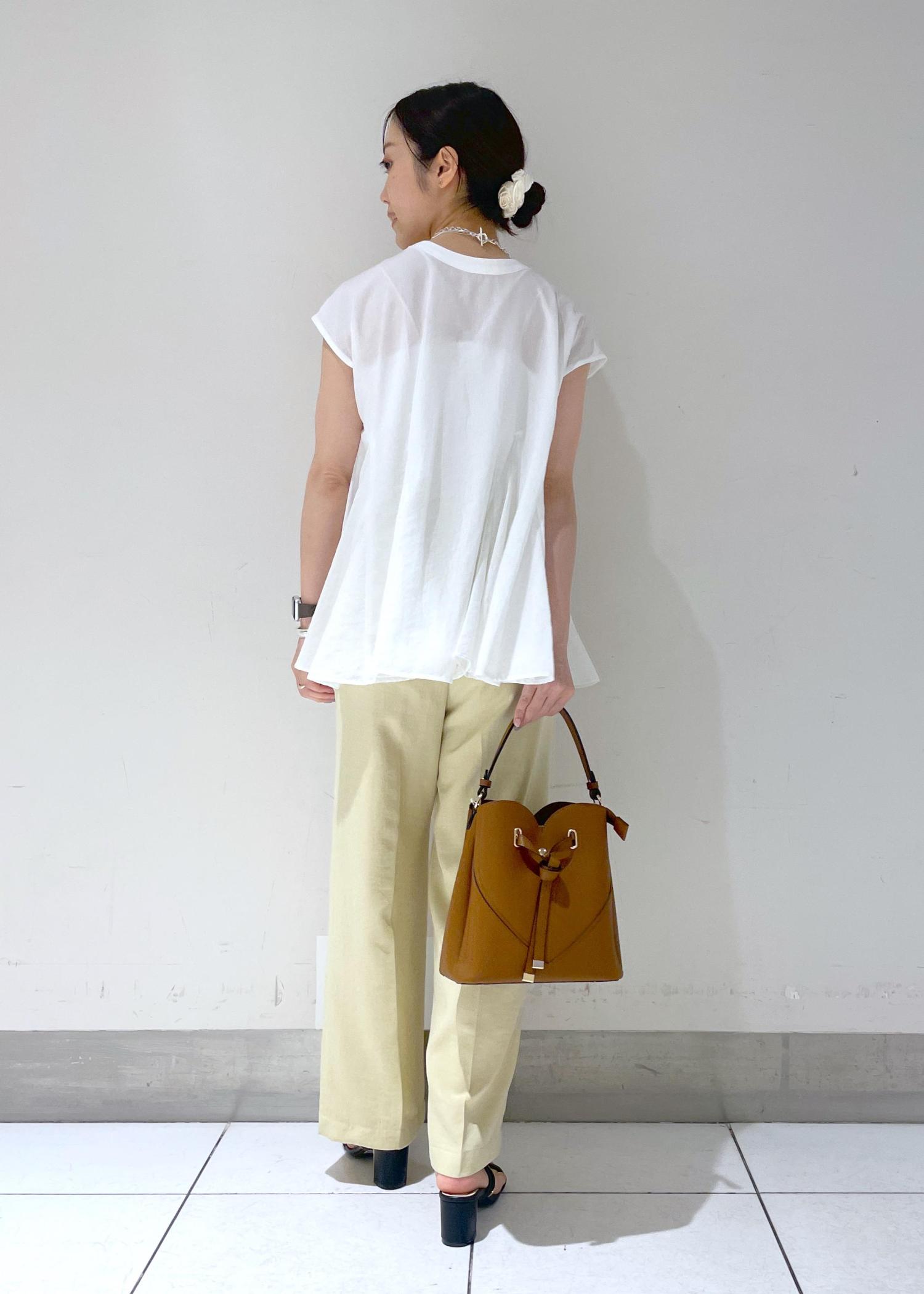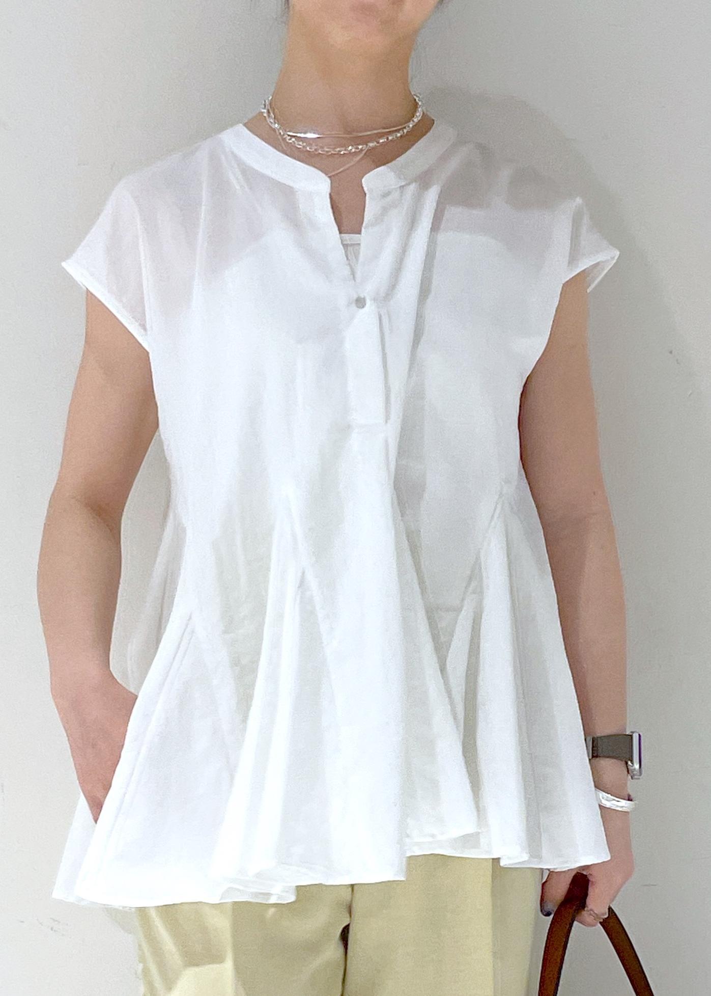 アウトレットVIS【防シワ/洗える】スキッパーフレアブラウスホワイト / F¥3,293レビュー身長156cmでおしりまでしっかりカバーしてくれます♪くびれの所で切り替えが入っているのでスタイルupするのも嬉しいです♪