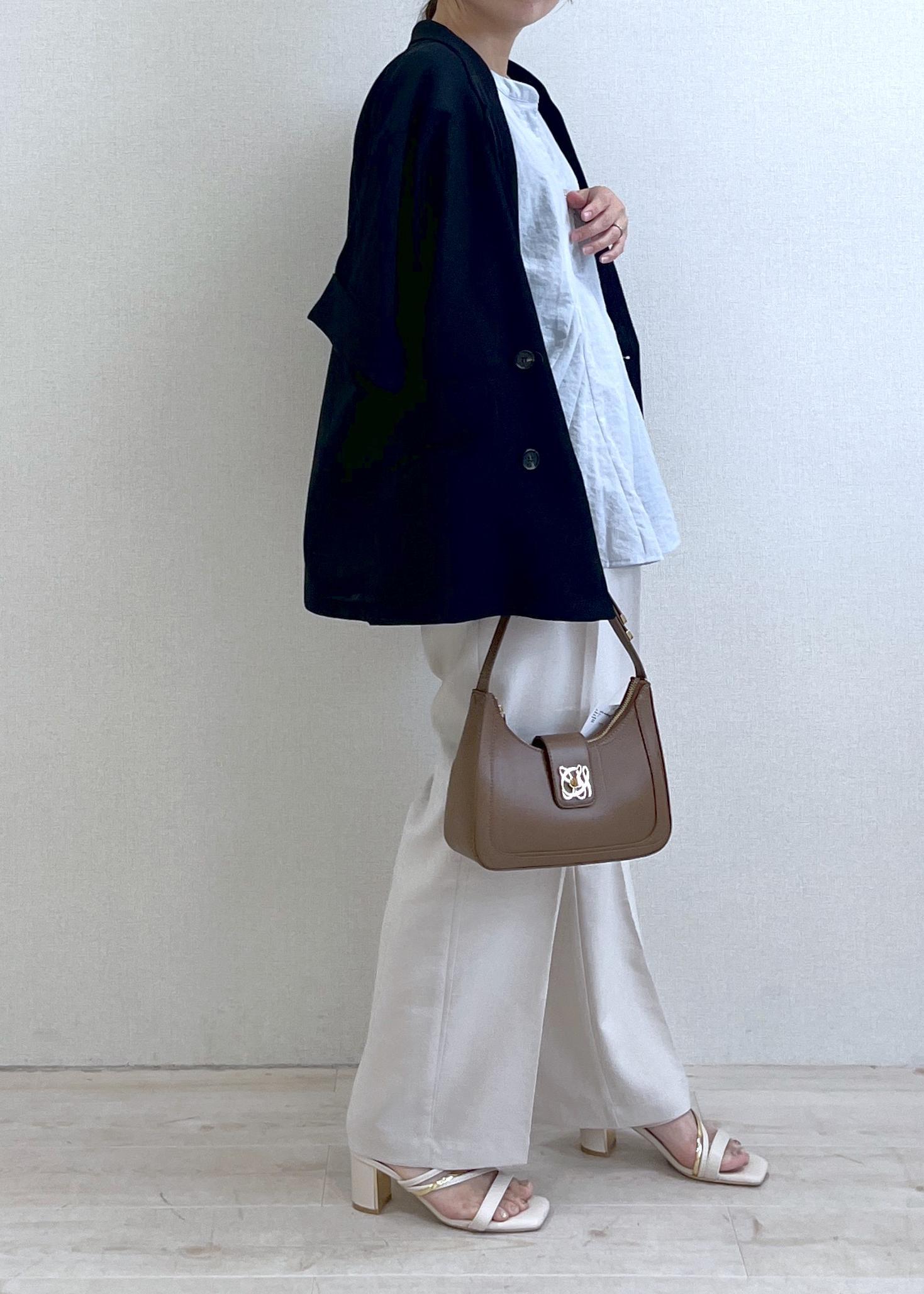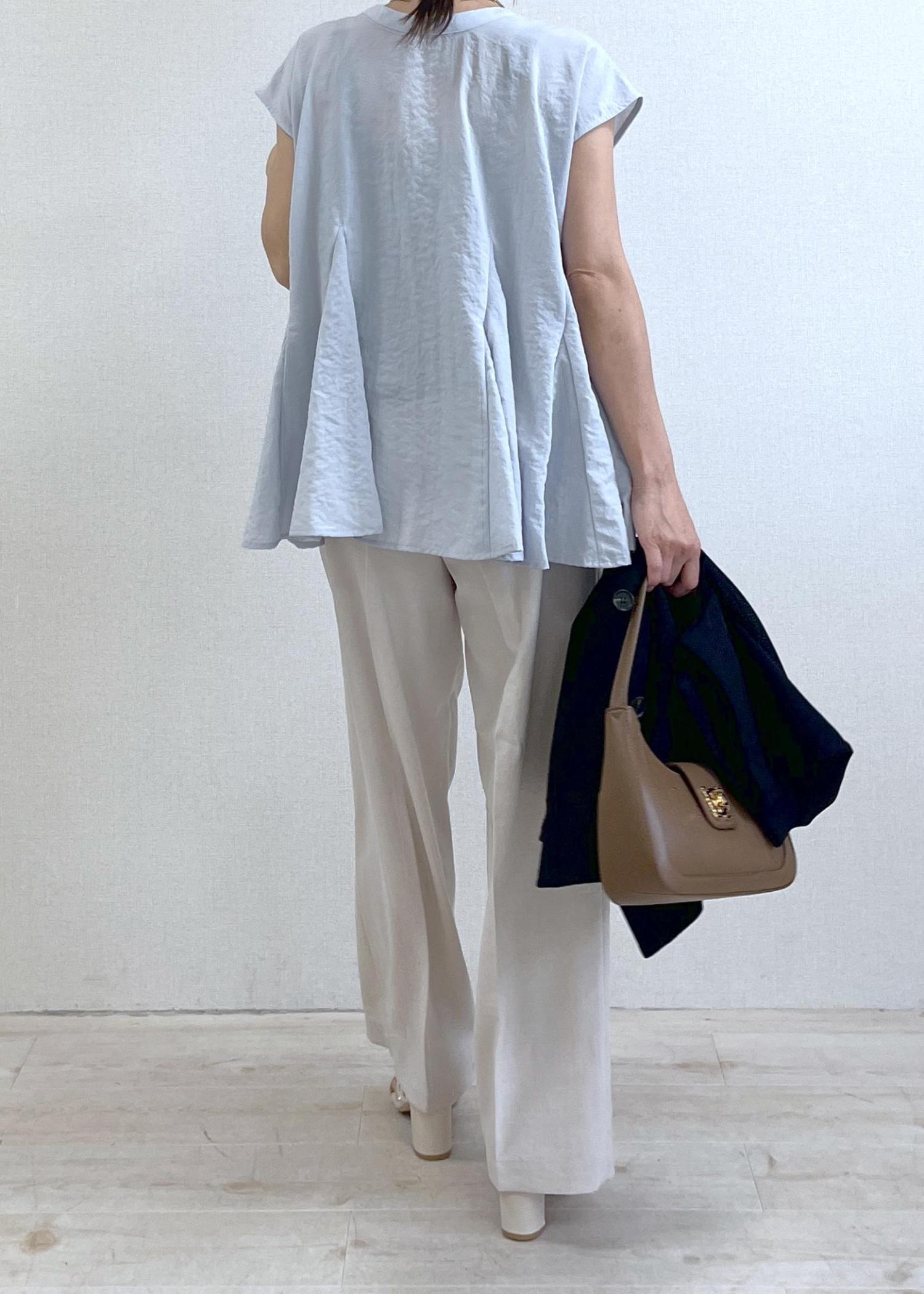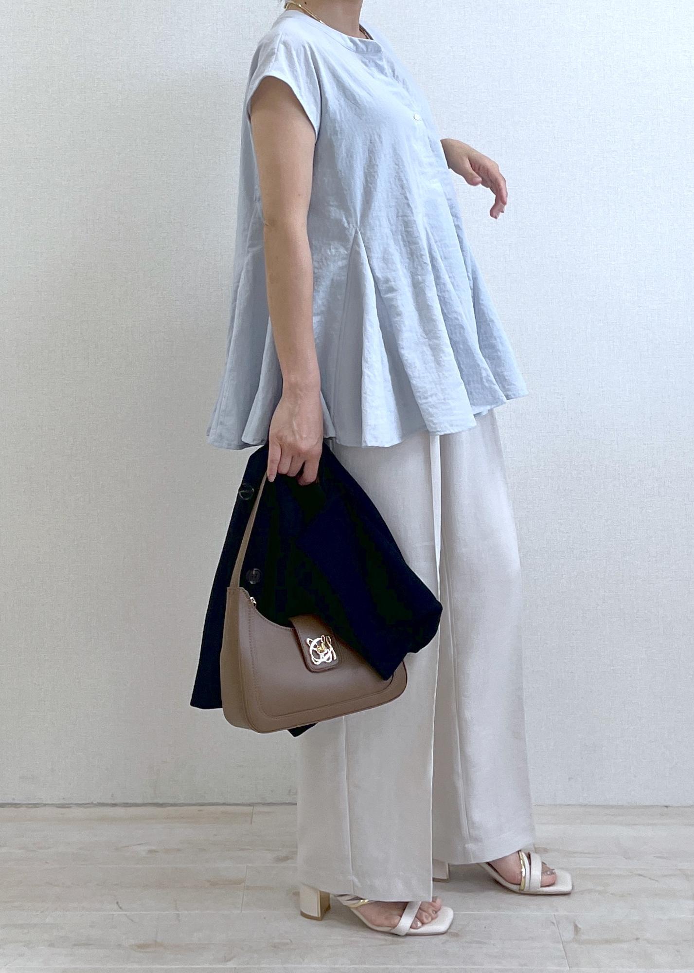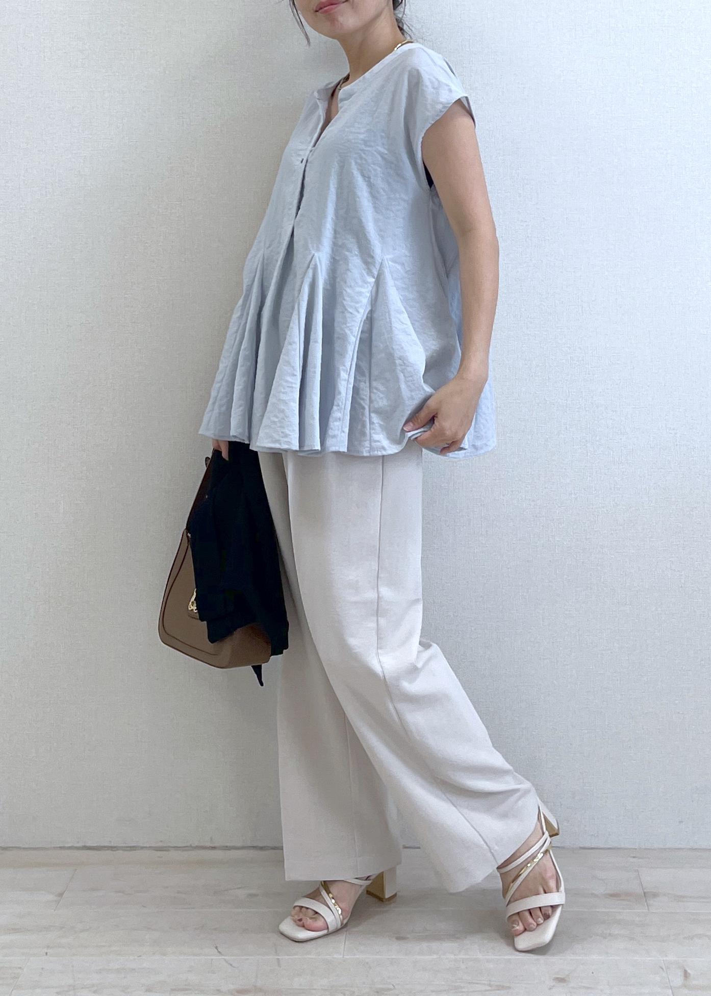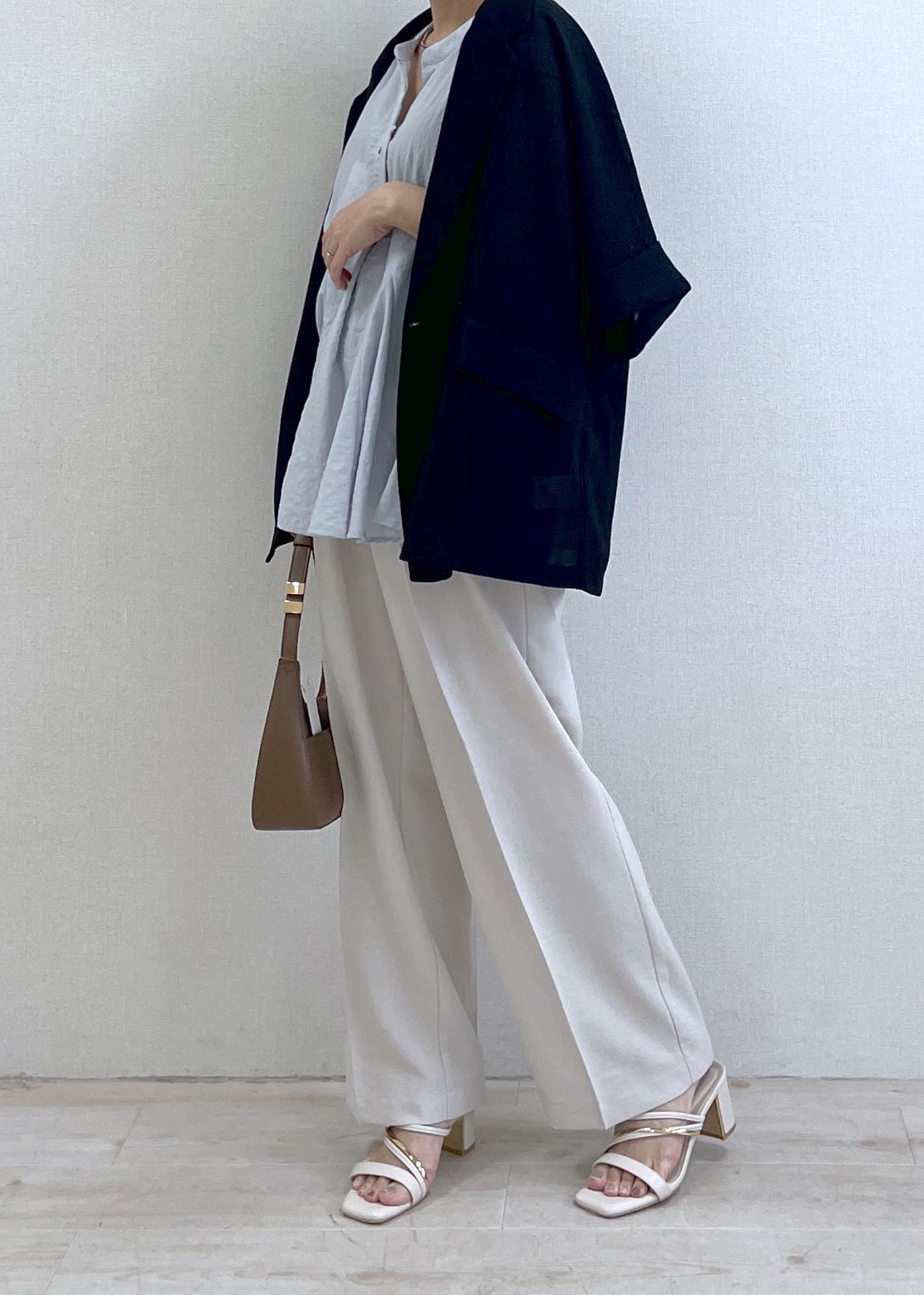 動くたびに揺れるシルエットが、涼しげで大人の余裕を感じさせる夏スタイル