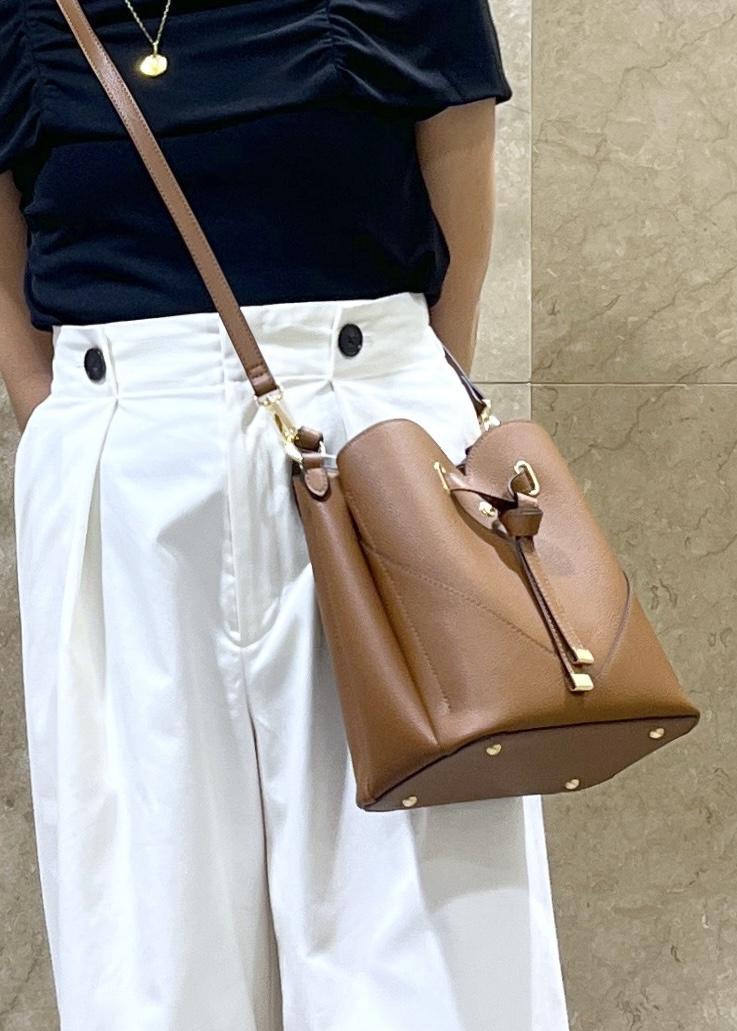 高級感ある素材感ですが、バッグ自体がとても軽く、斜め掛けで身軽に両手を空けることもできるので、様々なおでかけのシーンにマッチ!