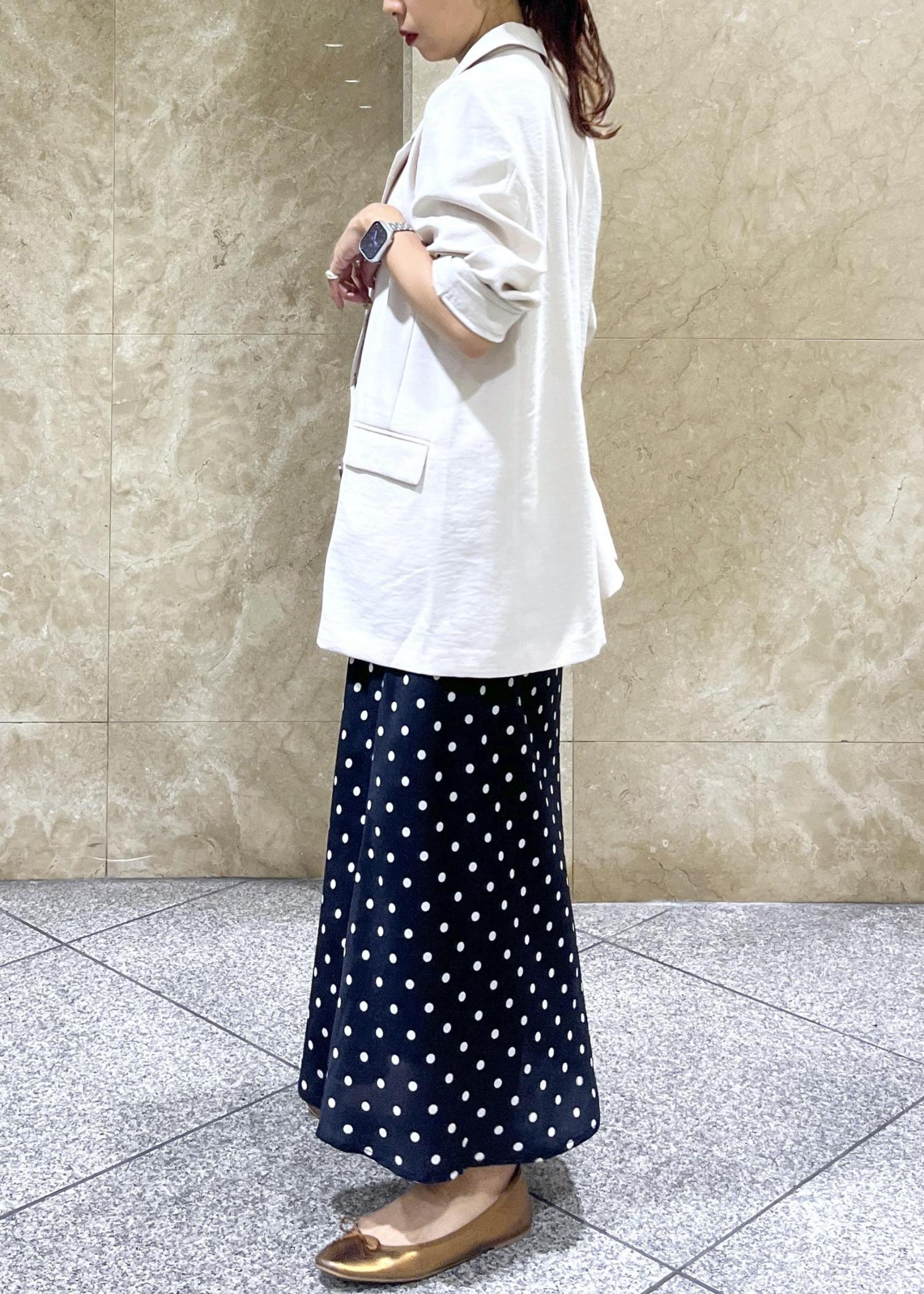 ツルンとした軽やかな素材感で、動くたび裾が揺れる感じも女っぽい。