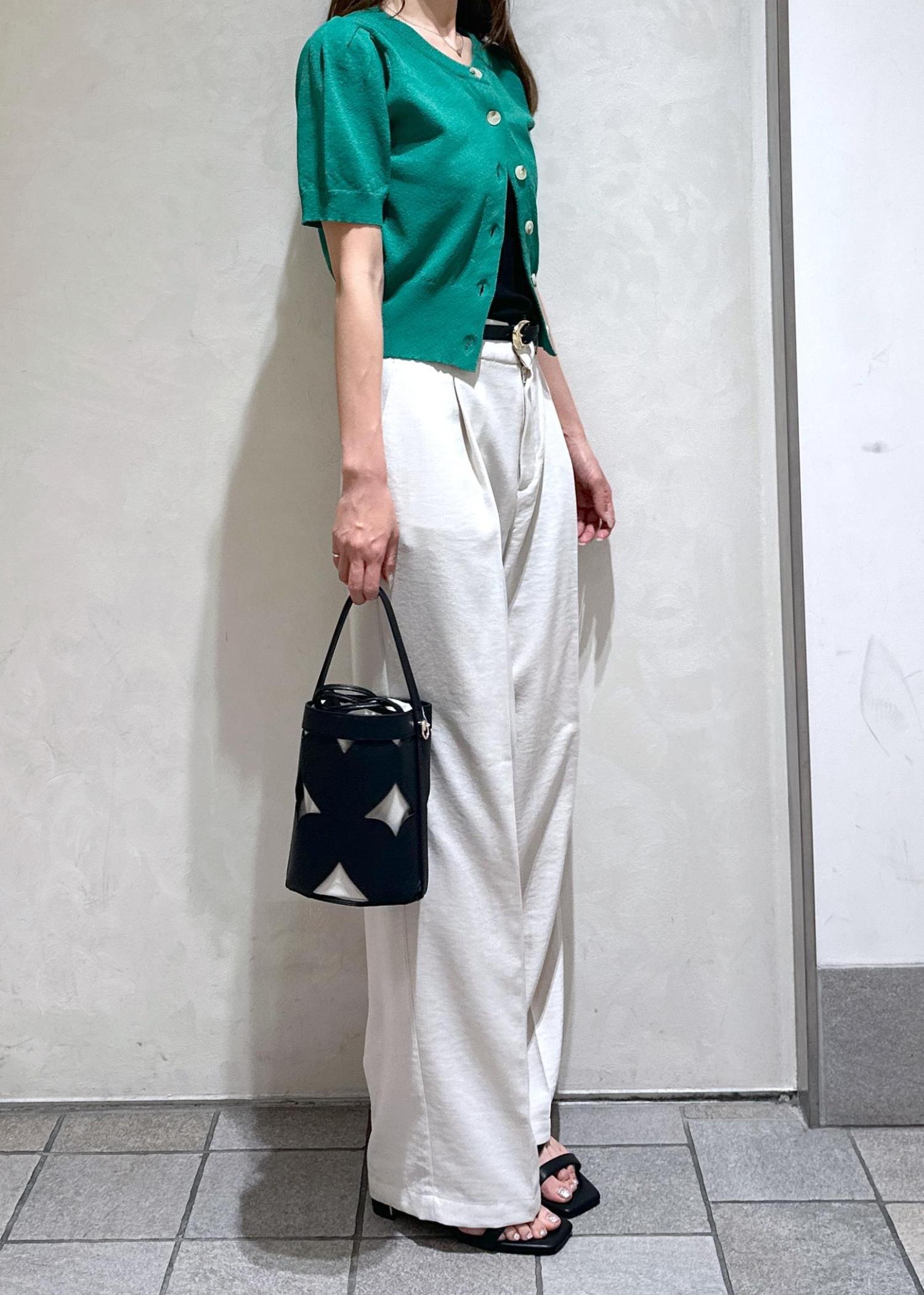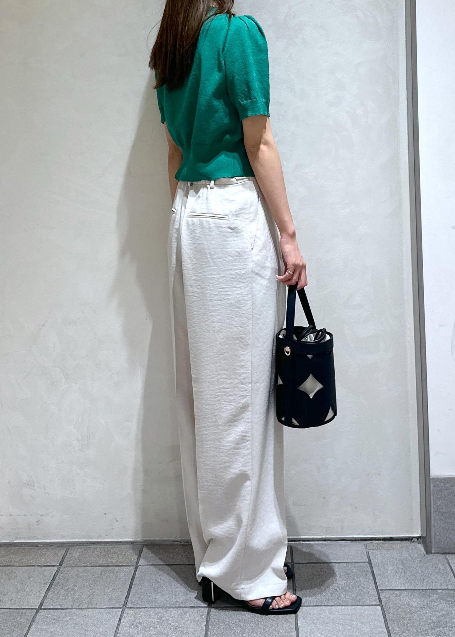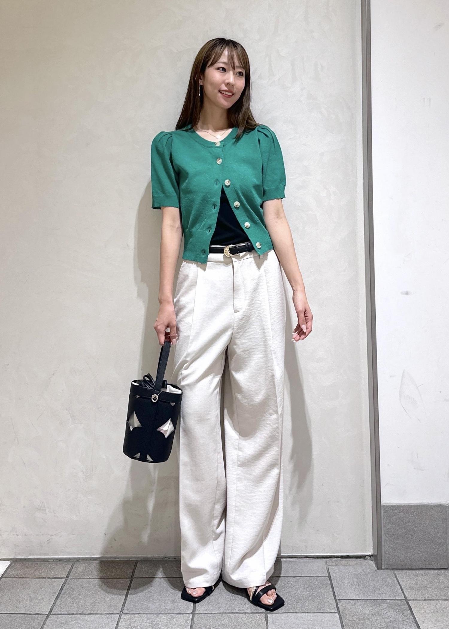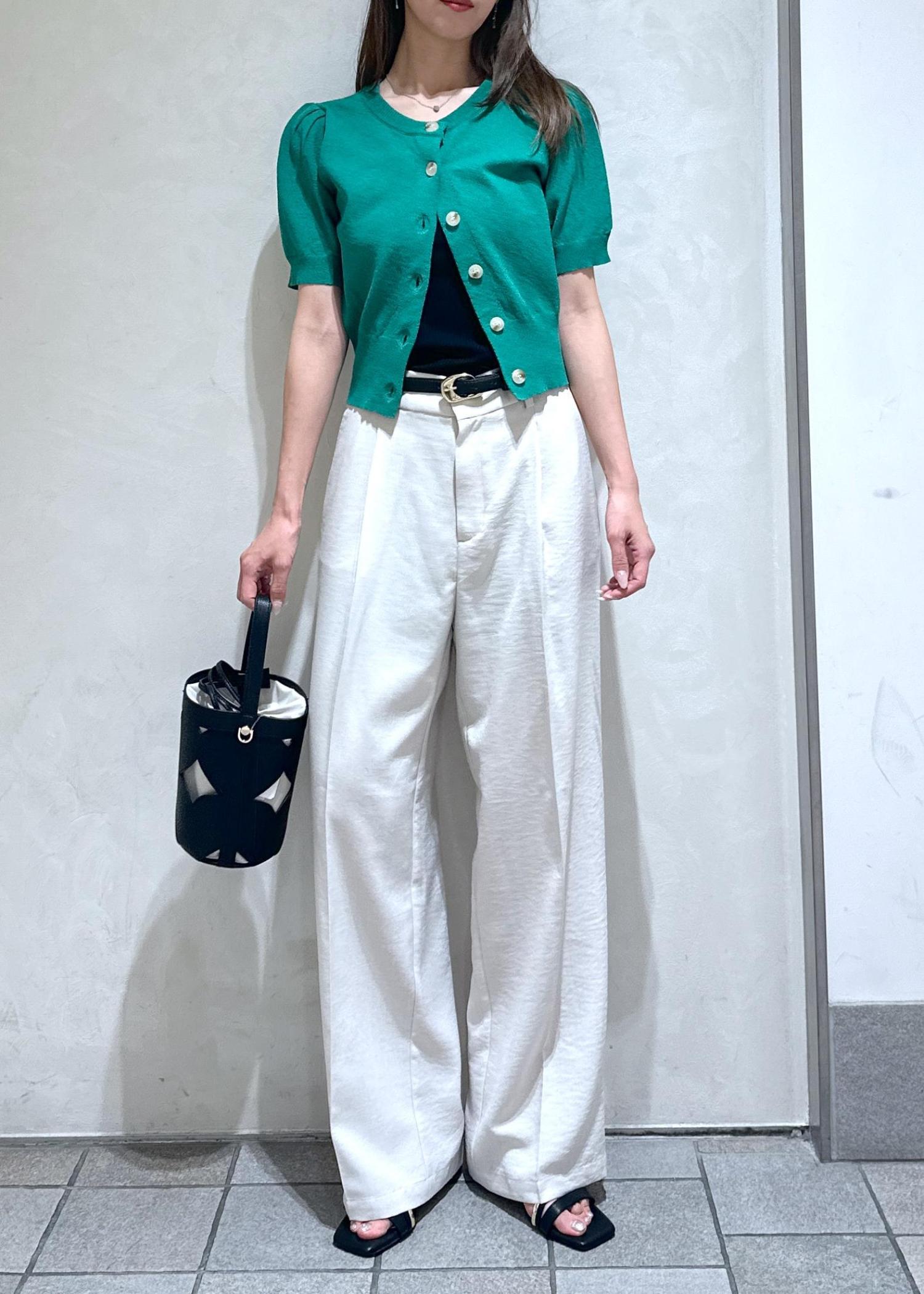 パンツを合わせて大人キレイめですが、パフスリーブが女性らしくしてくれます♡!