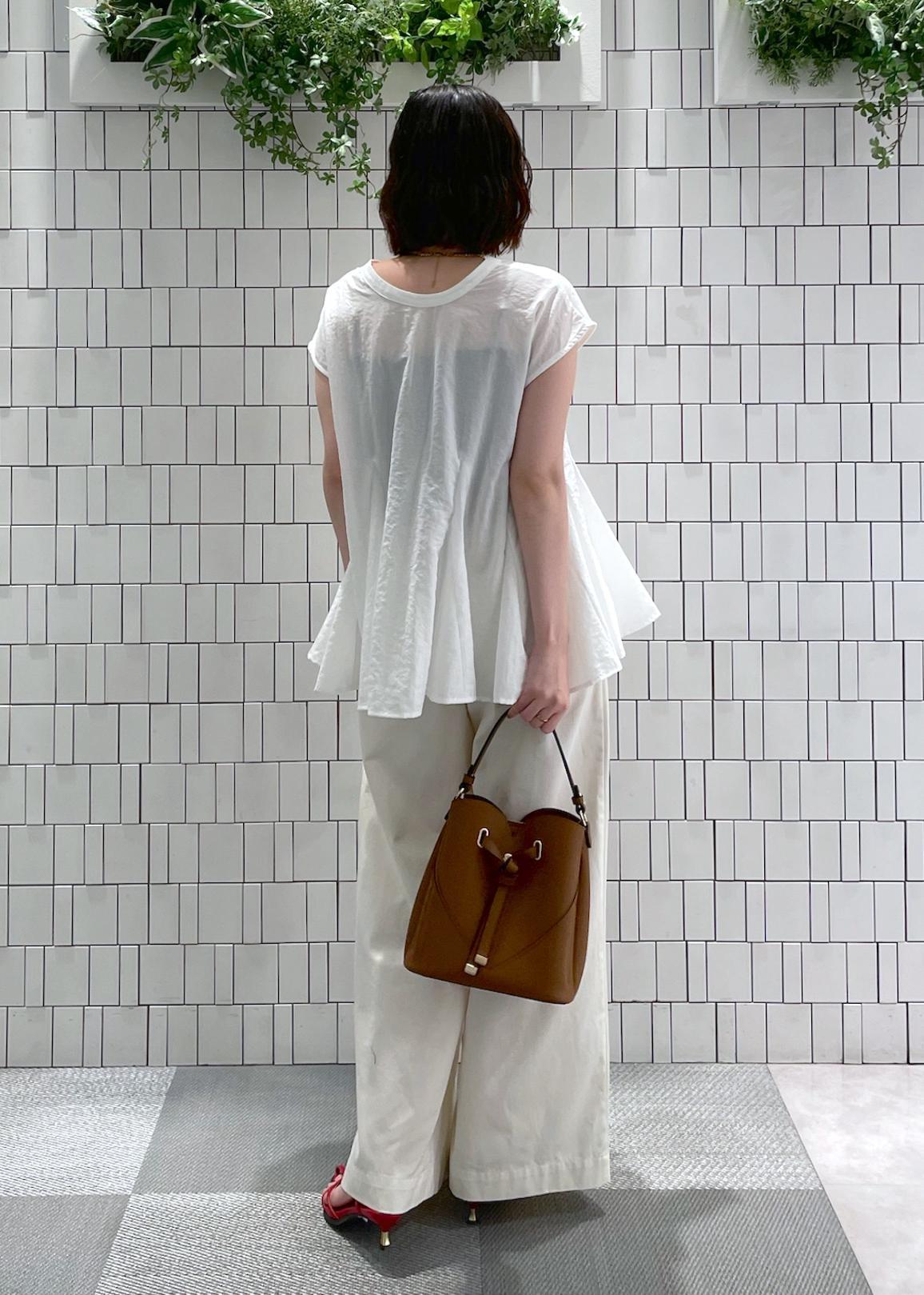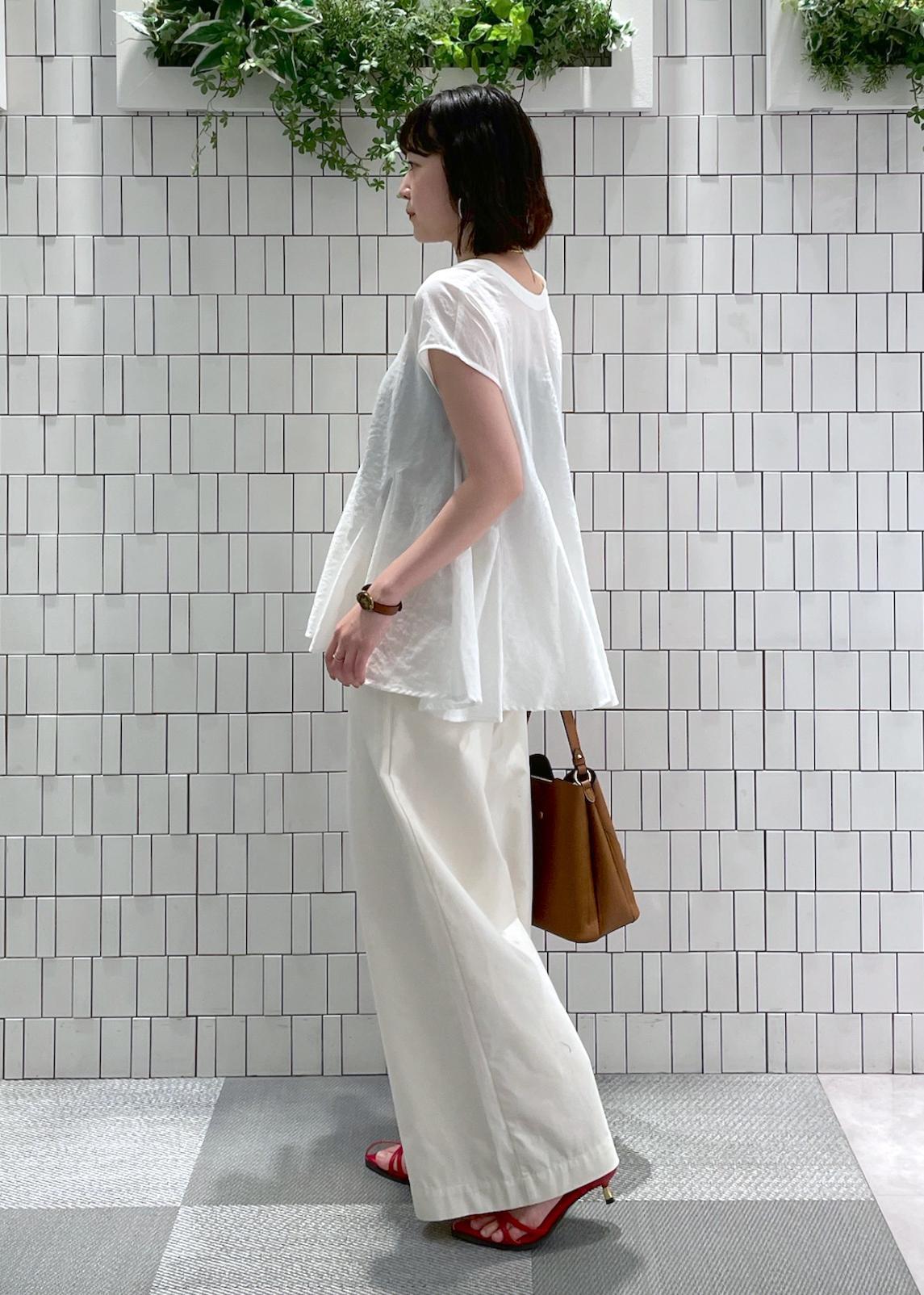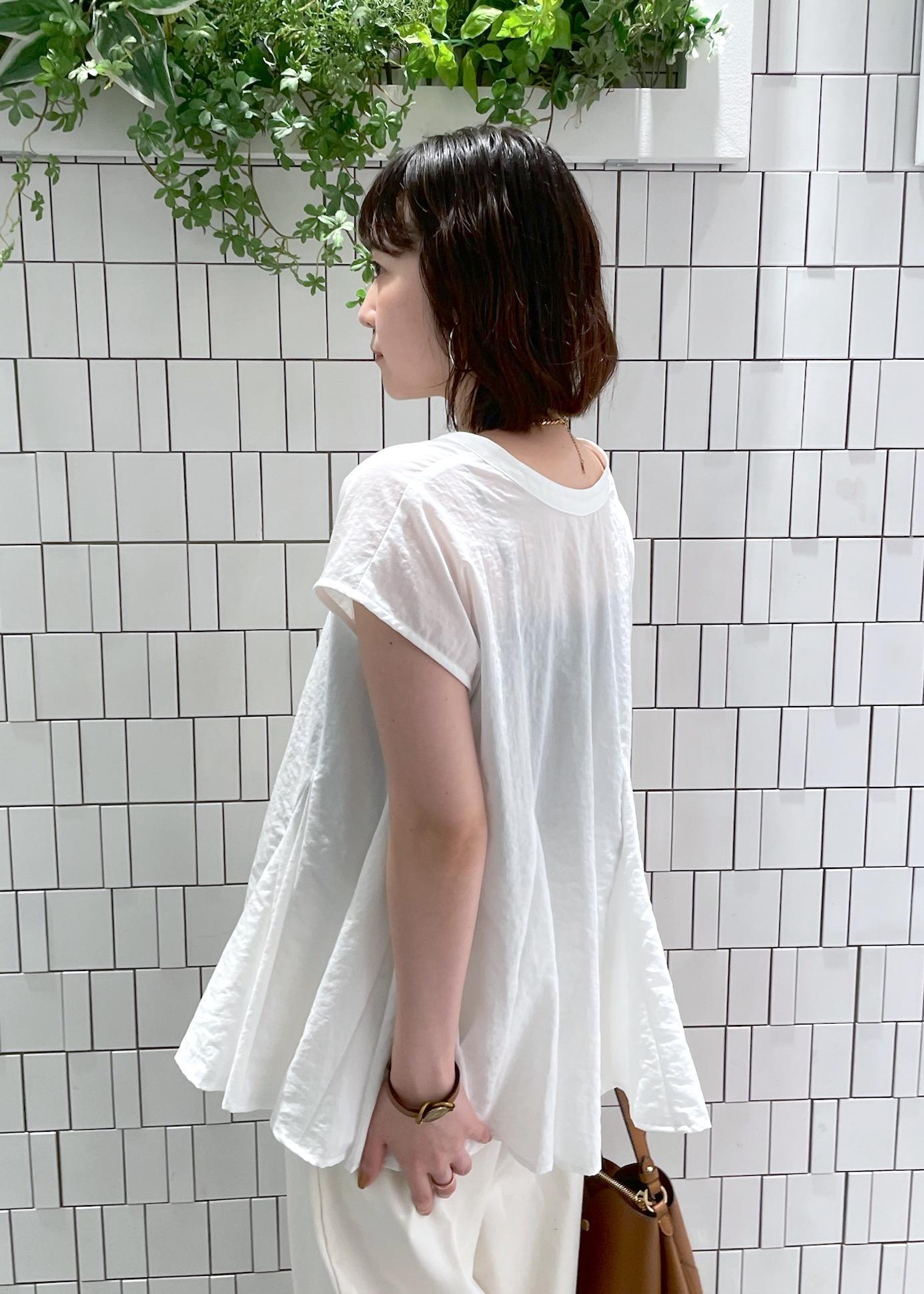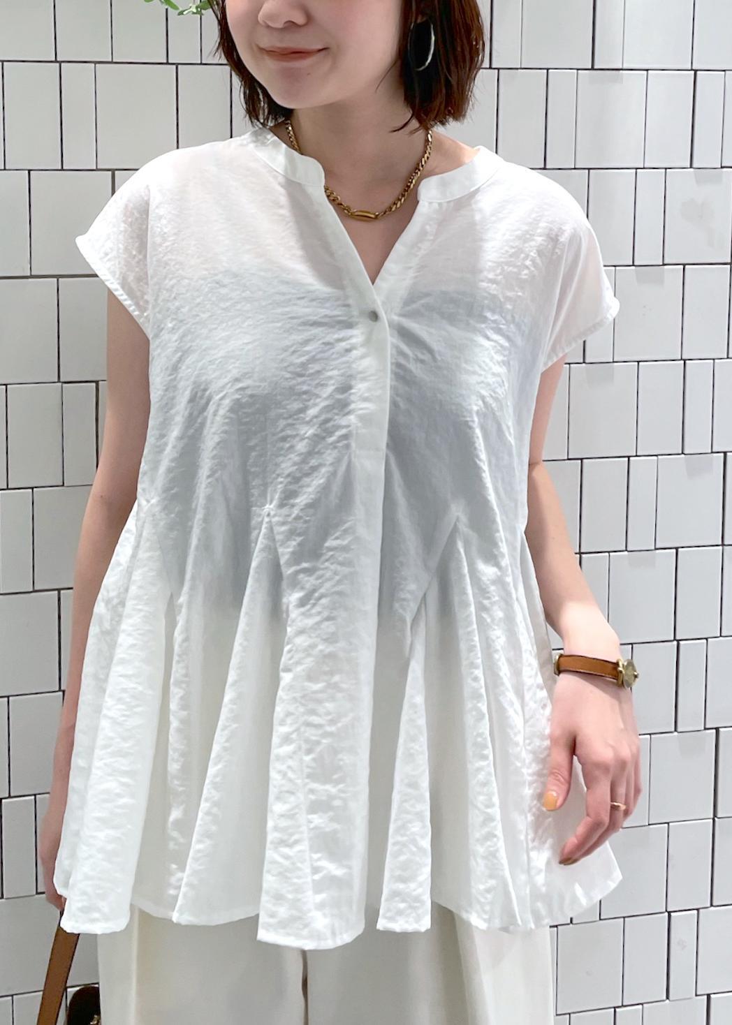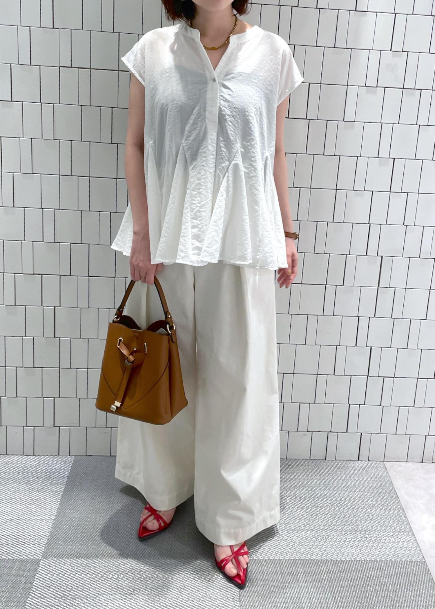 ブラウスは立体感なフレアシルエット、