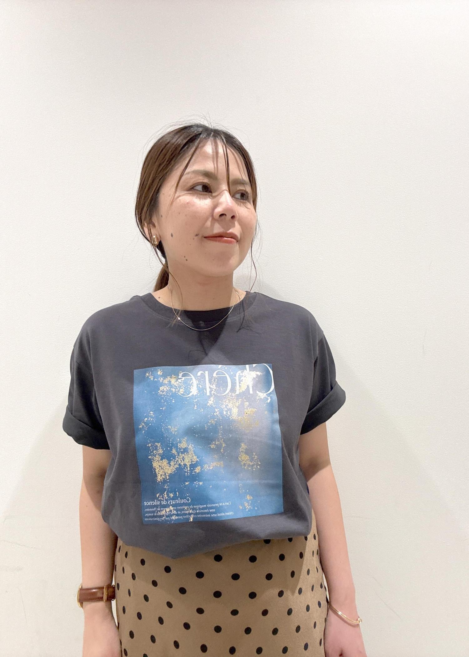 グラフィックアート✖️箔プリントの大人可愛いTシャツを主役にコーディネート⭐︎