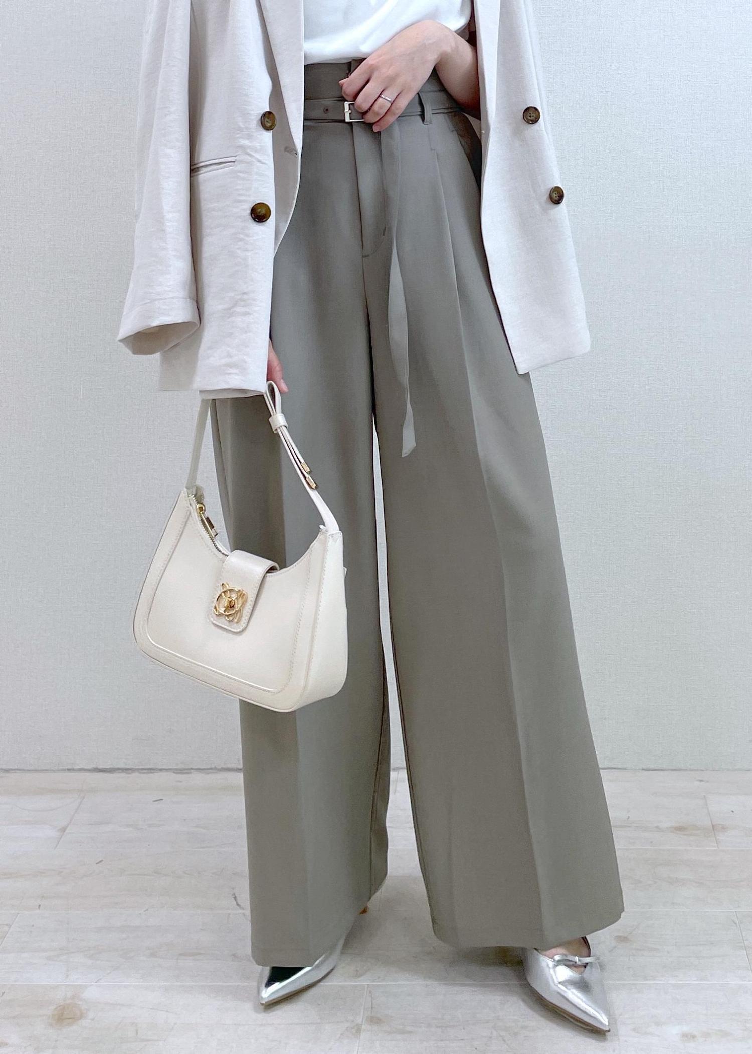 【新色追加】【防シワ/接触冷感】ベルトディテールタックワイドスラックスパンツ