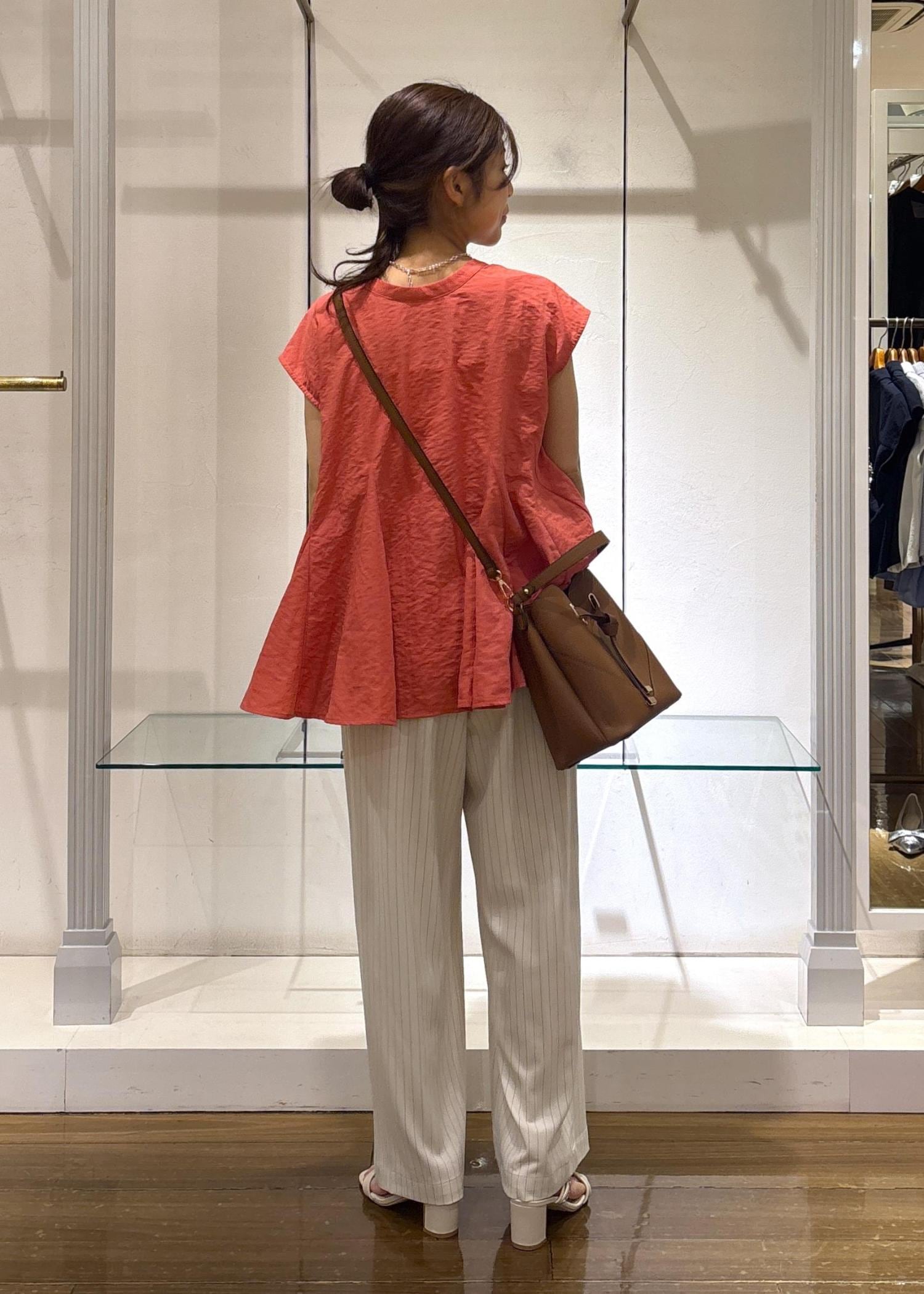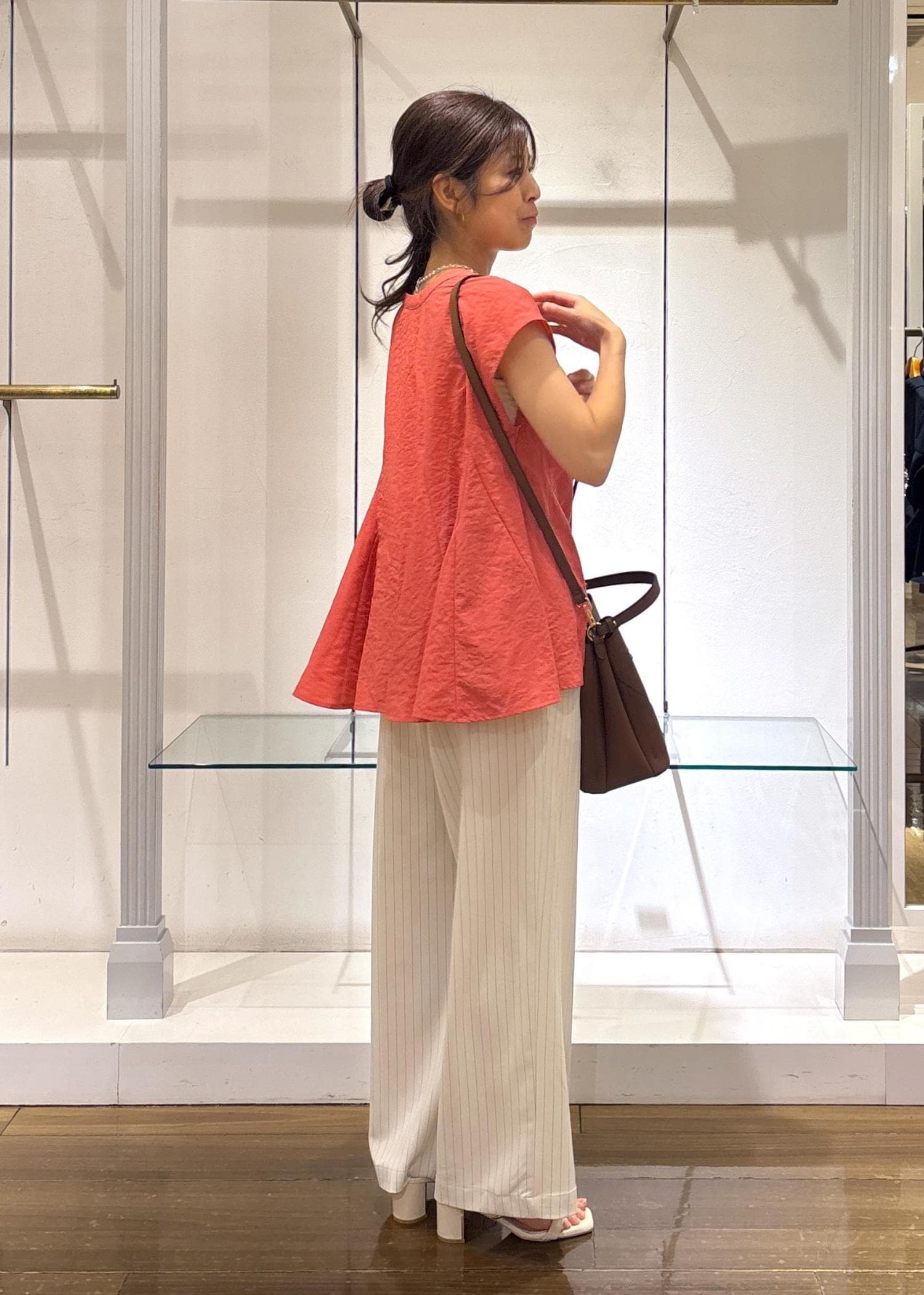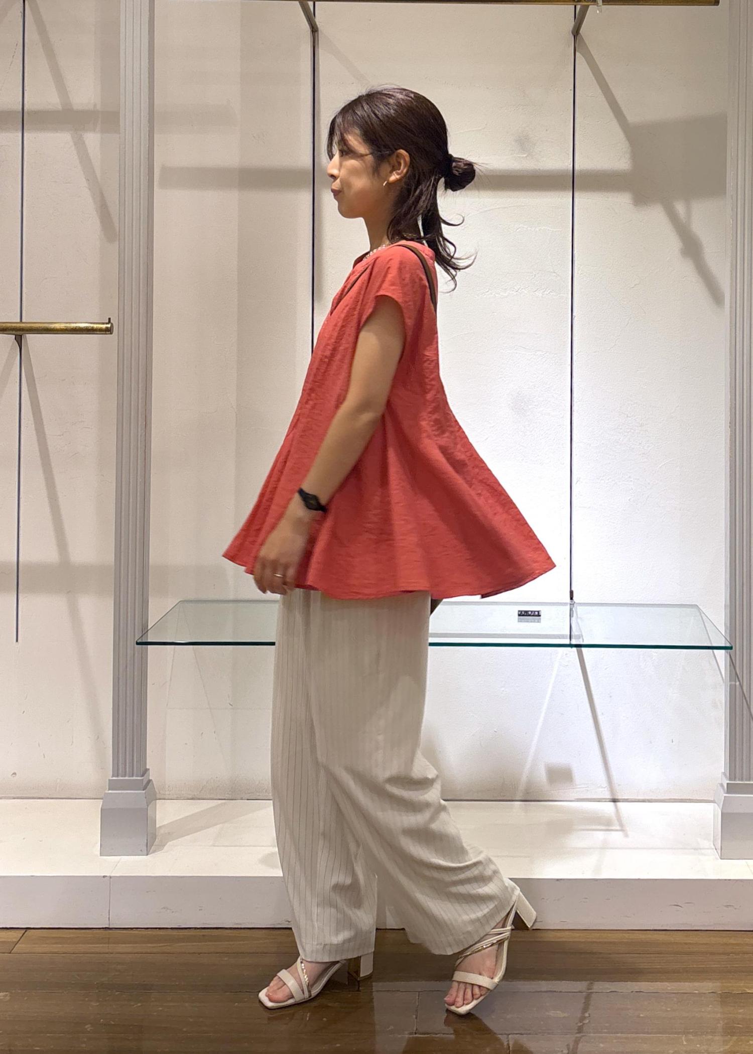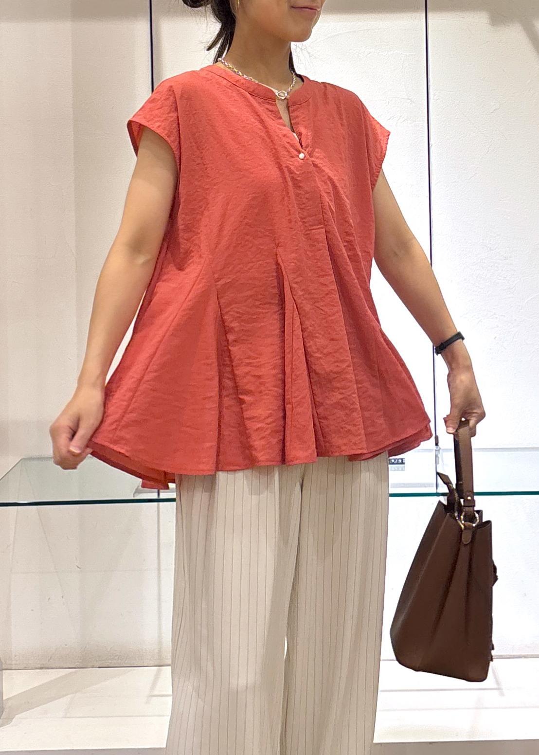 アウトレットVIS【防シワ/洗える】スキッパーフレアブラウスレッド系 / F¥3,293レビュー156cm/F着用。とにかく軽い素材で涼しさ◎着丈はほぼお尻が隠れる長さで体型カバーもばっちり‼︎フレアなデザインは動きも出て1枚で着映えします♪Vネックですが開き過ぎずスタンドカラーできちんと見えも。Tシャツ感覚で着られますよ‼︎